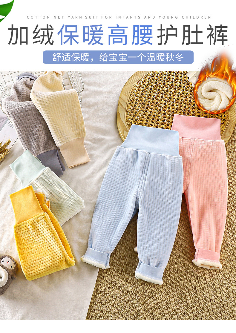 秋冬季儿童加绒保暖裤新款宝宝高腰加厚裤子男女童婴幼儿打底裤