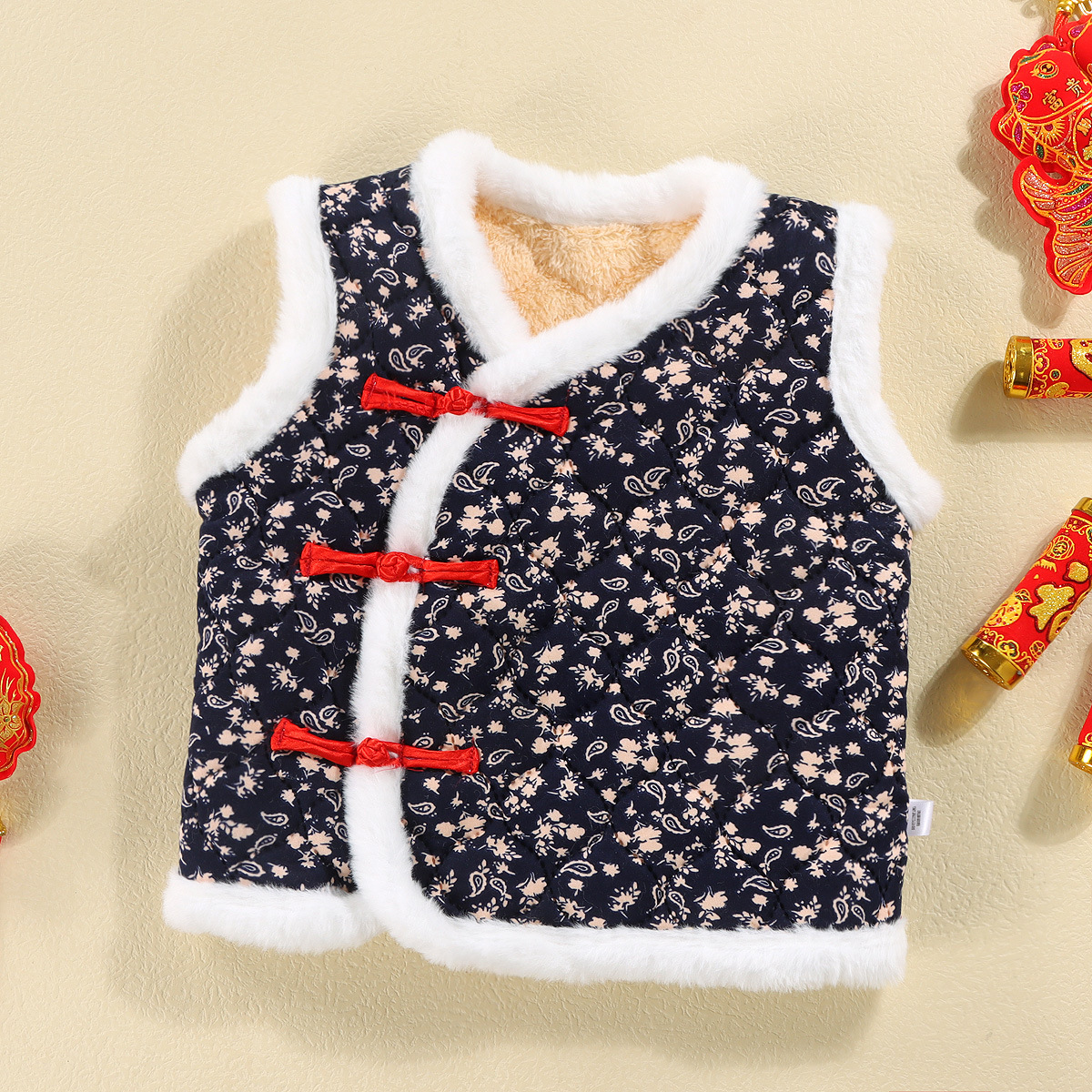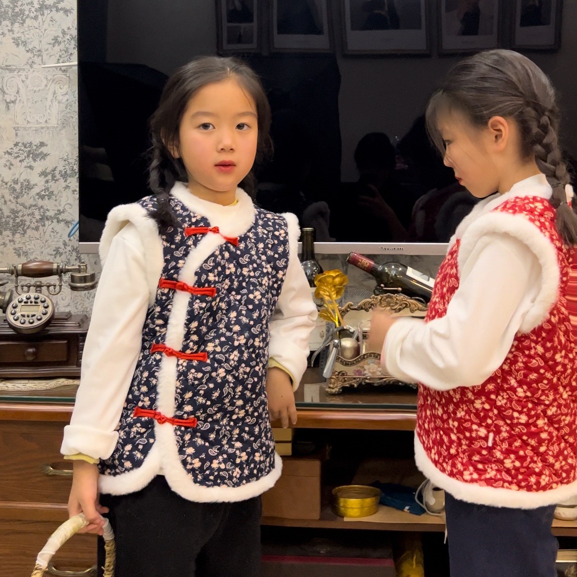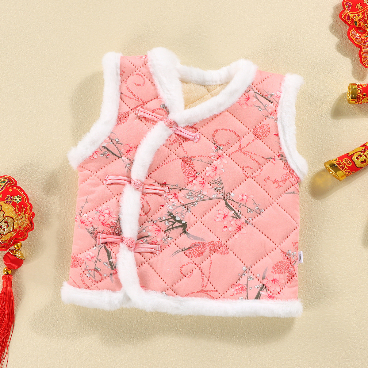 新款夹棉国风马甲2024冬季拜年服女童宝宝民族风加绒加厚网红背心