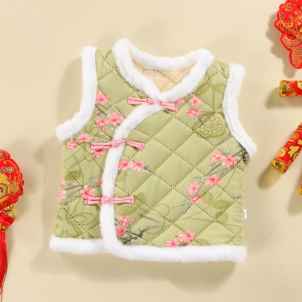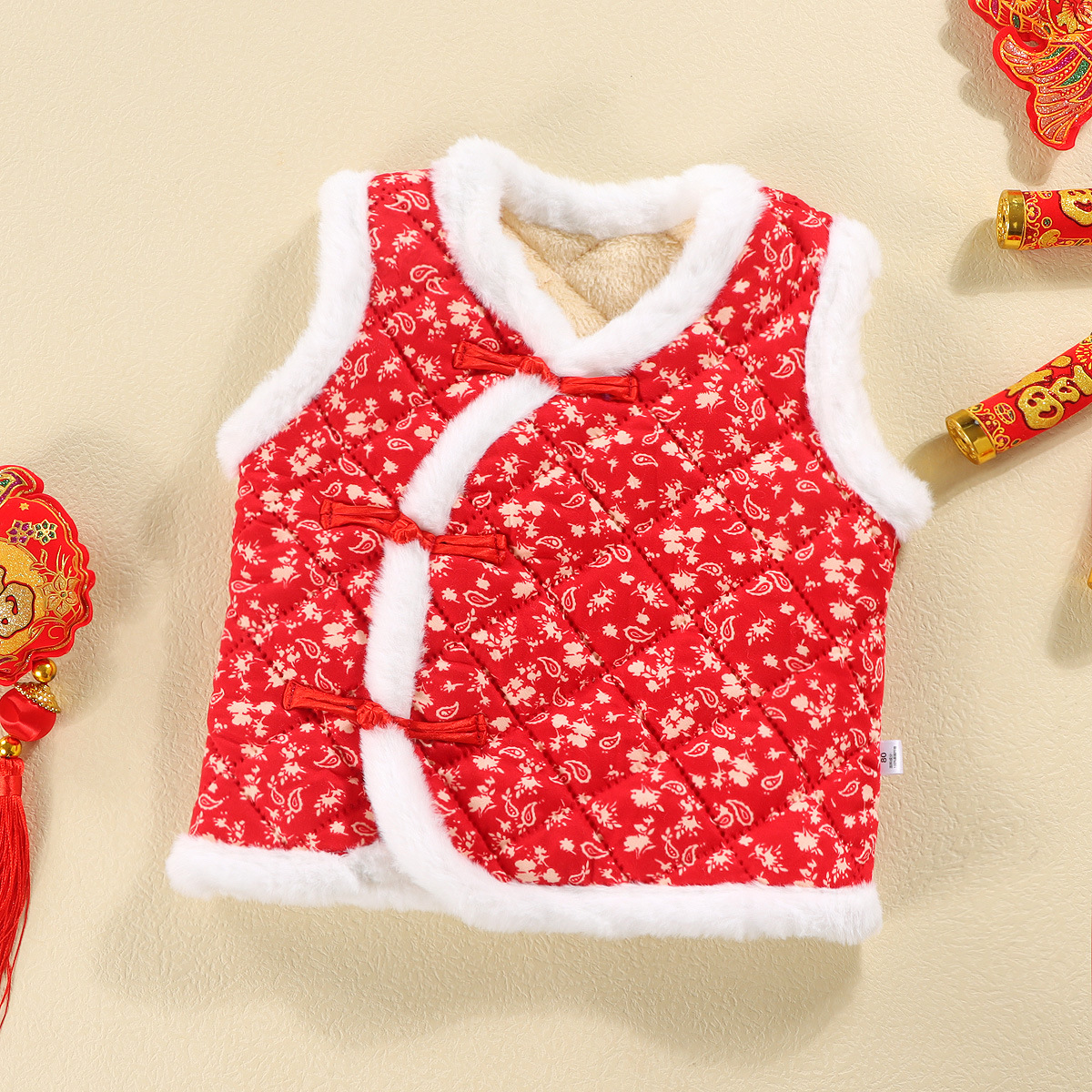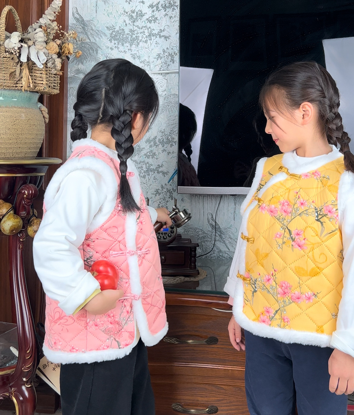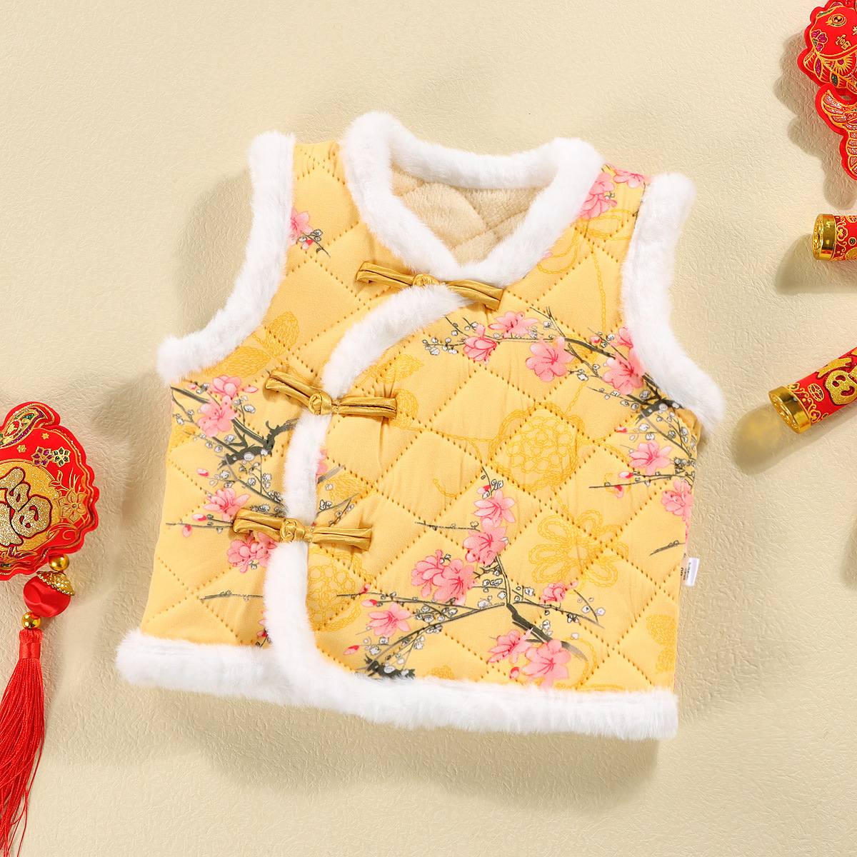 新款夹棉国风马甲2024冬季拜年服女童宝宝民族风加绒加厚网红背心