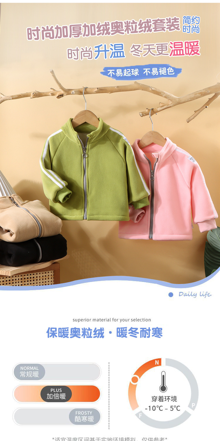 2023新款儿童保暖奥粒绒外套男女童宝宝秋冬立领上衣纯色百搭