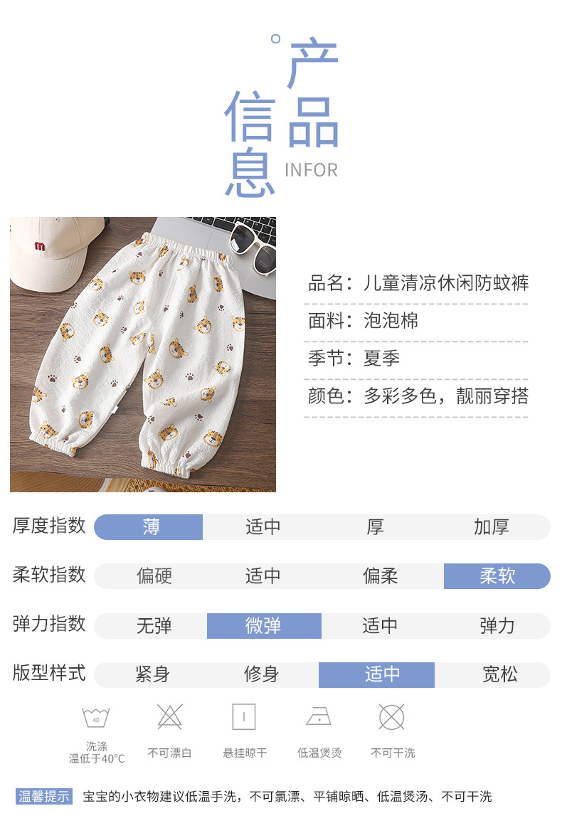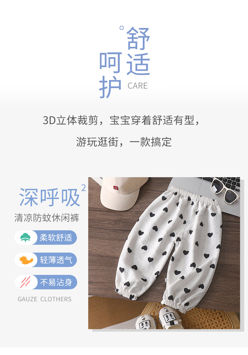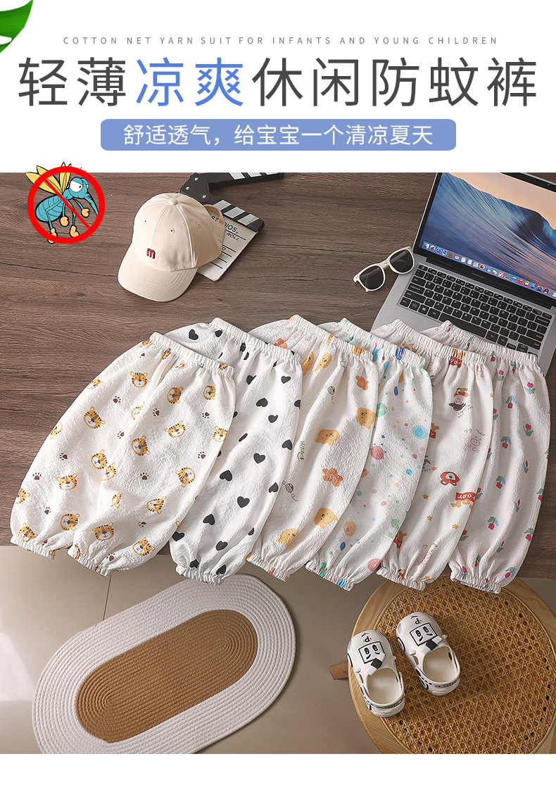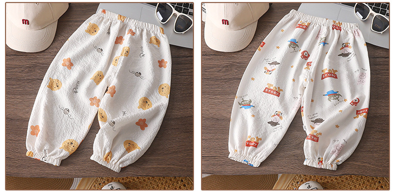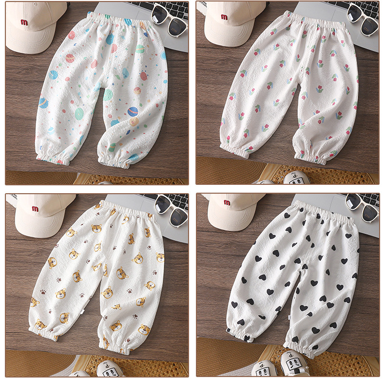 儿童卡通防蚊裤男女童夏季薄款休闲裤宝宝休闲宽松透气灯笼裤