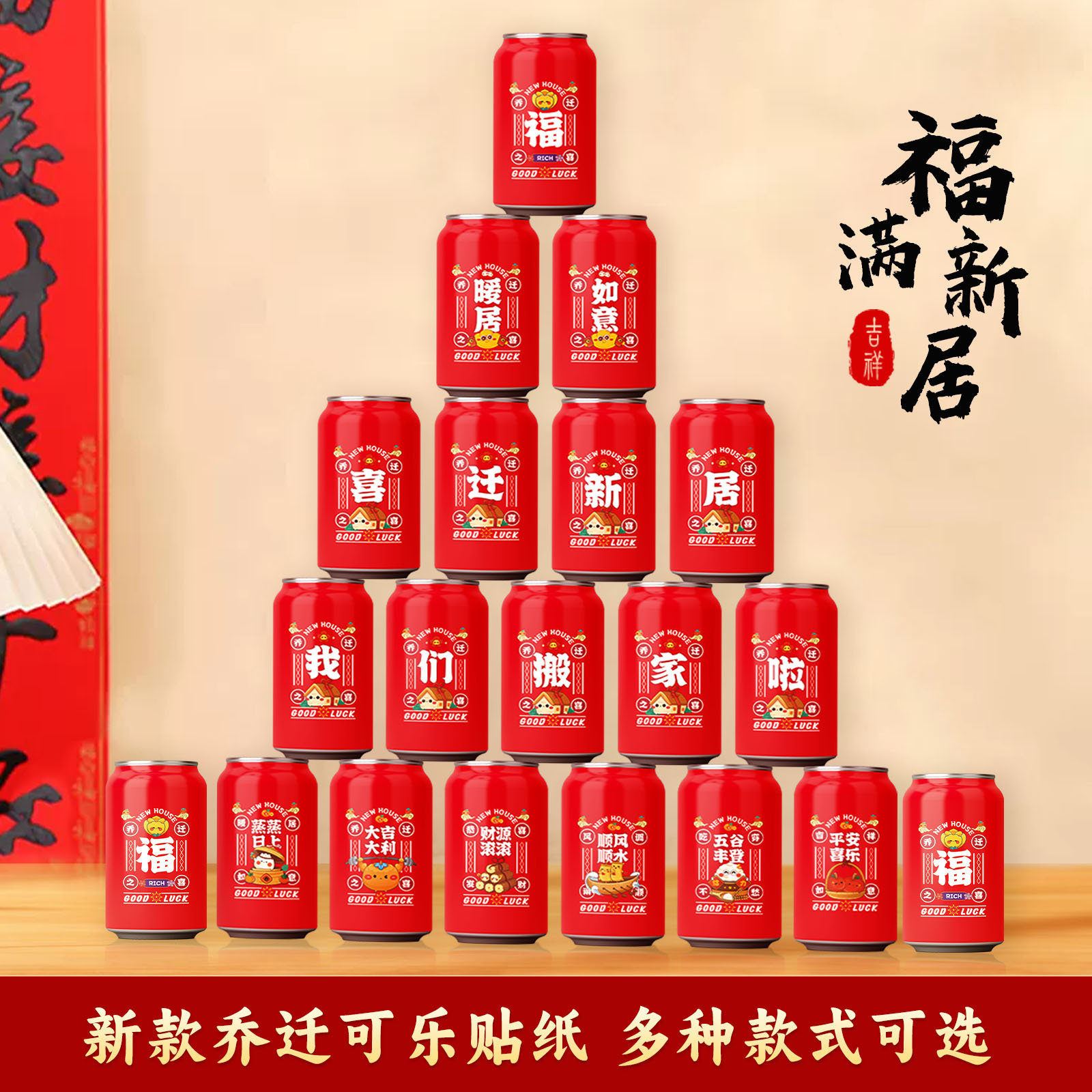 乔迁之喜可乐贴纸装饰不干胶贴纸可口可乐搬家新居入宅仪式品布置