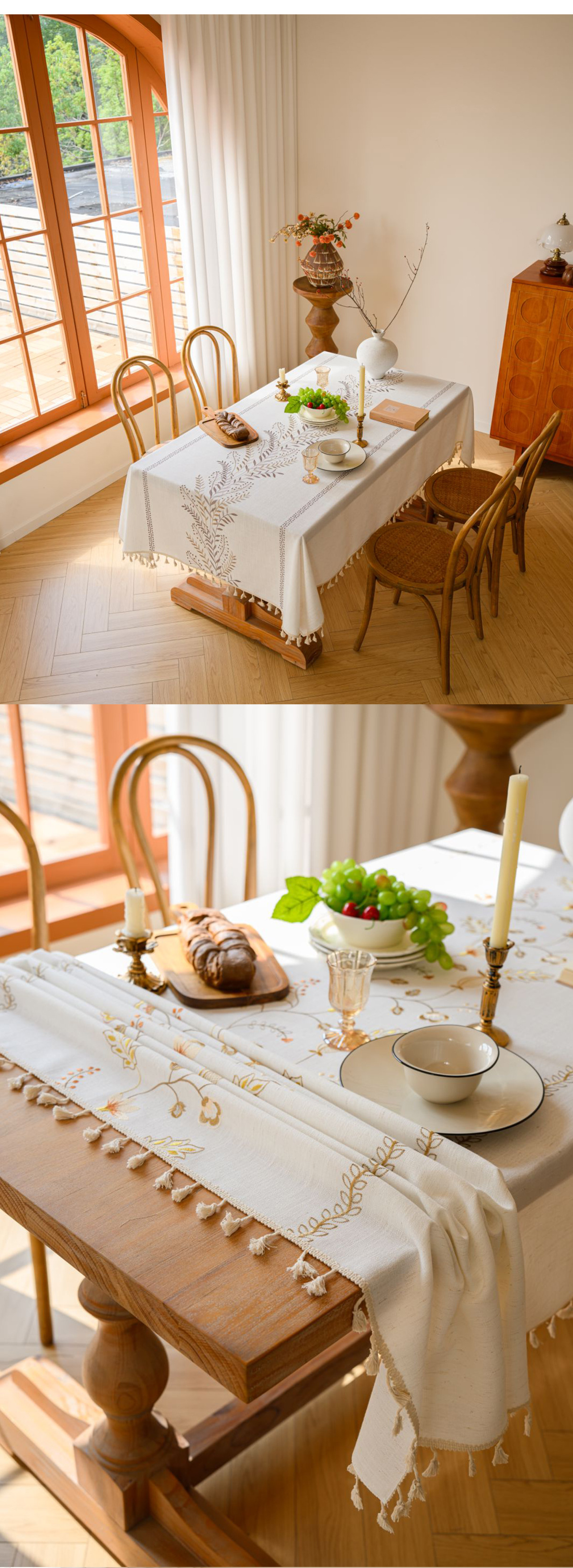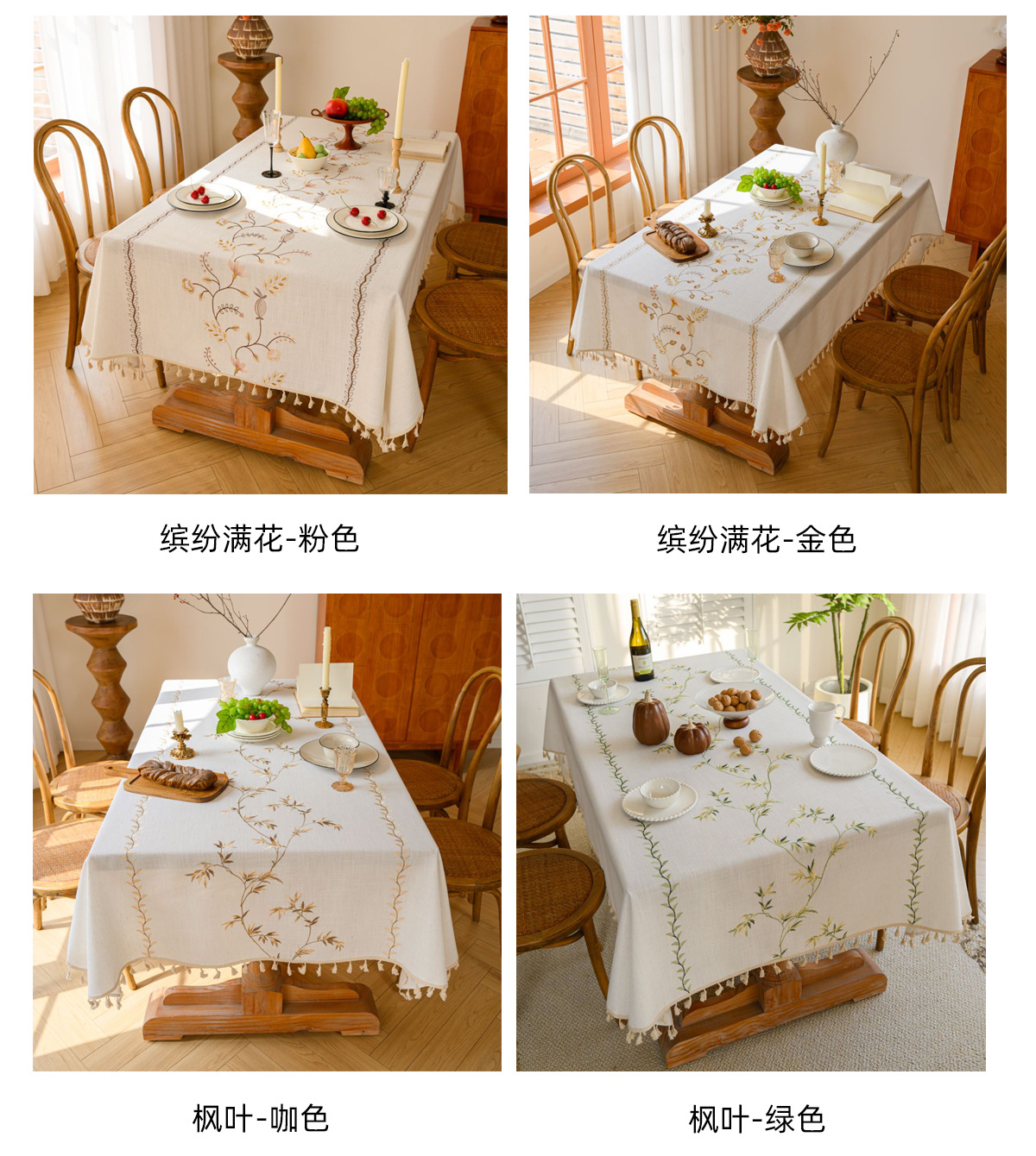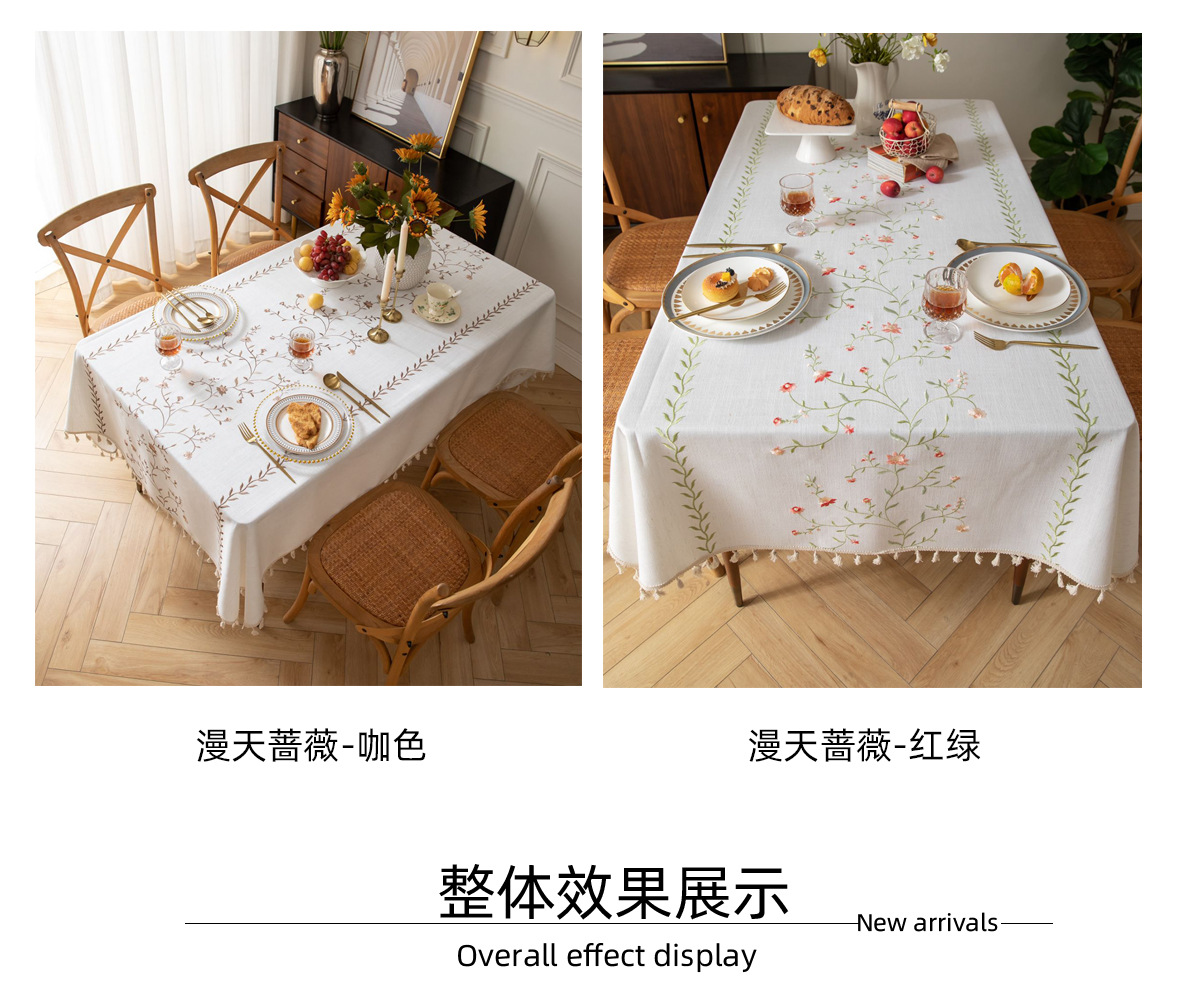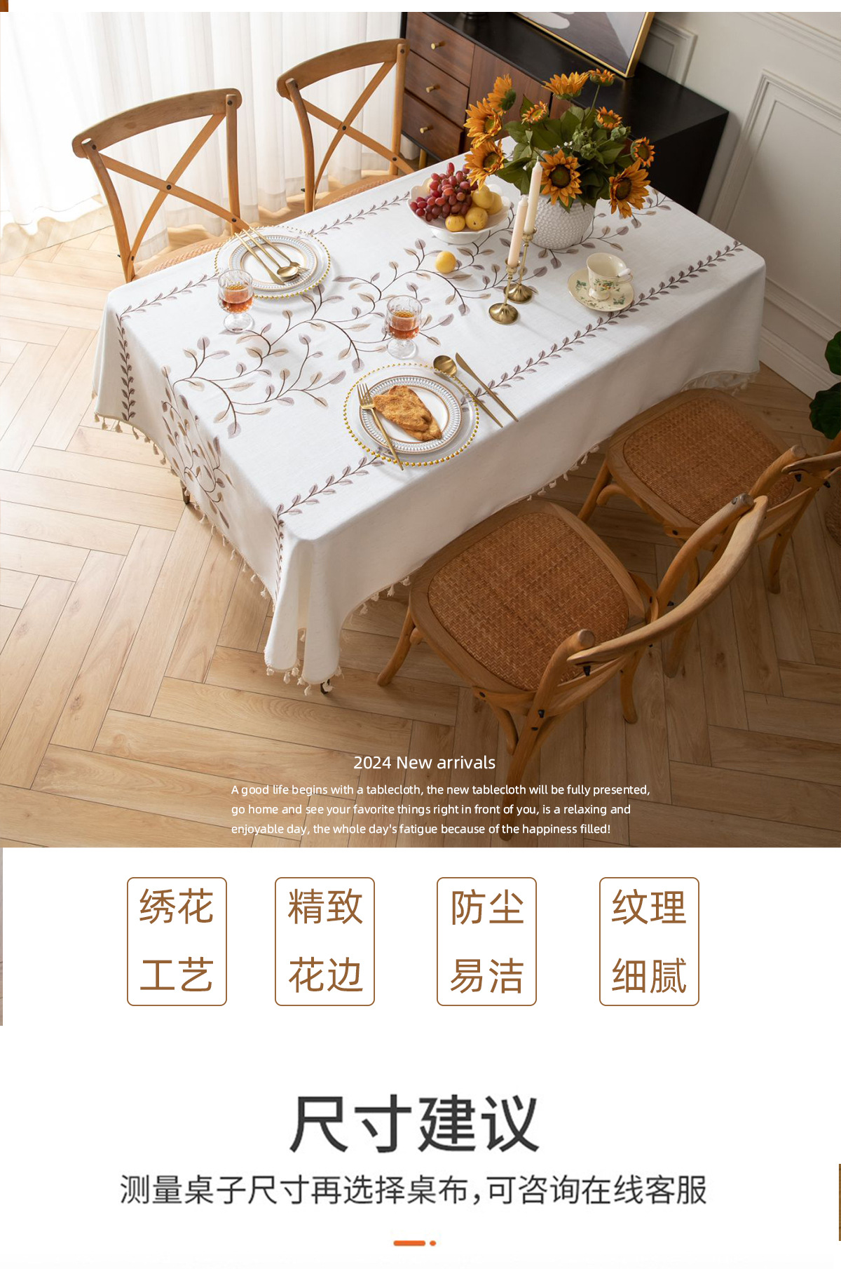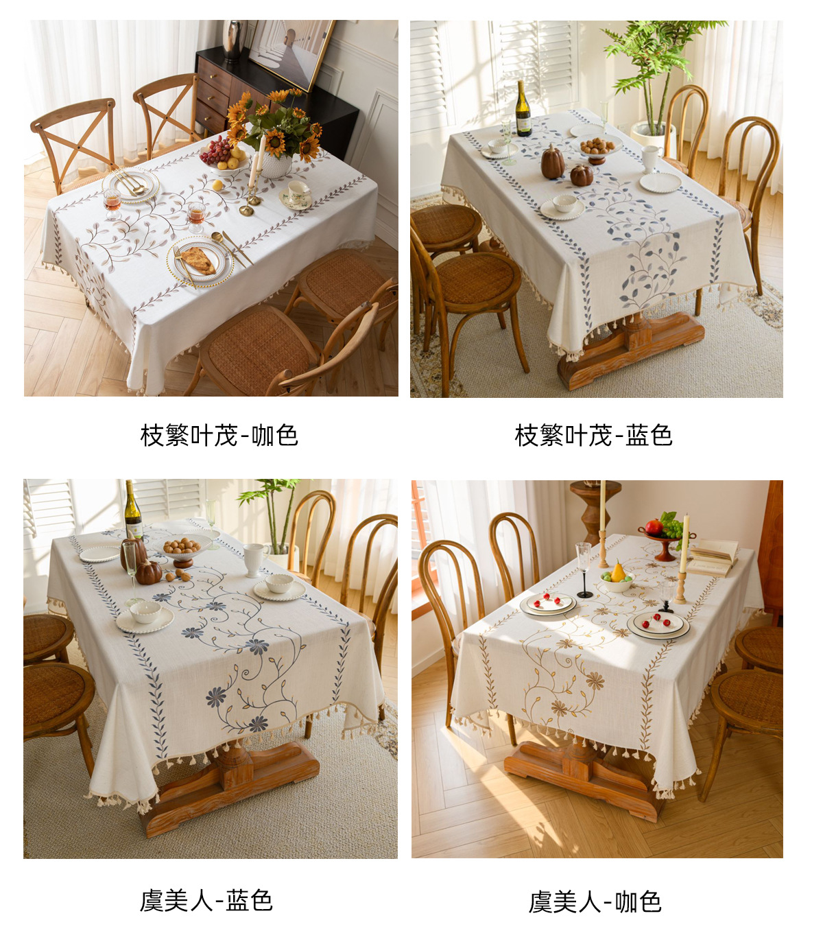 聚家新款跨境亚马逊棉麻绣花餐桌布法式复古美式装饰长方形餐桌布