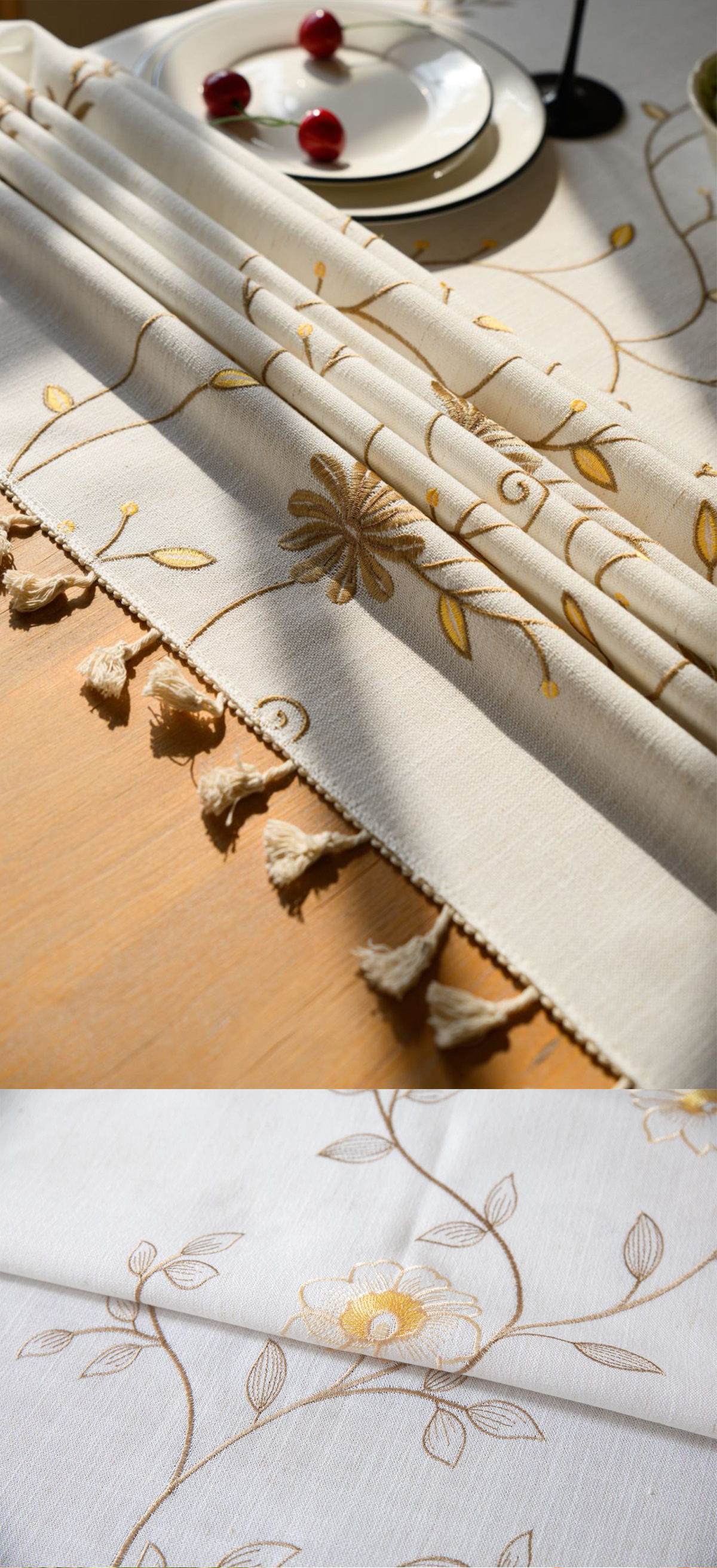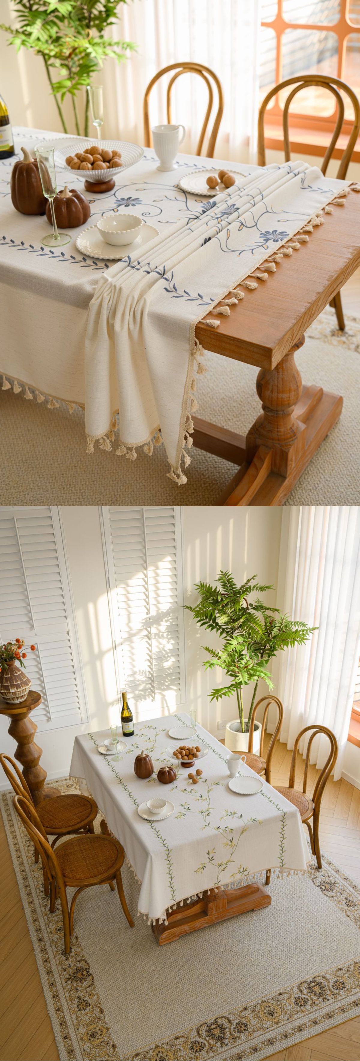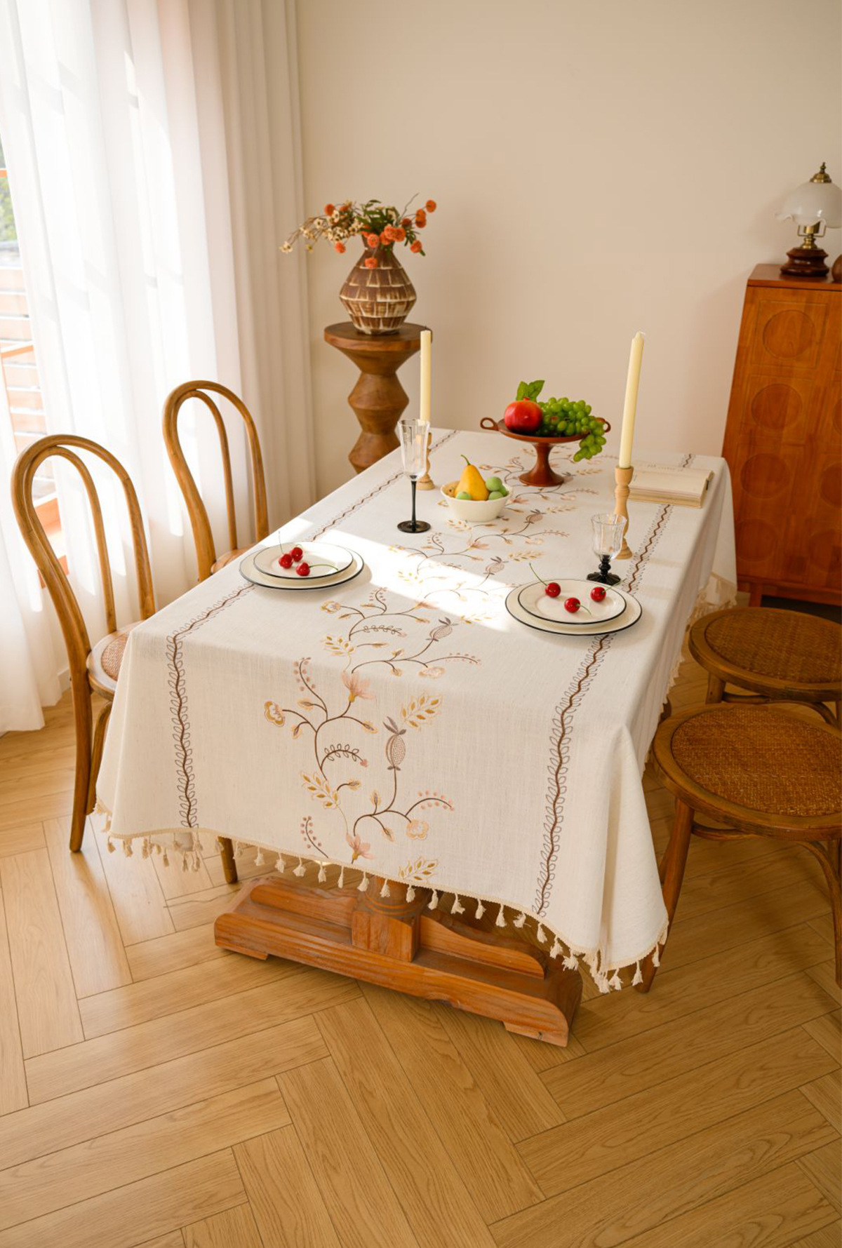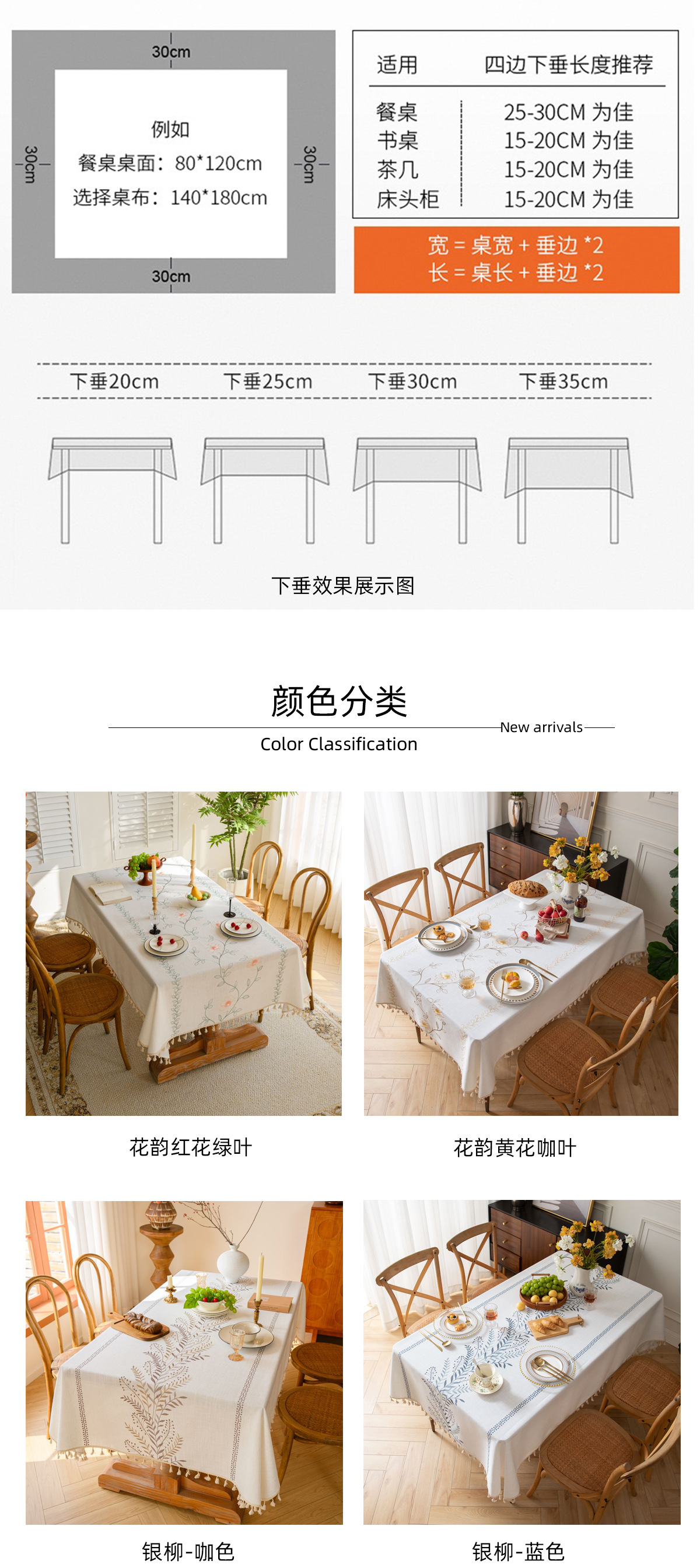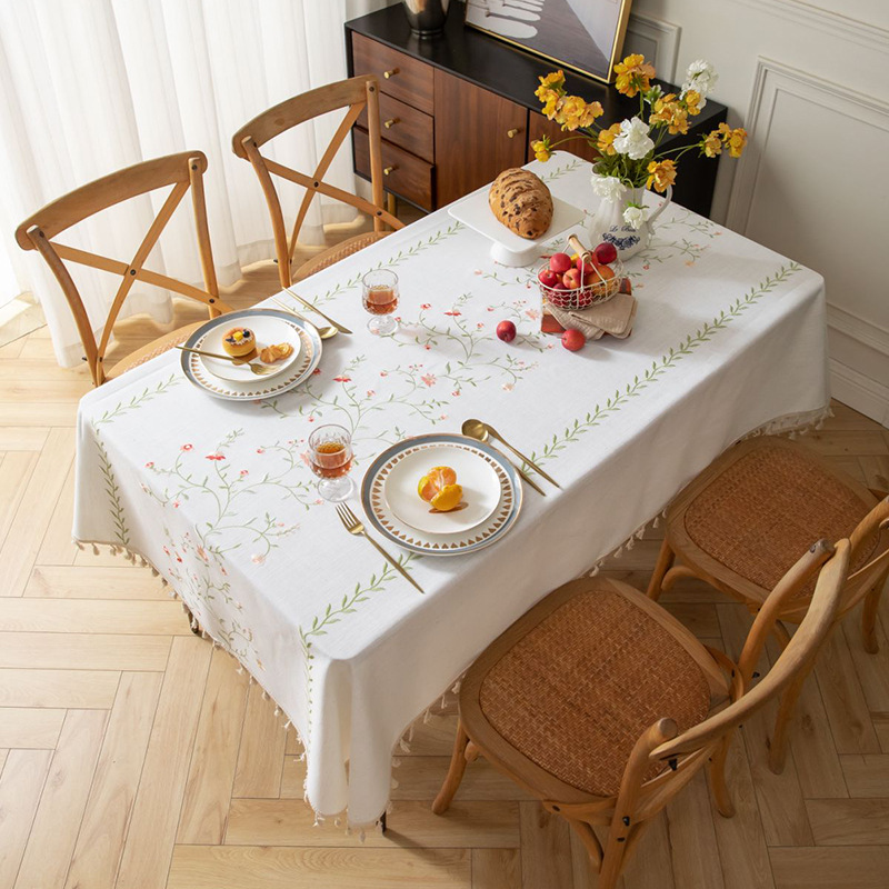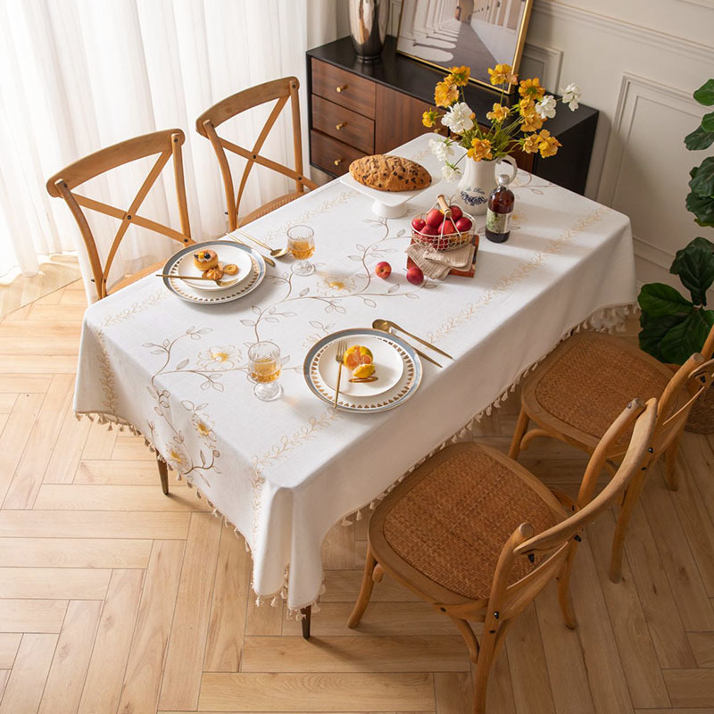 聚家新款跨境亚马逊棉麻绣花餐桌布法式复古美式装饰长方形餐桌布