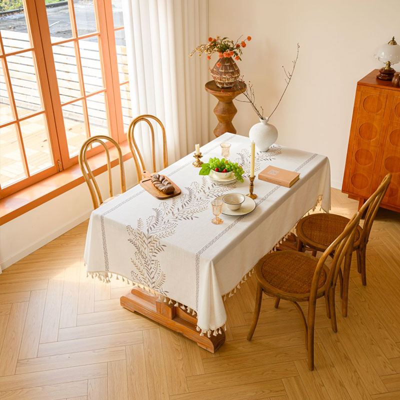 聚家新款立体绣花桌布美式轻奢高级长方形餐桌布复古氛围感书桌布