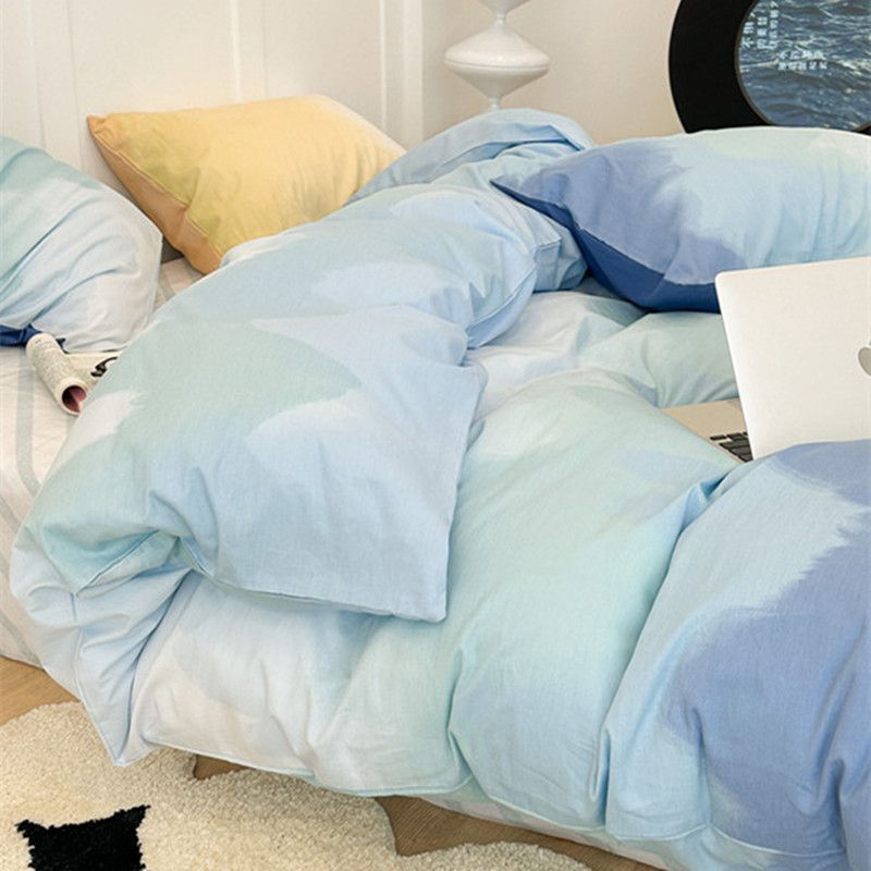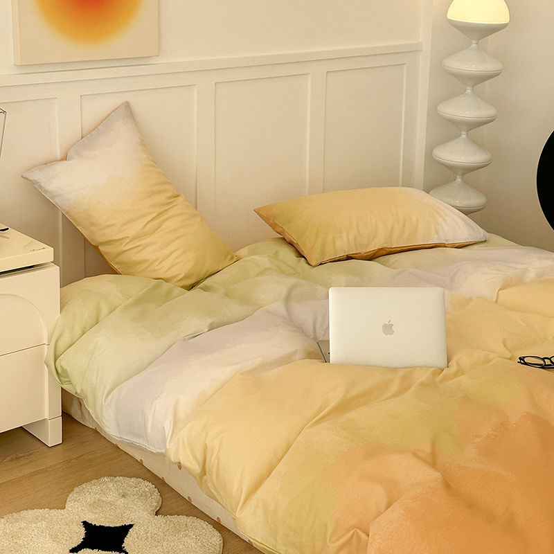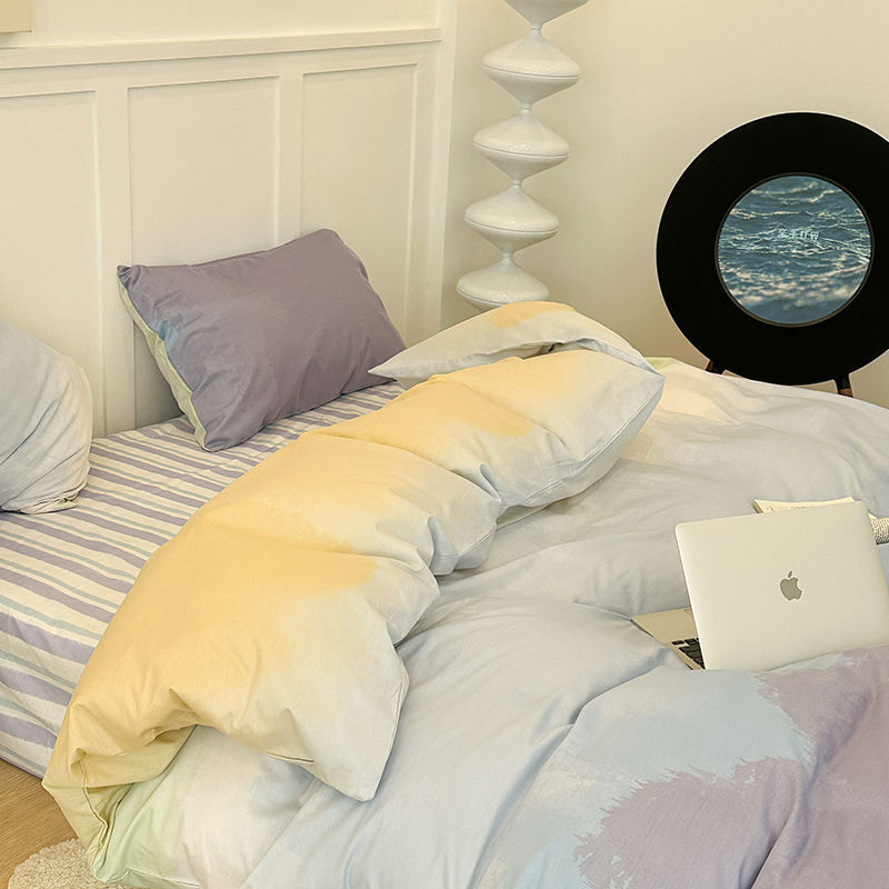温柔莫兰迪渐变色水洗棉床单四件套纯色被套三件套ins博主风被罩