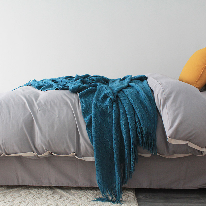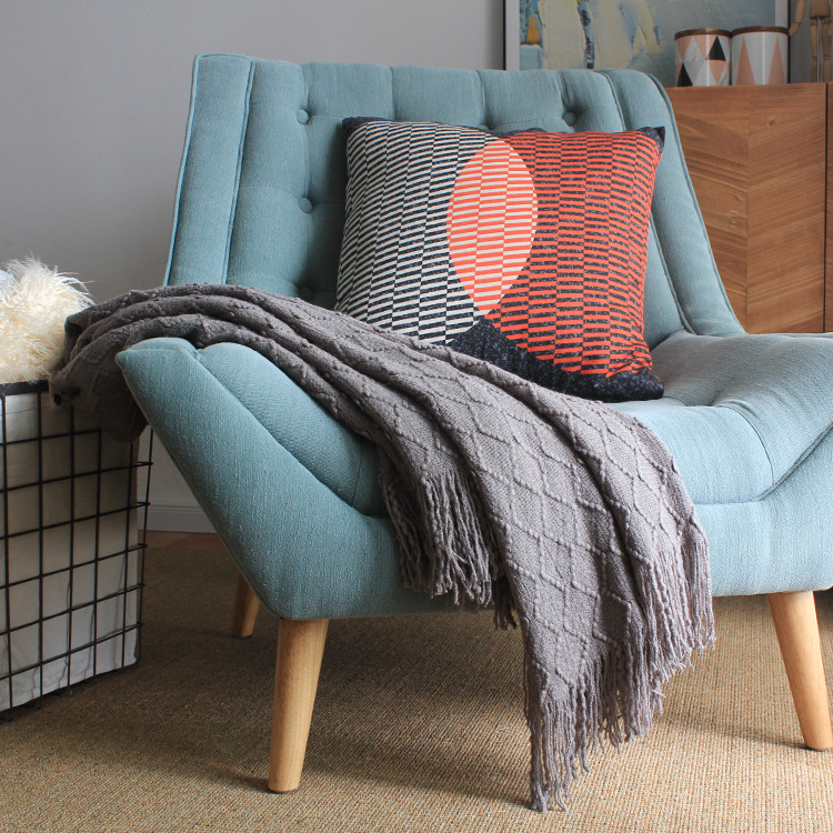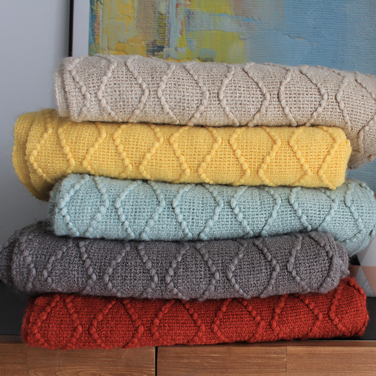 新款针织纯色美式小盖毯北欧风毛毯工厂现货跨境装饰沙发毛毯