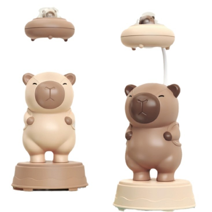 新款呆萌可爱的卡皮巴拉台灯USB充电桌面户外学生学习小台灯支架