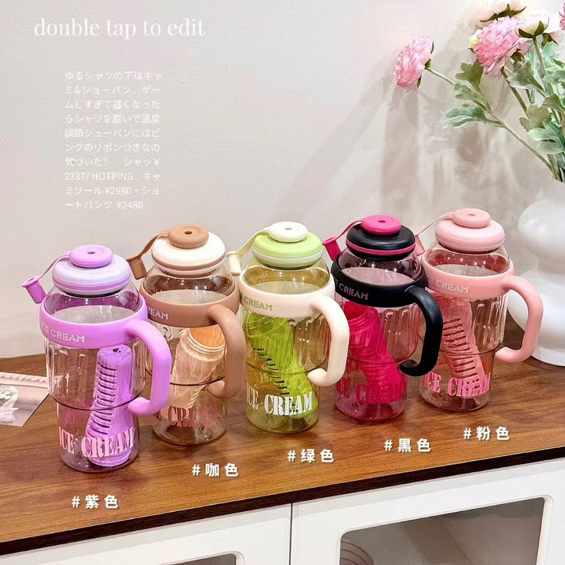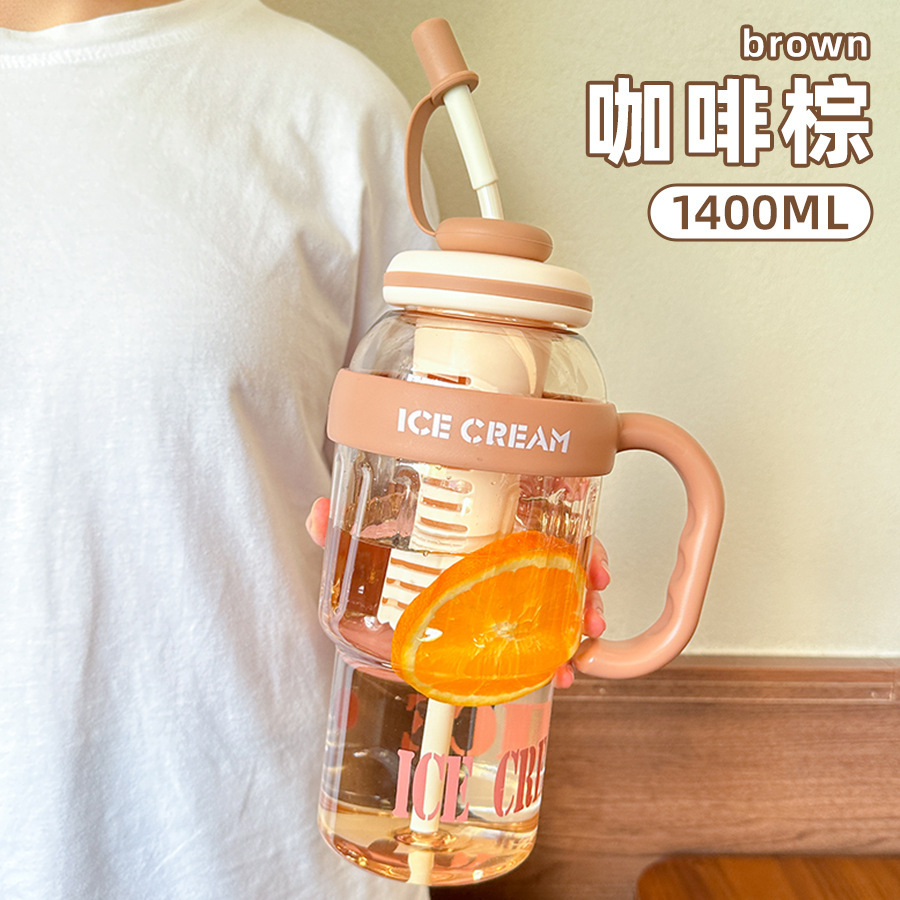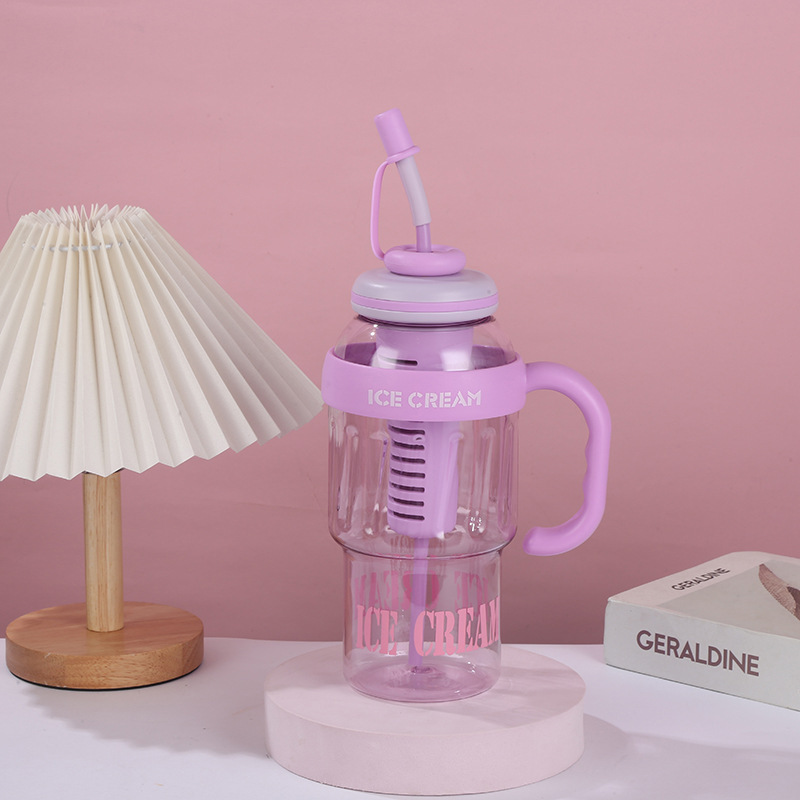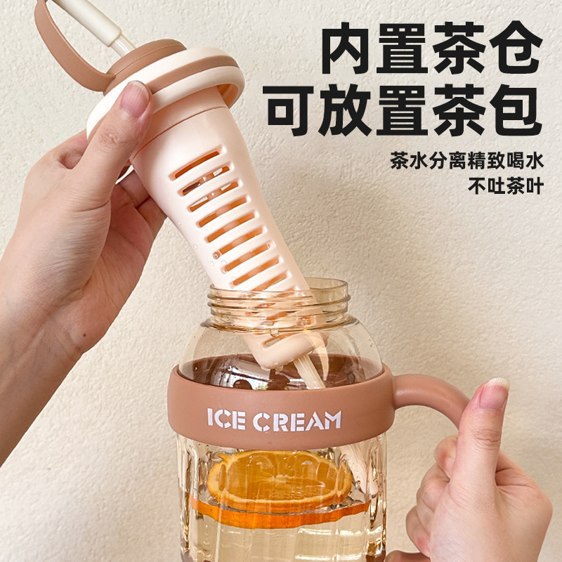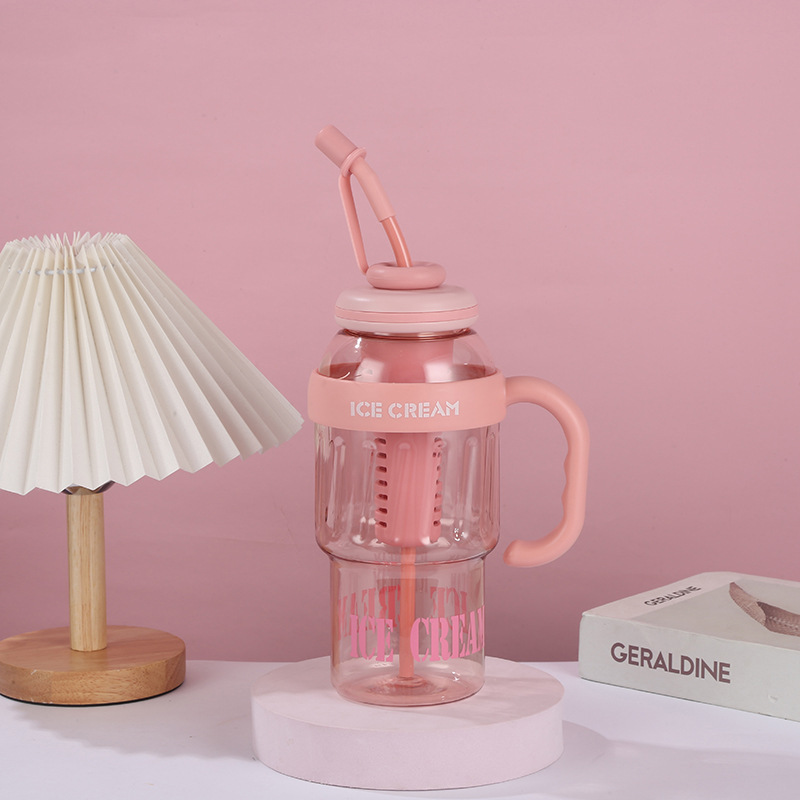 新款夏季大容量冰霸杯高颜值男女塑料杯带吸管茶水分离水杯