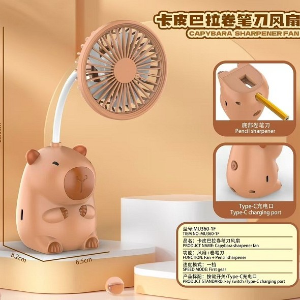 儿童桌面小风扇台灯卡皮巴拉可爱usb充电手持便携儿童学生风扇