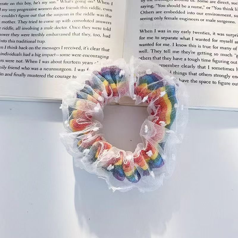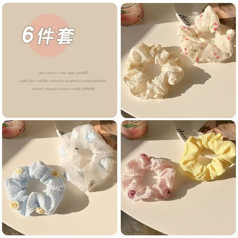 韩系碎花大肠发圈彩虹头绳复古秋冬布艺发绳蕾丝清新发饰新款头饰