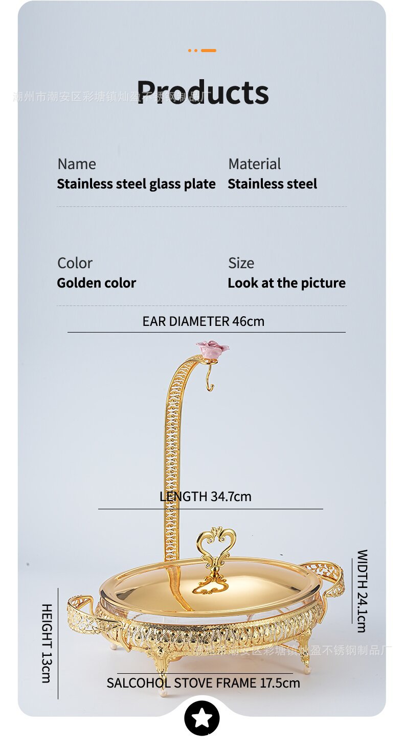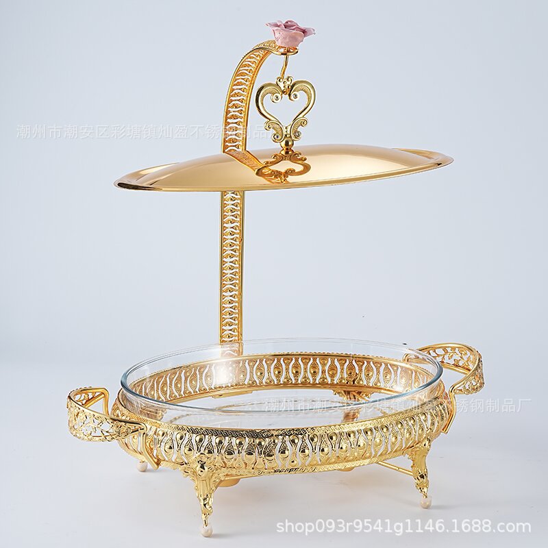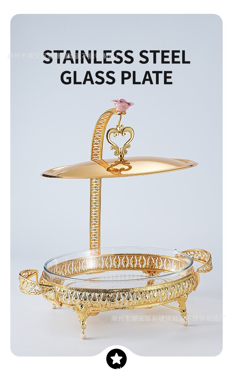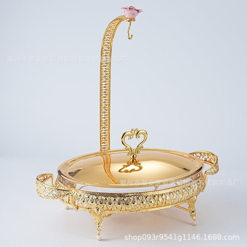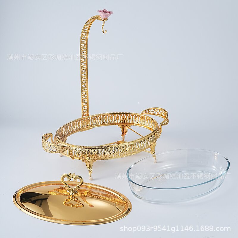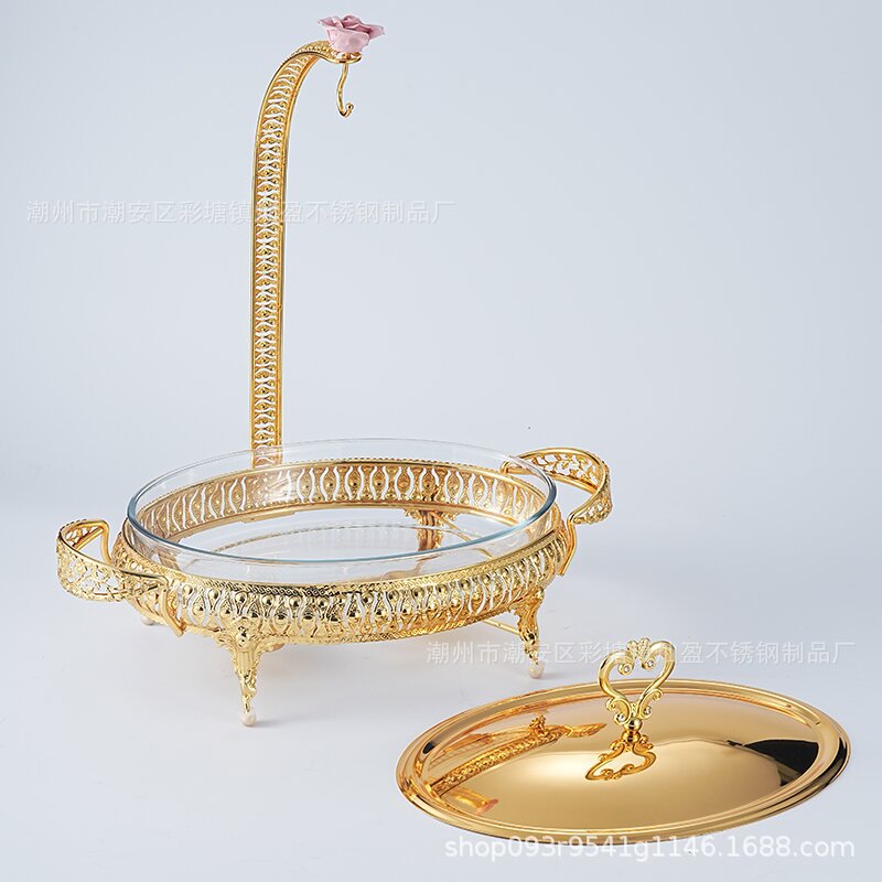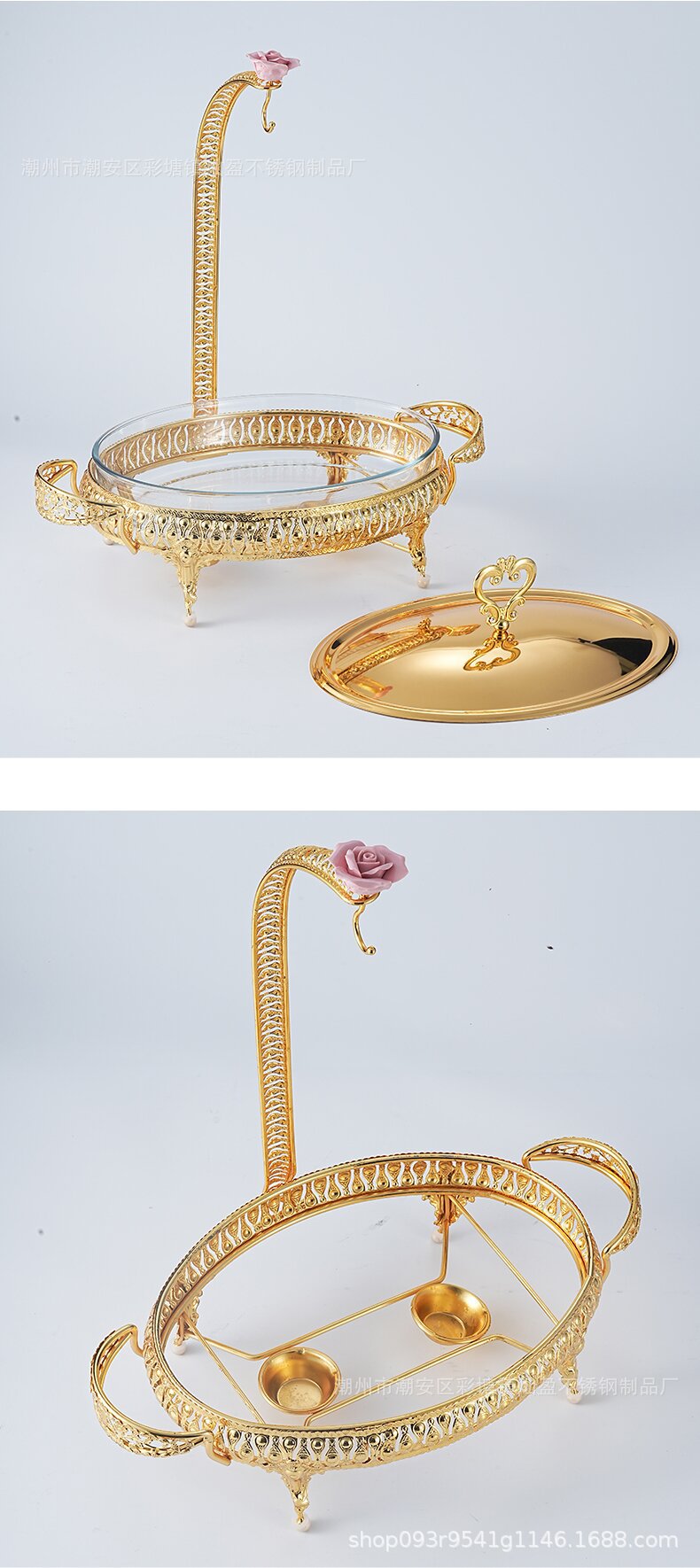 跨境蛋形自助餐炉酒店餐厅食物加热容器铁支架玻璃盘酒精炉保温菜