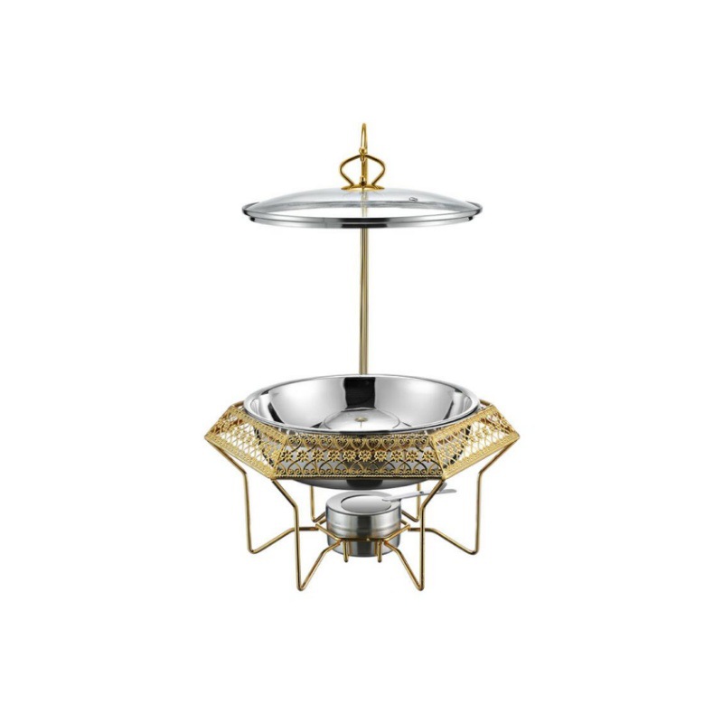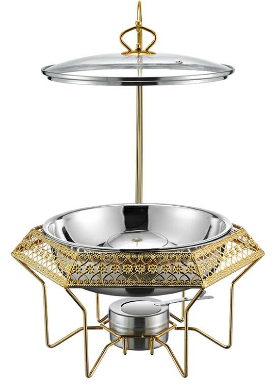 酒店饭店酒精炉小火锅金色六边形雕花餐炉不锈钢挂钩自助餐炉批发