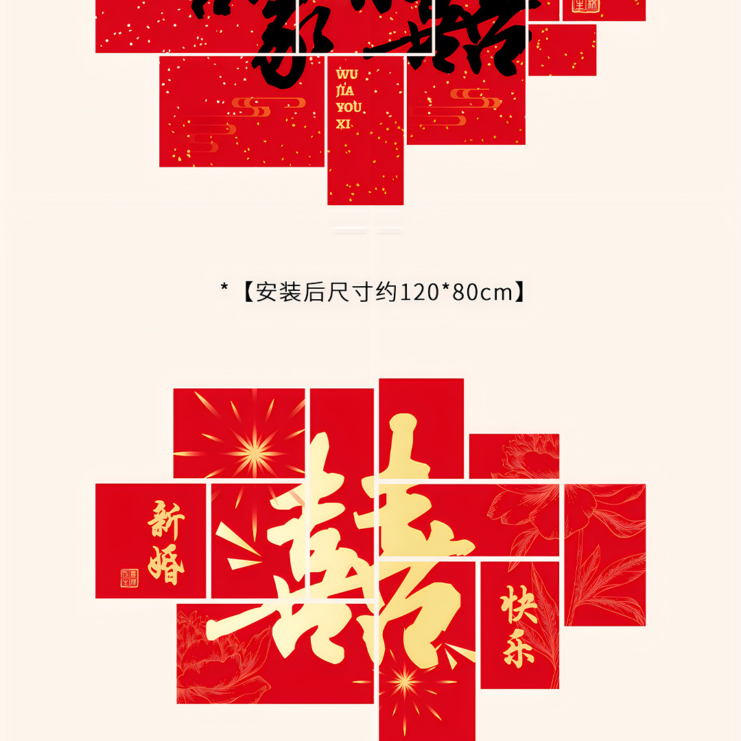结婚宴背景布置爱心喜字吾家有喜结婚订婚装饰婚礼场景布置拍照
