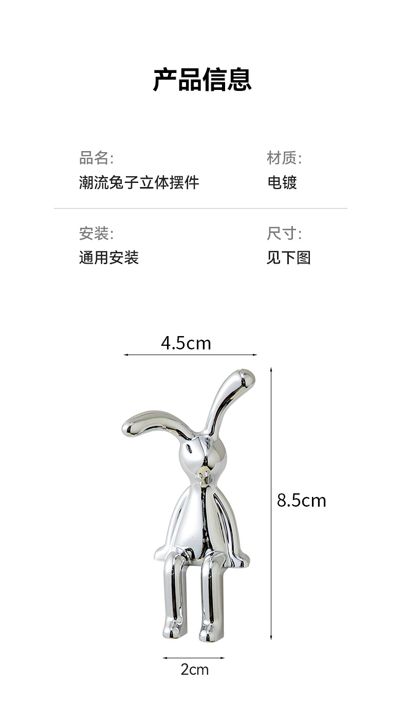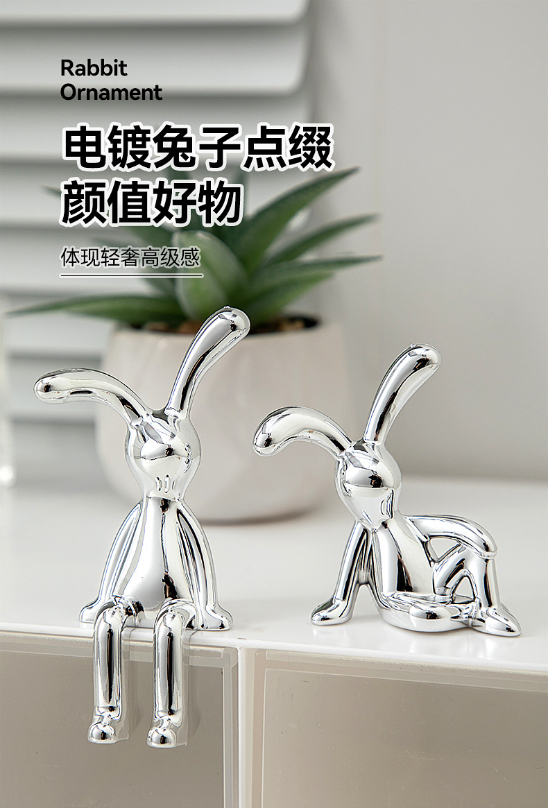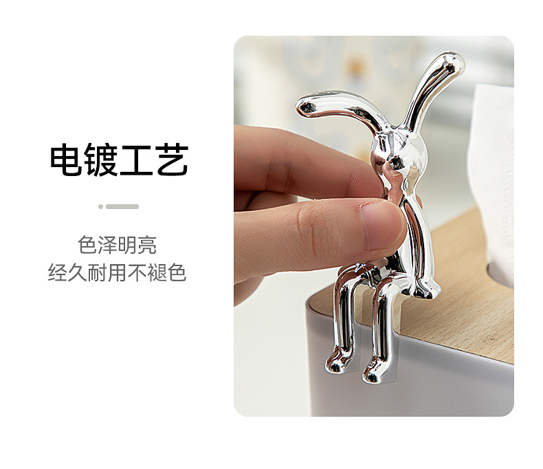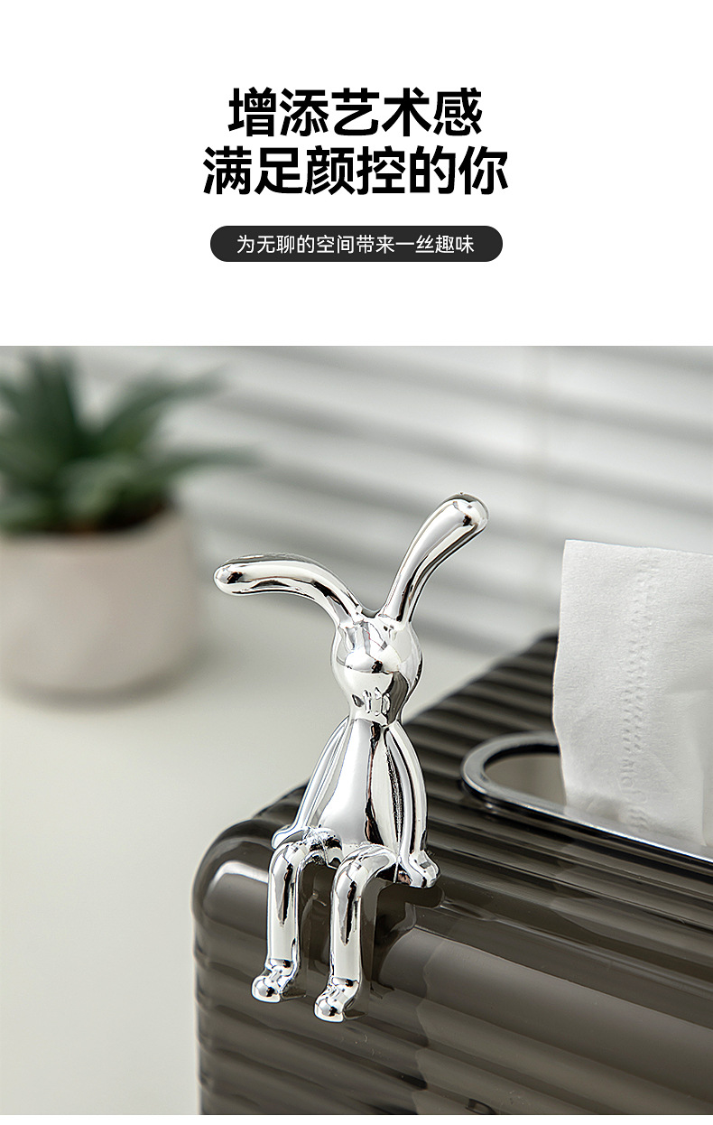 北欧创意兔子工艺品 带轻奢点缀UV电镀家用抽纸盒首饰收纳盒摆件