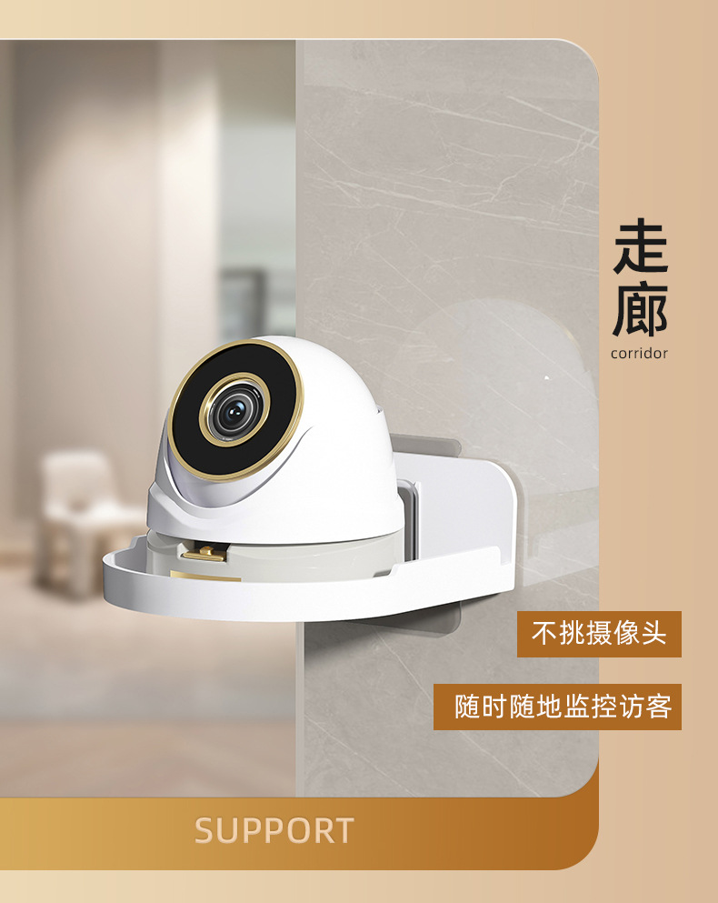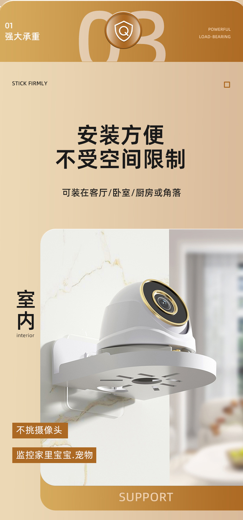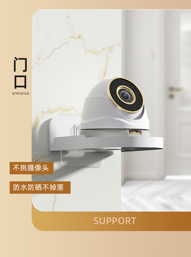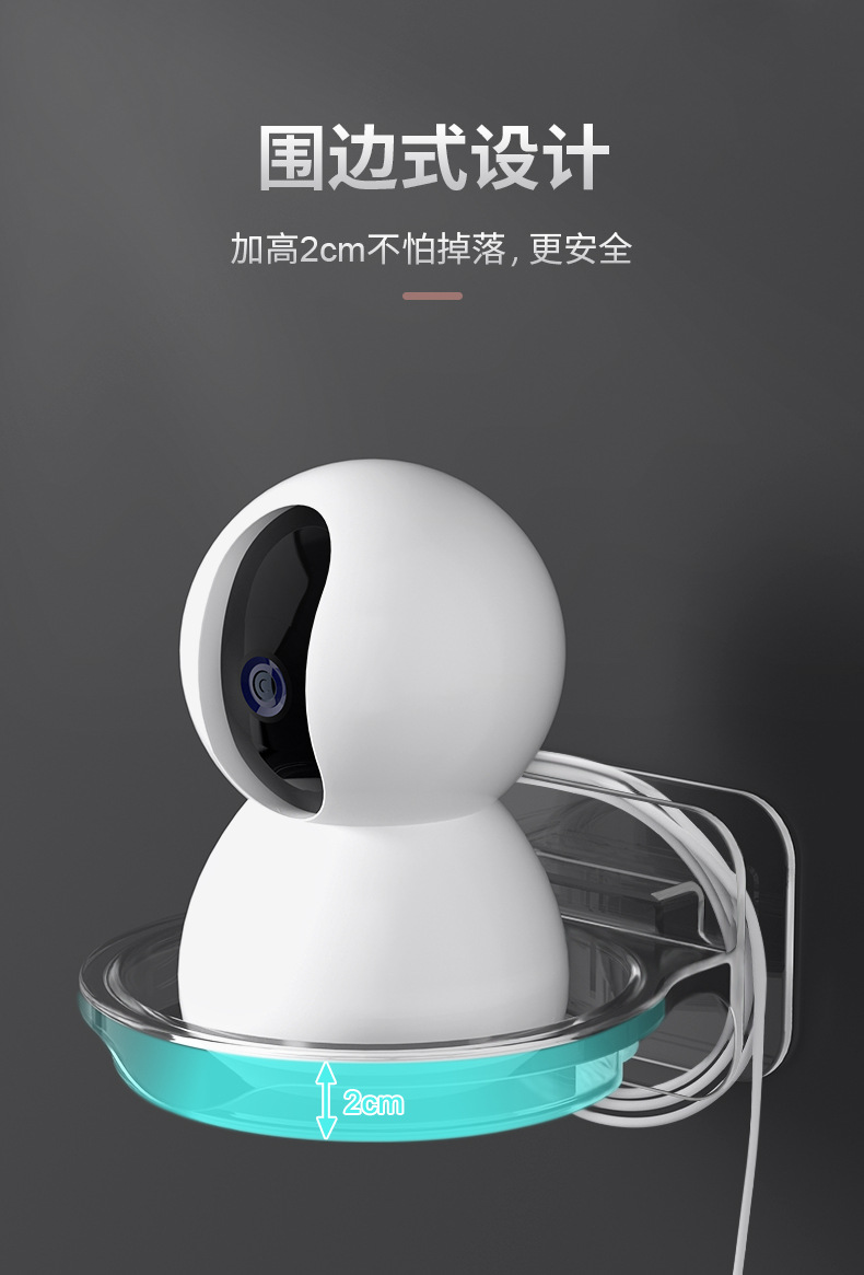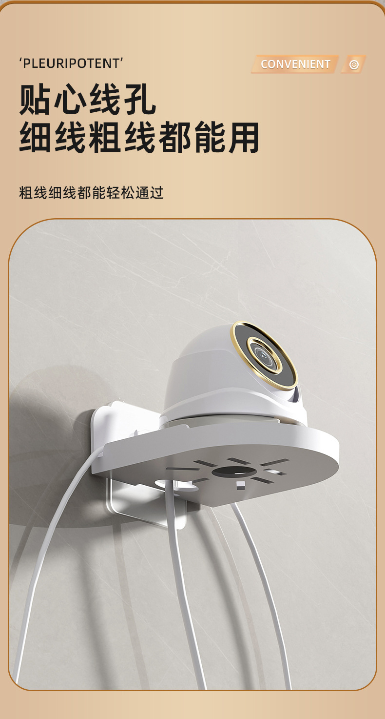 日式圆形无痕壁挂监控摄像头支架 多功能免钉家用小型监控收纳架