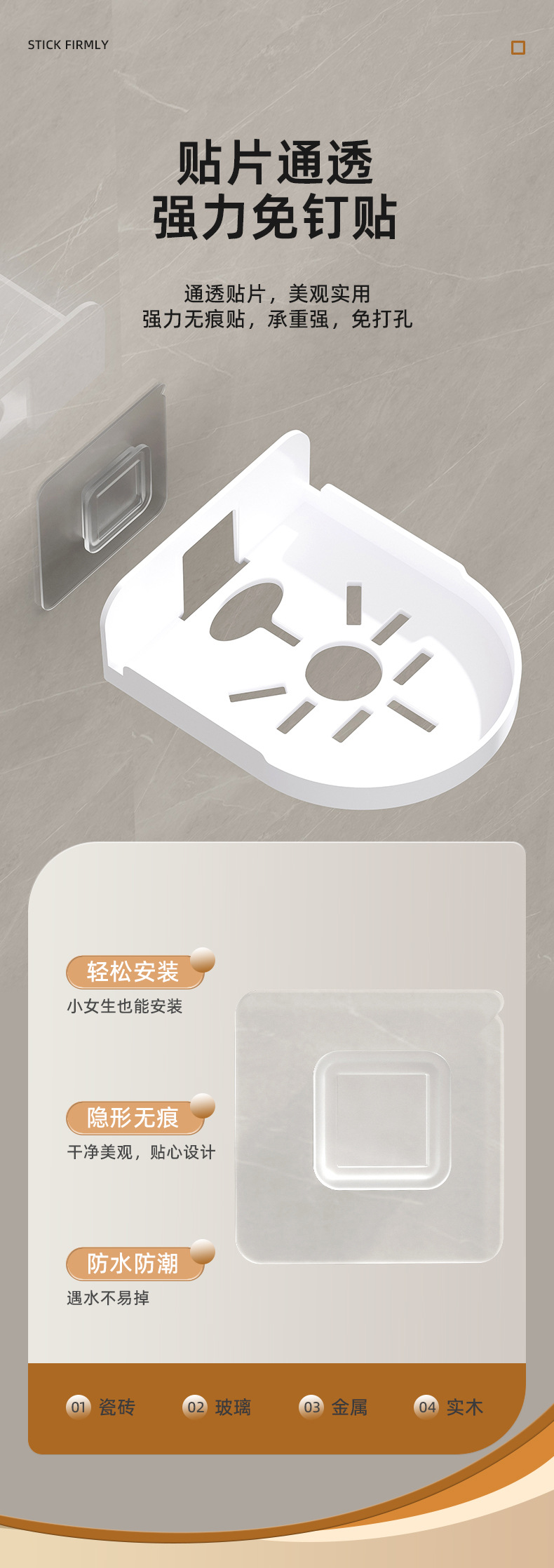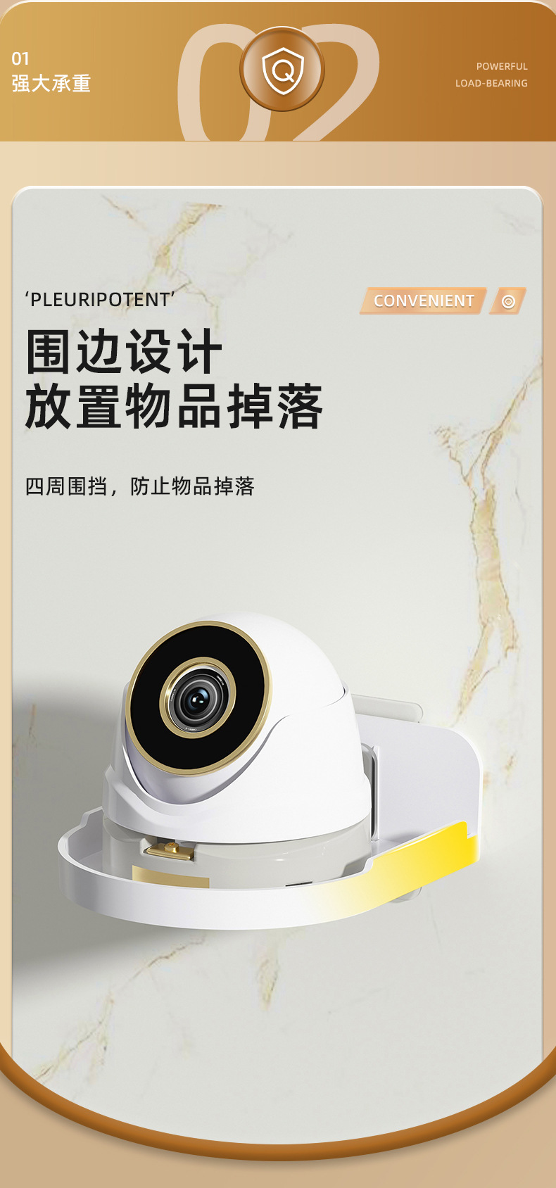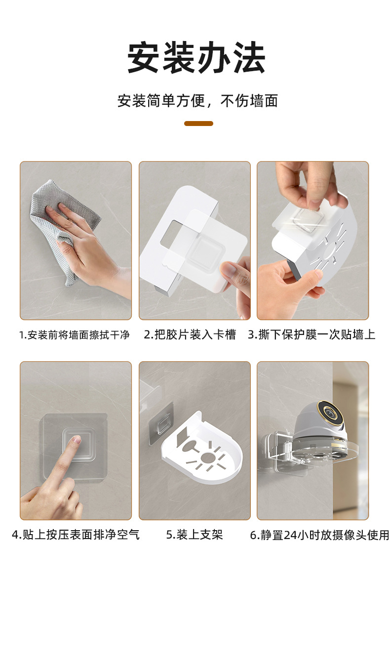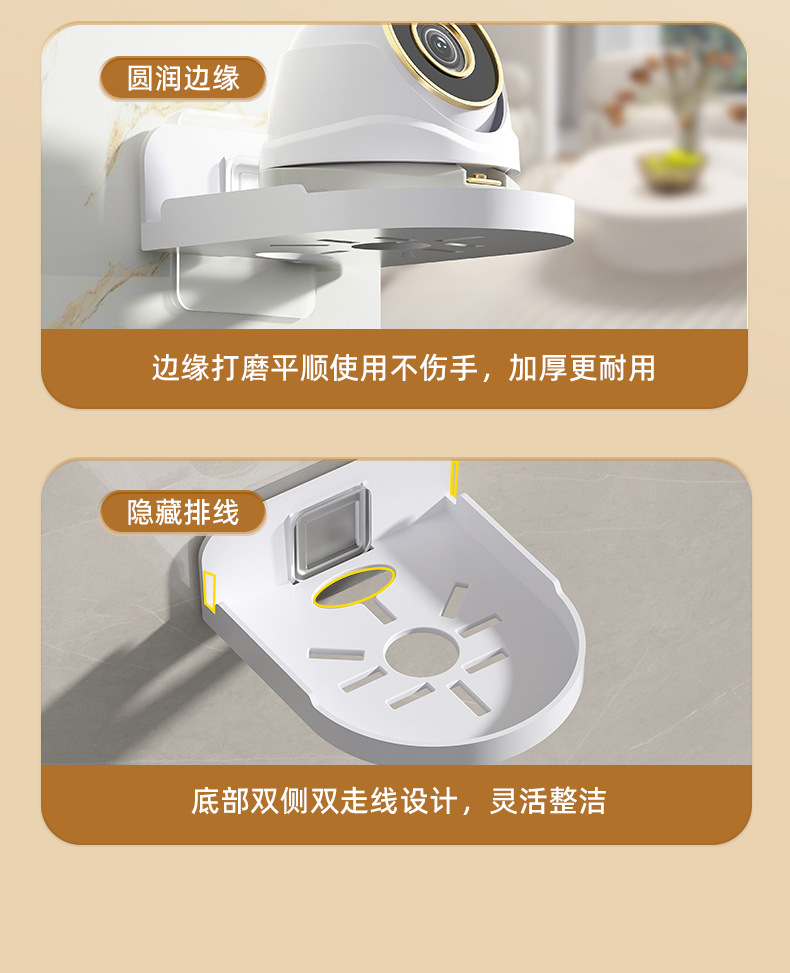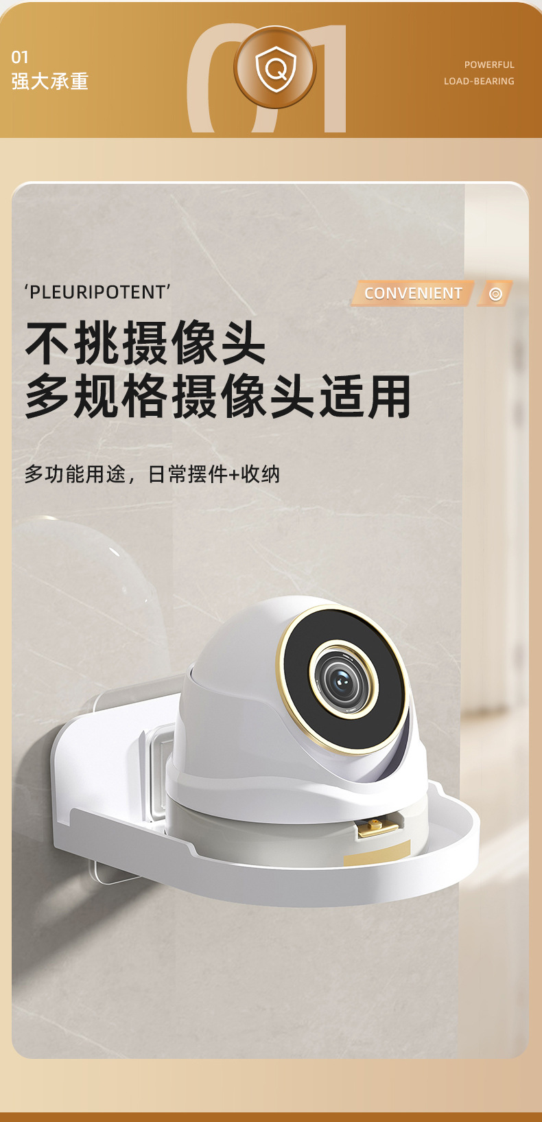 日式圆形无痕壁挂监控摄像头支架 多功能免钉家用小型监控收纳架