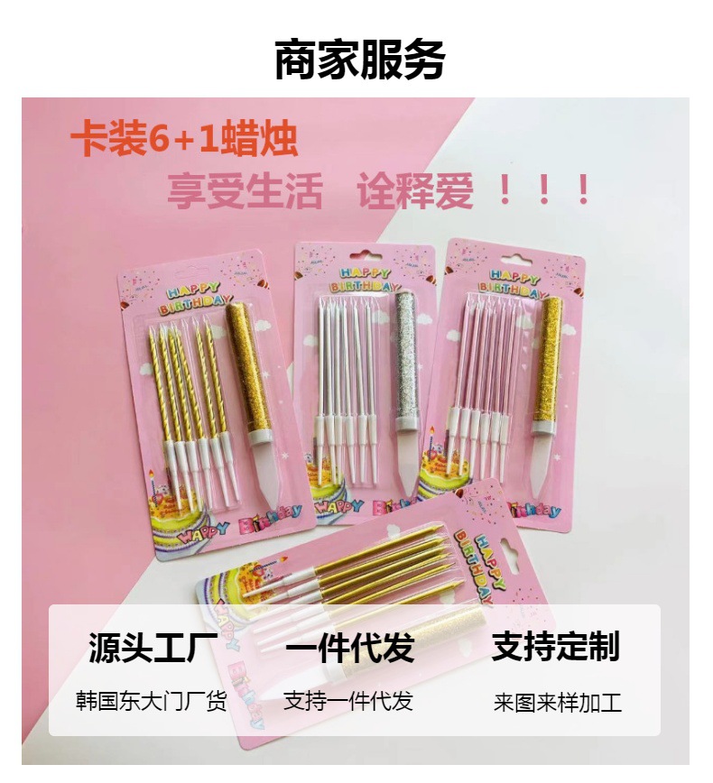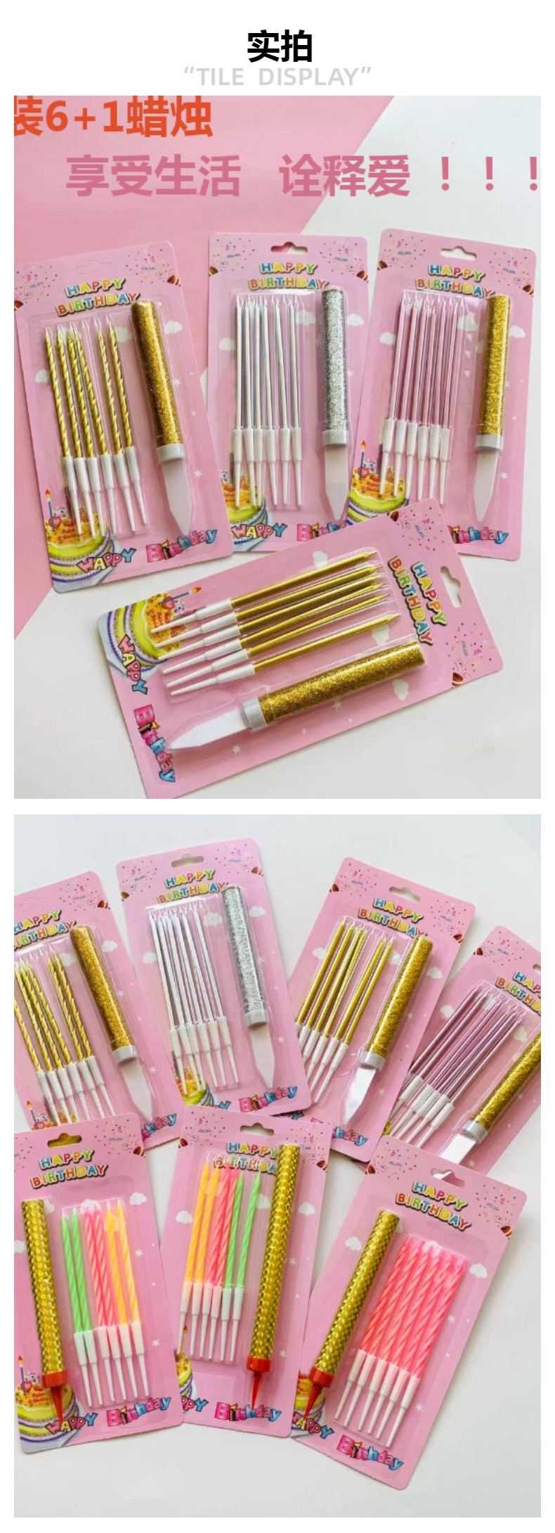 厂家创意五彩6+1蜡烛生日蜡烛蛋糕烘焙彩色6+1蜡烛卡装蜡烛
