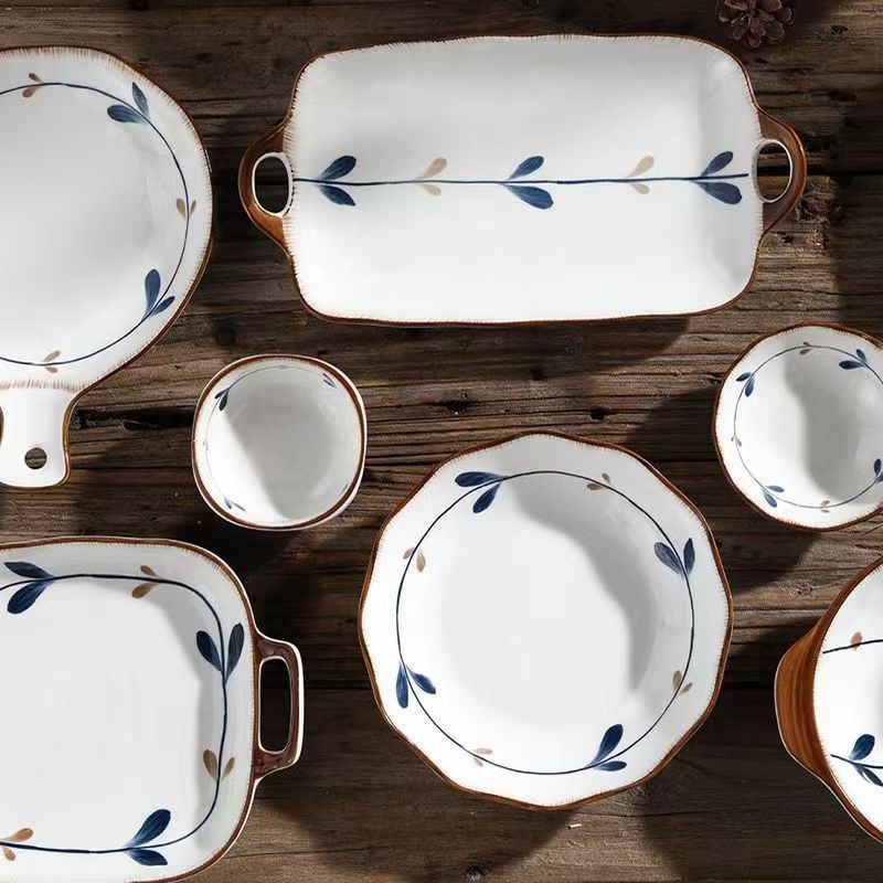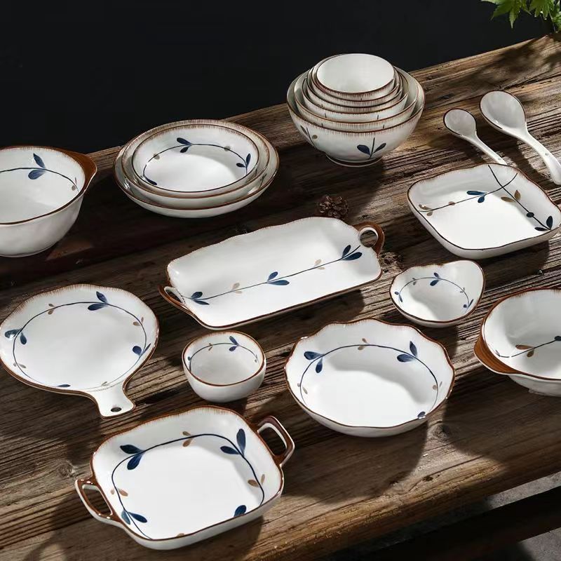 陶瓷套装古韵餐具陶瓷碗菜盘汤盘石纹碗盘