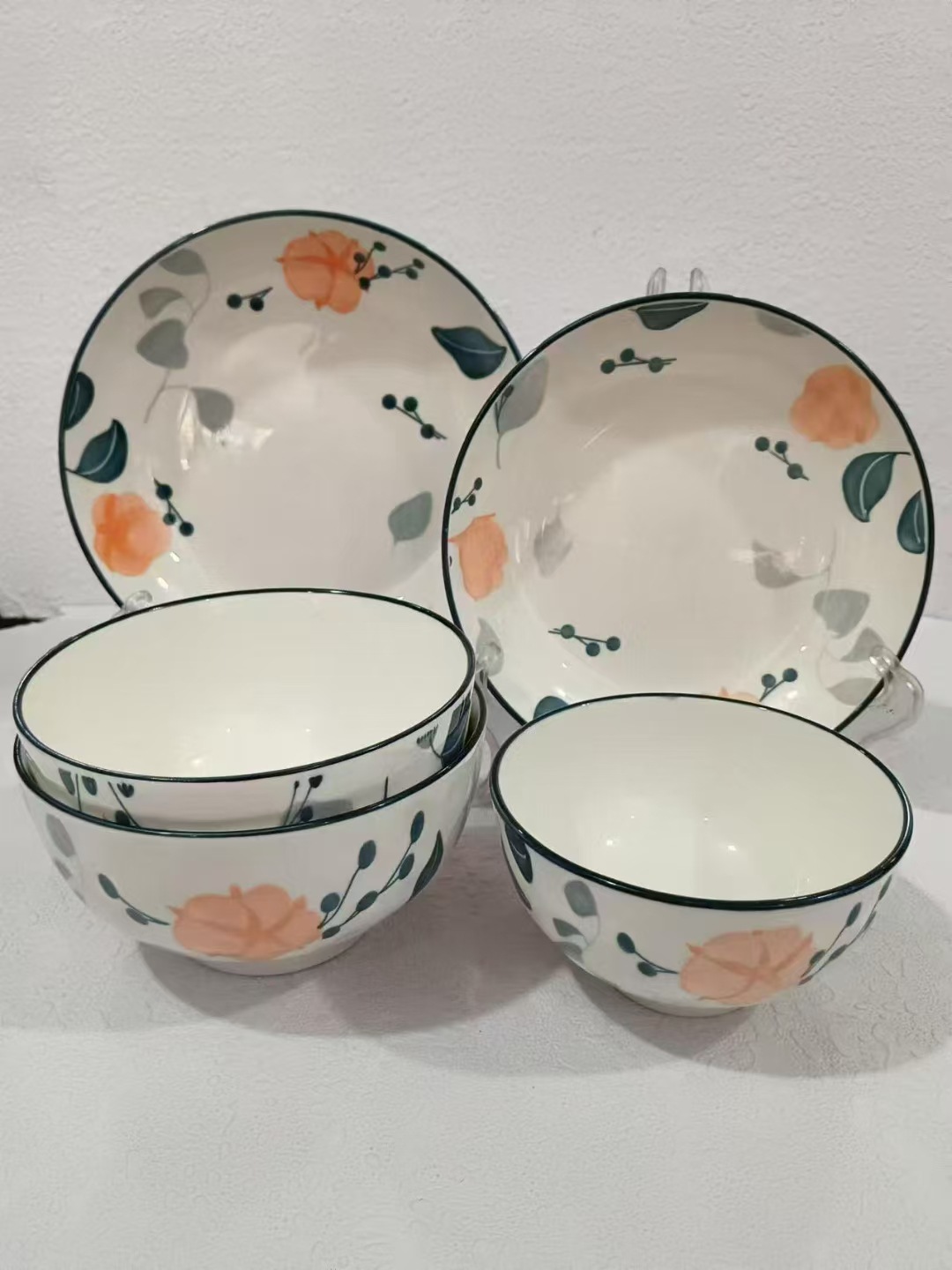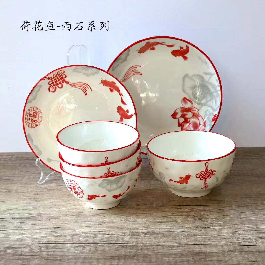 瓷套装雨石碗盘系列餐具轻奢陶瓷碗菜盘汤盘石纹碗盘