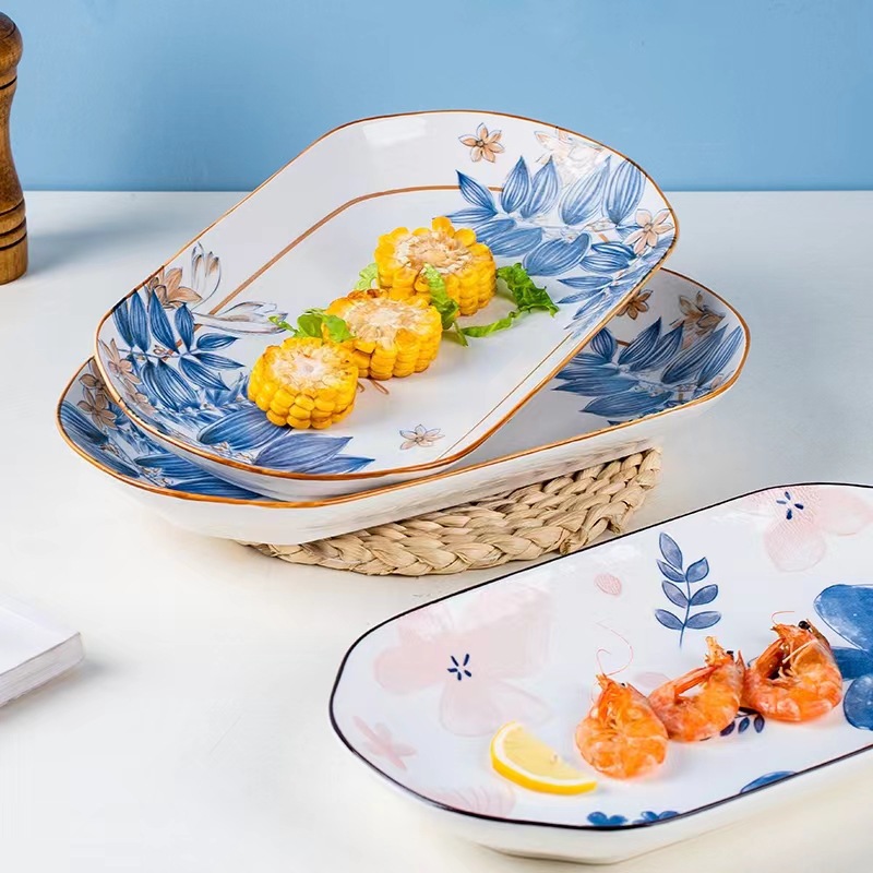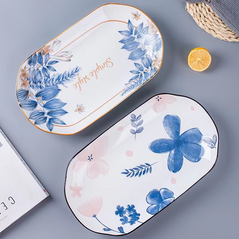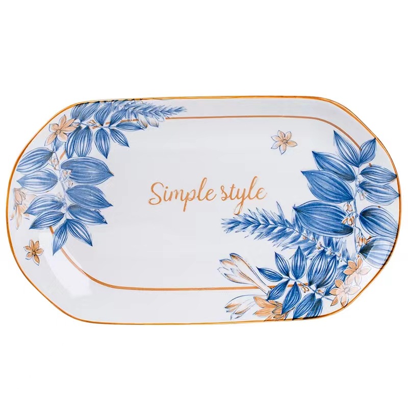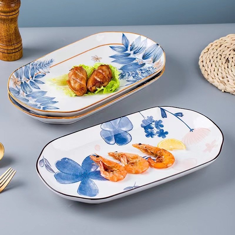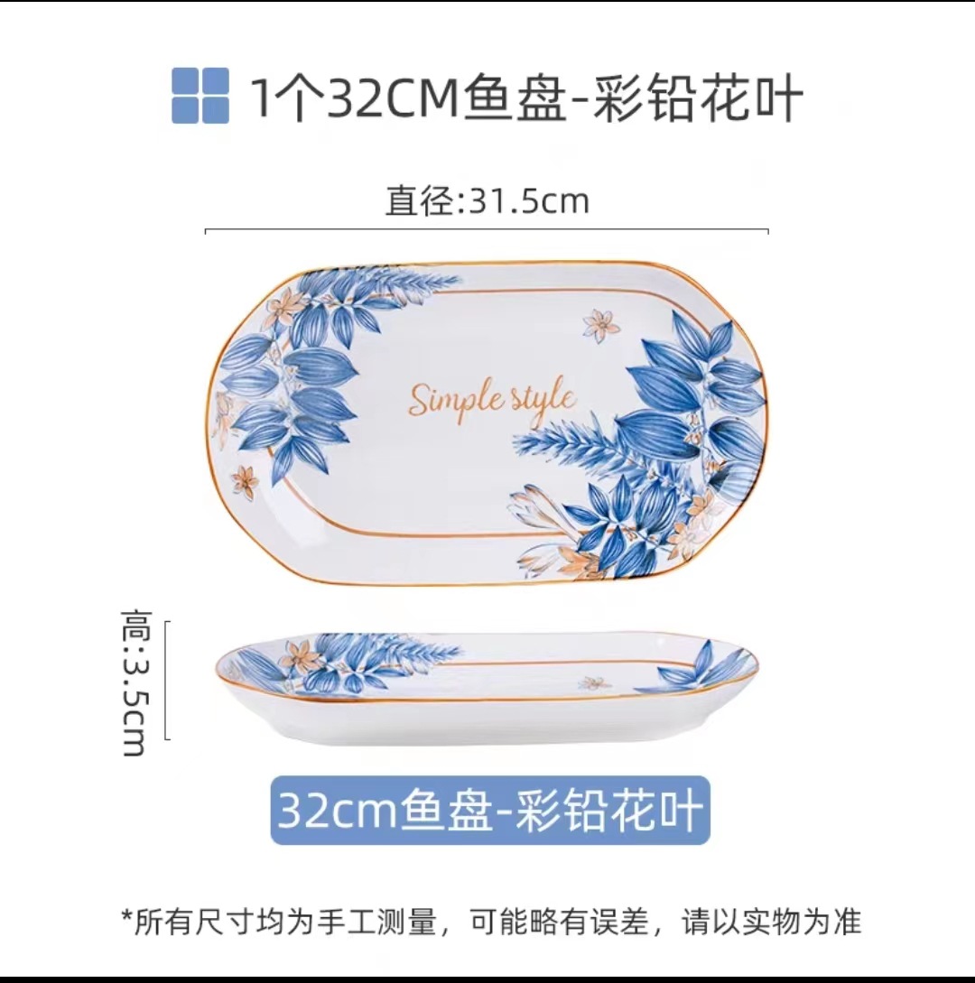 32cm长方鱼盘陶瓷蒸烤鱼盘子青花餐具菜碟寿司盘