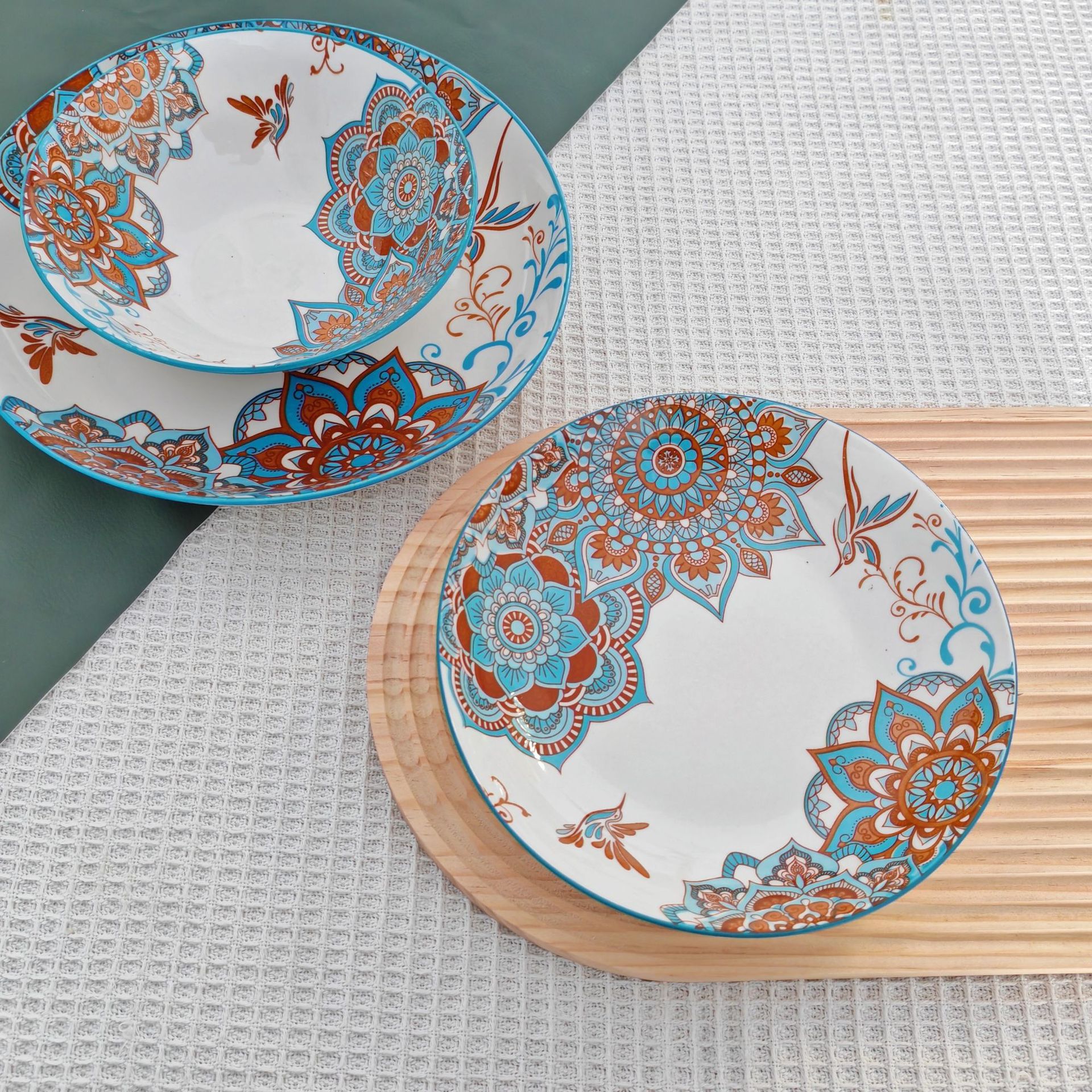 波西米亚风陶瓷餐具吃饭碗汤碗菜盘汤盘鱼盘拉面碗