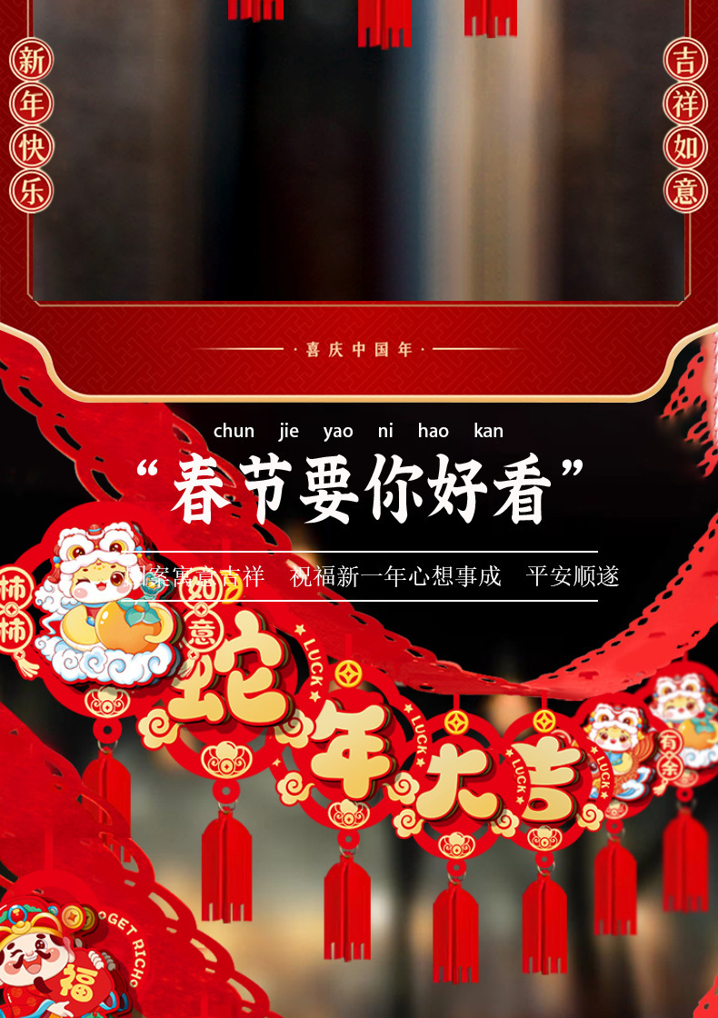 元旦新年春节装饰用品挂饰蛇年2025创意室内场景布置年货拉花挂件