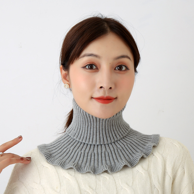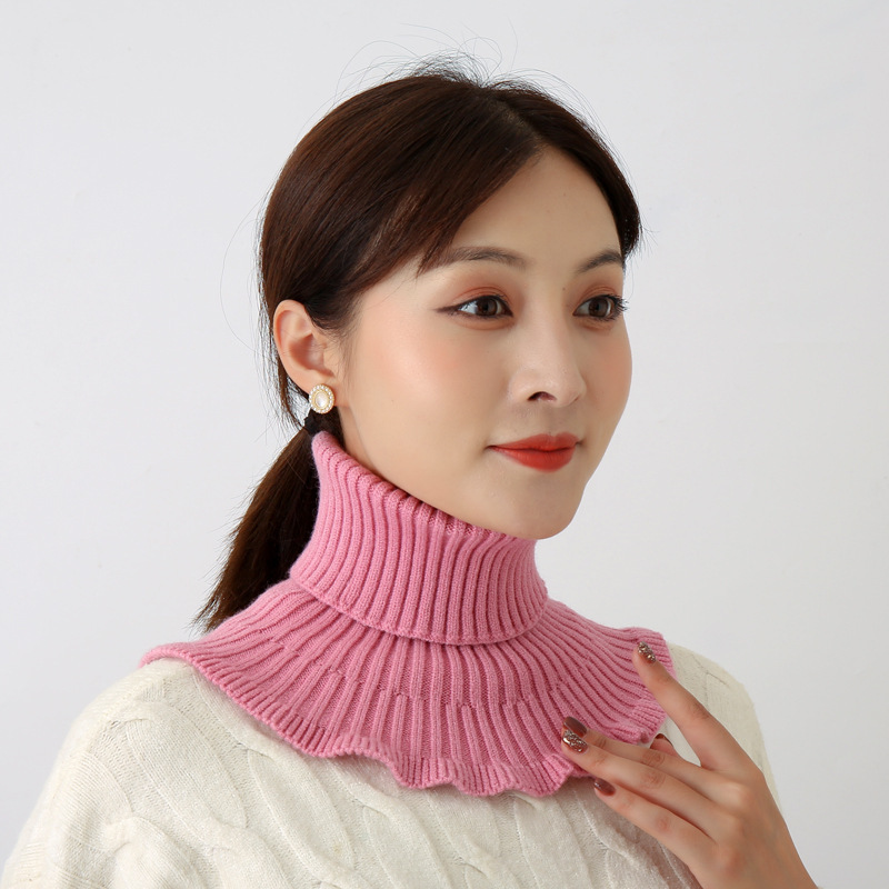 韩版秋冬木耳边套头围脖新款针织高弹护颈保暖女花朵式假领子批发