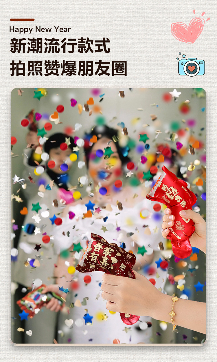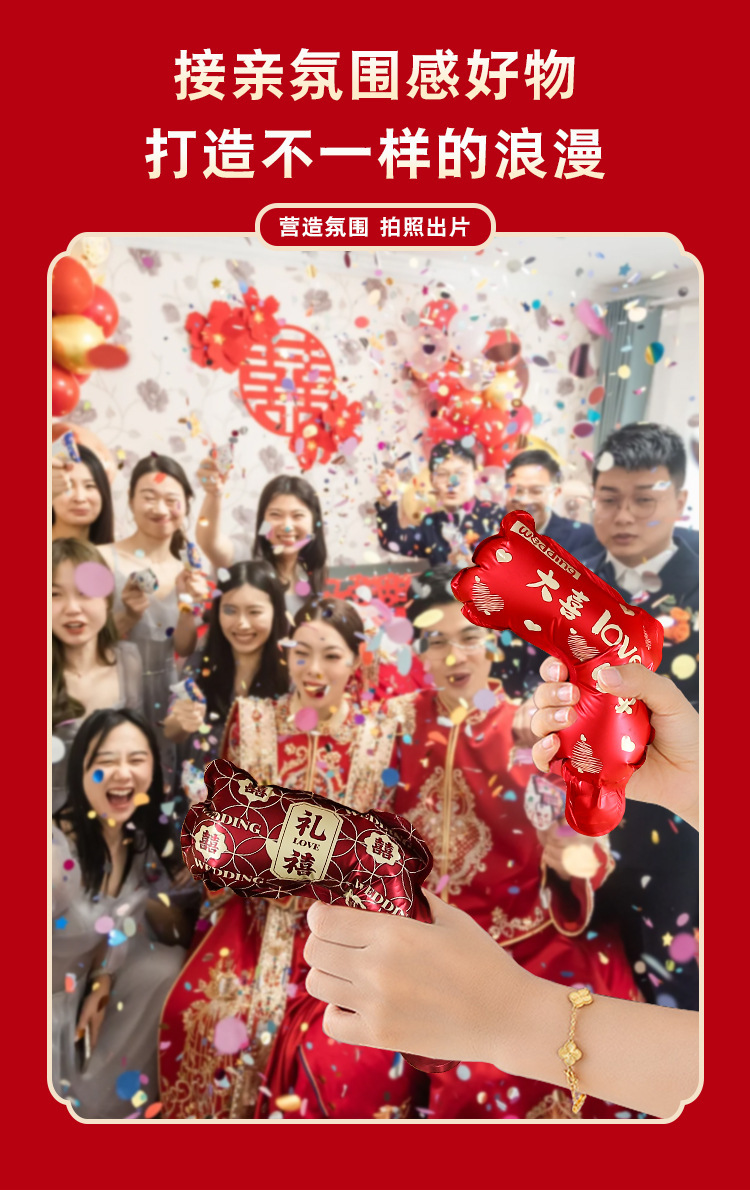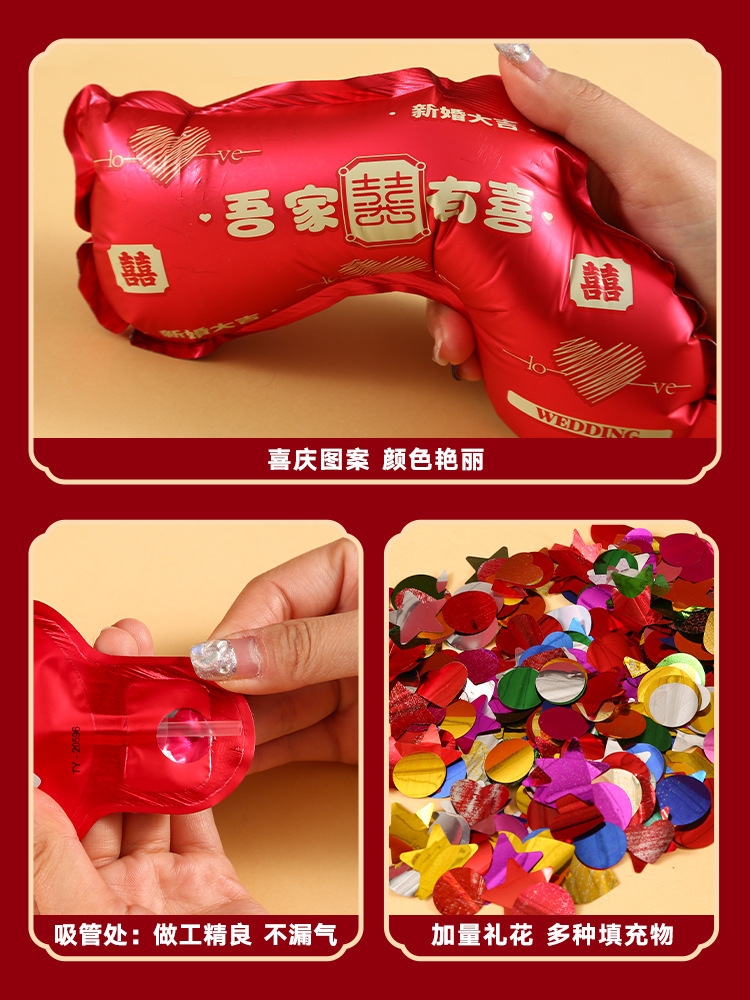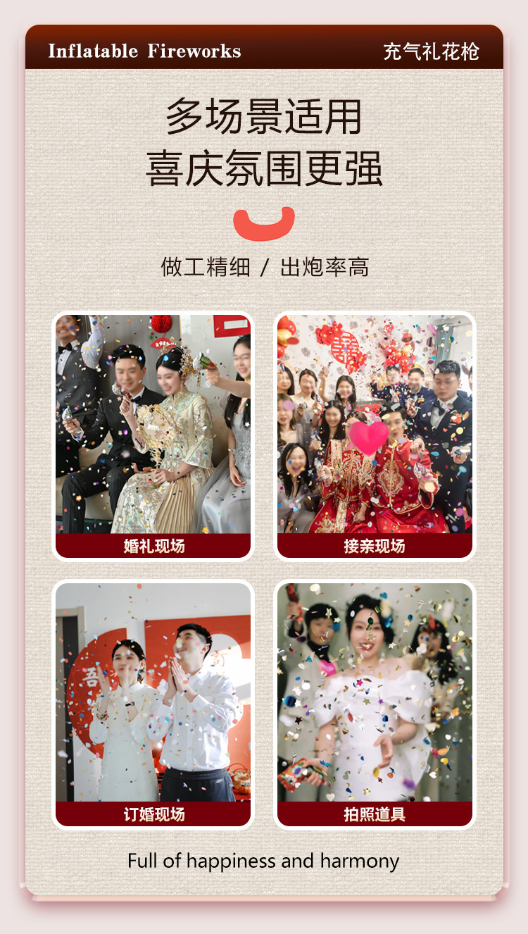 新款充气小礼花枪婚礼接亲游戏拍照道具手持吹气礼炮结婚用品大全