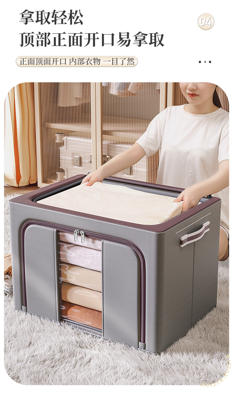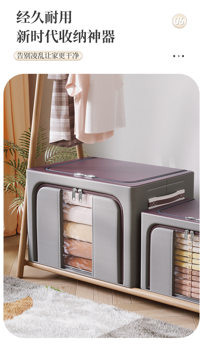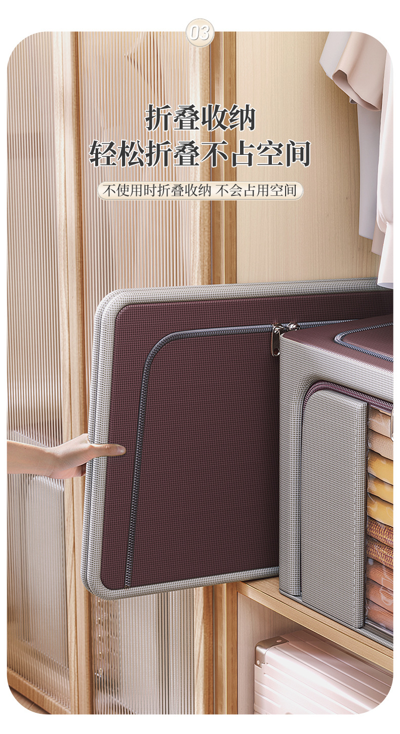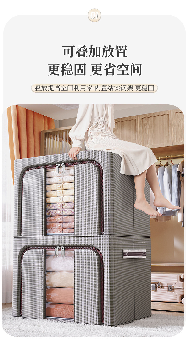 双拼牛津布折叠收纳箱实心钢架支撑衣柜整理收纳储物框大号百纳箱