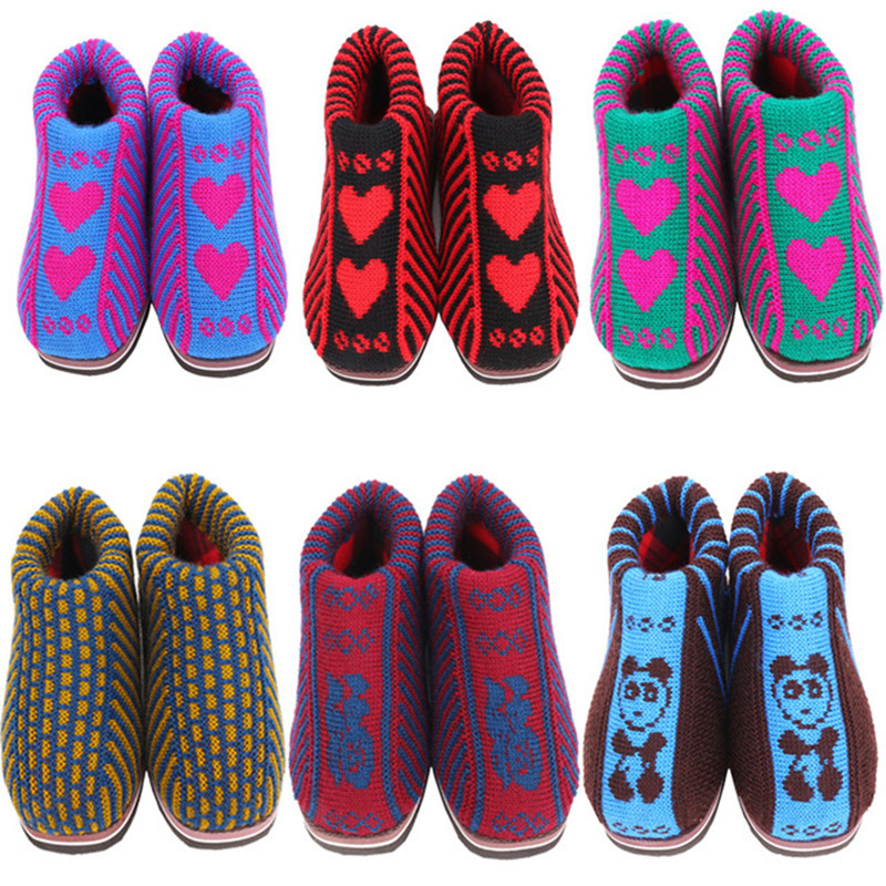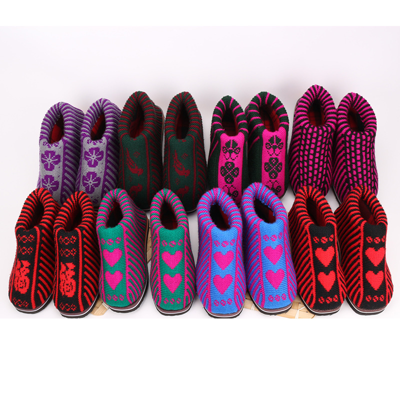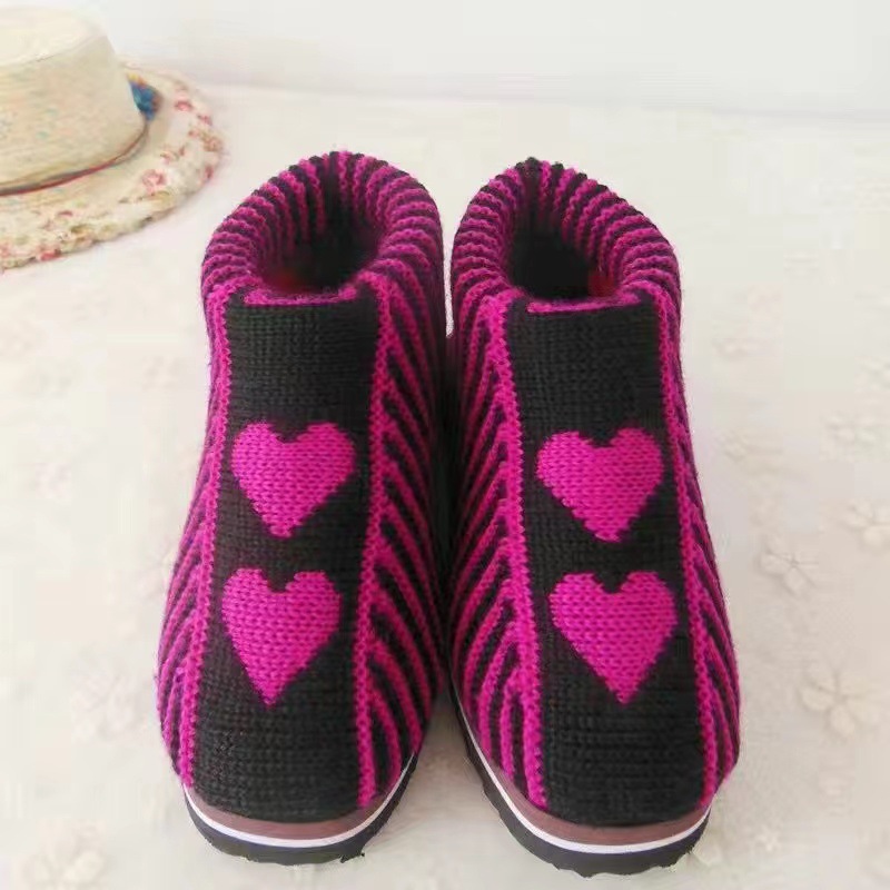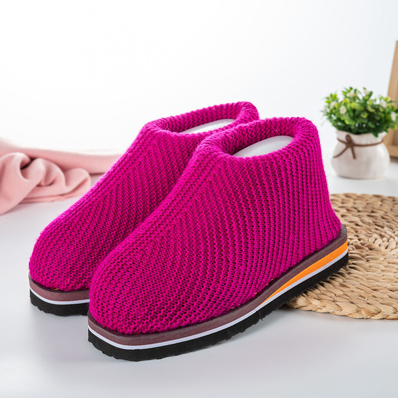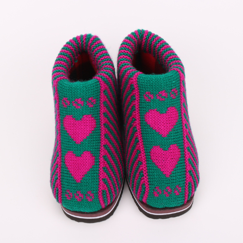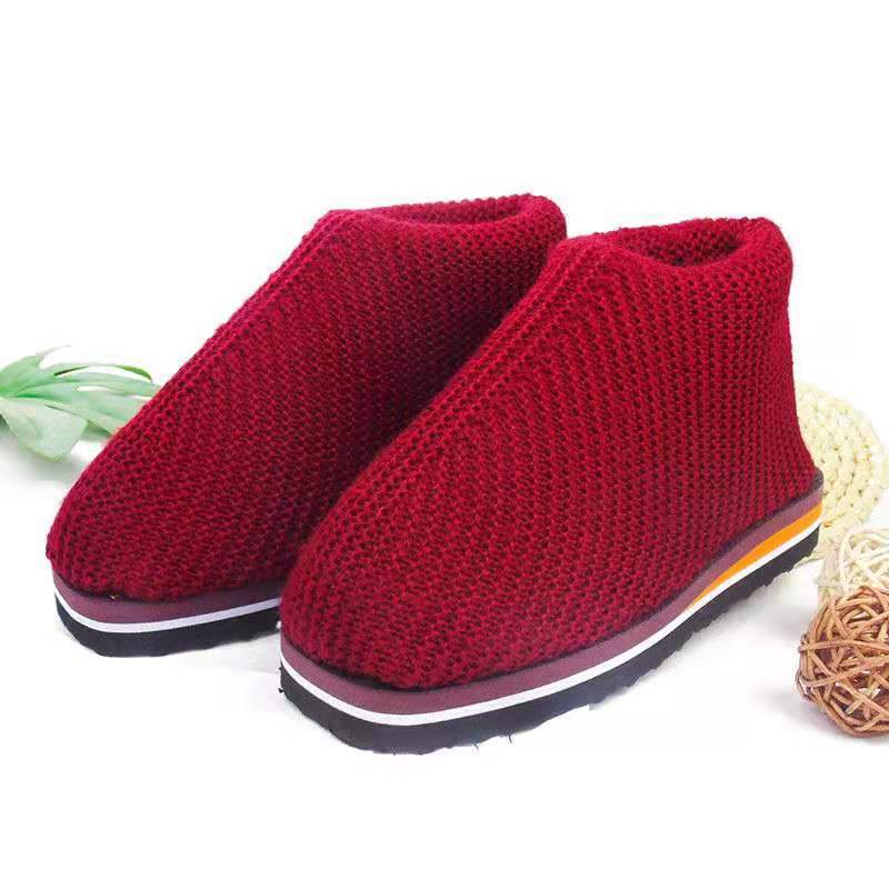 冬季加厚成品毛线鞋居家保暖棉鞋防滑纯手工编织男女结婚鞋子老人