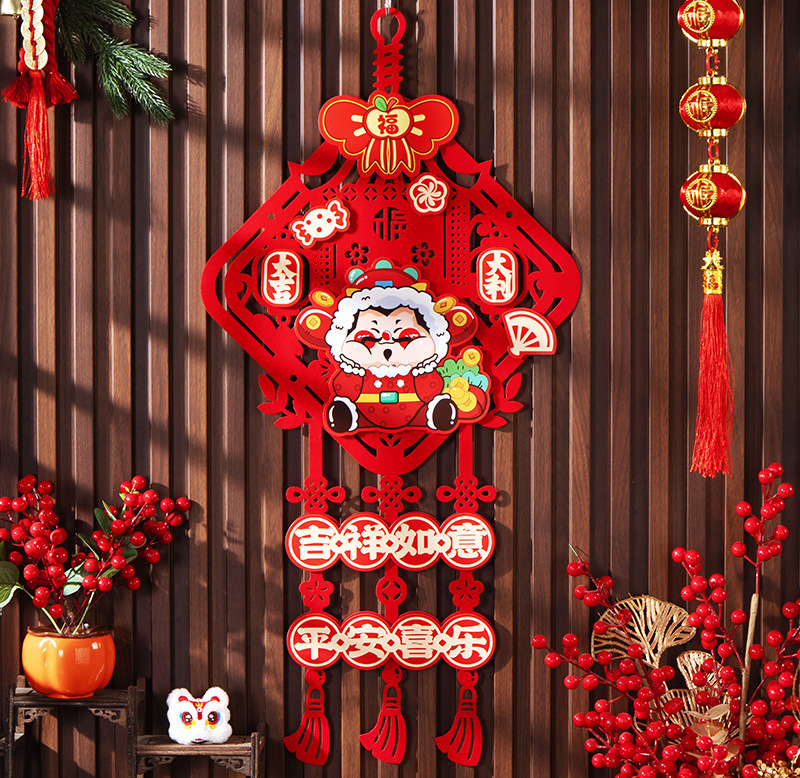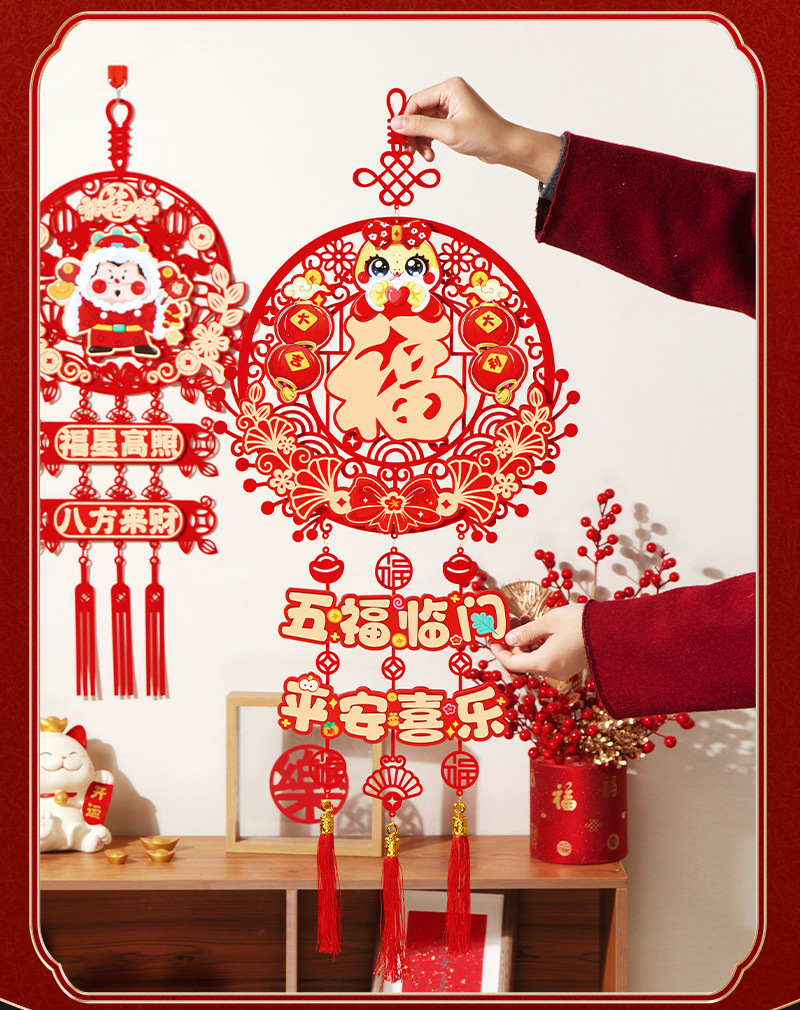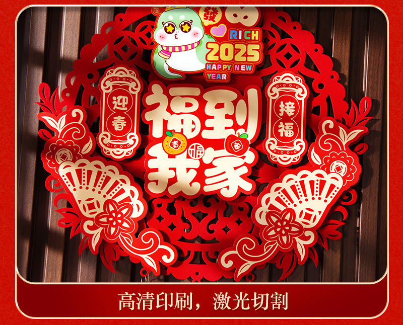 2025蛇年卡通植绒布福字挂饰新年毛绒布装饰过年春节房门窗户挂件