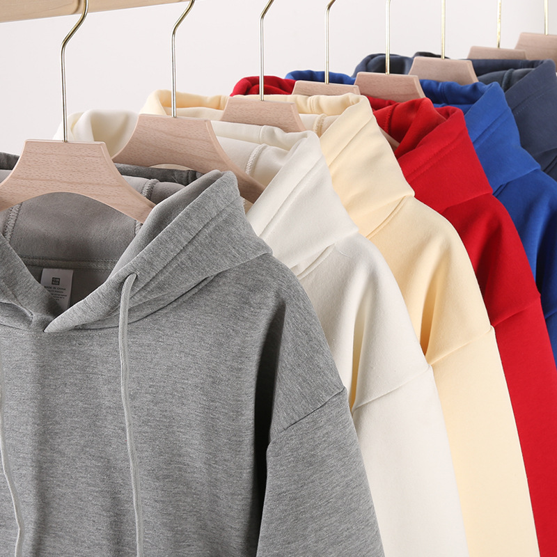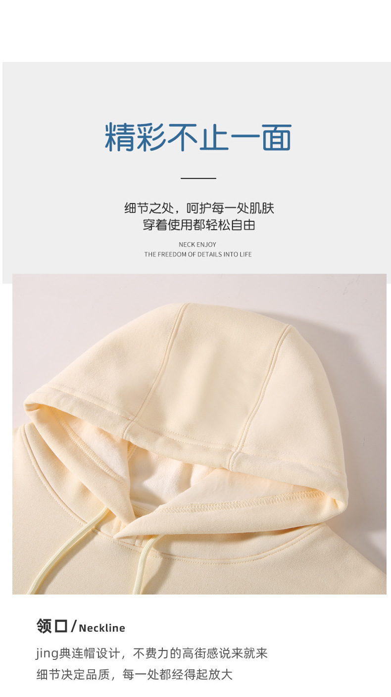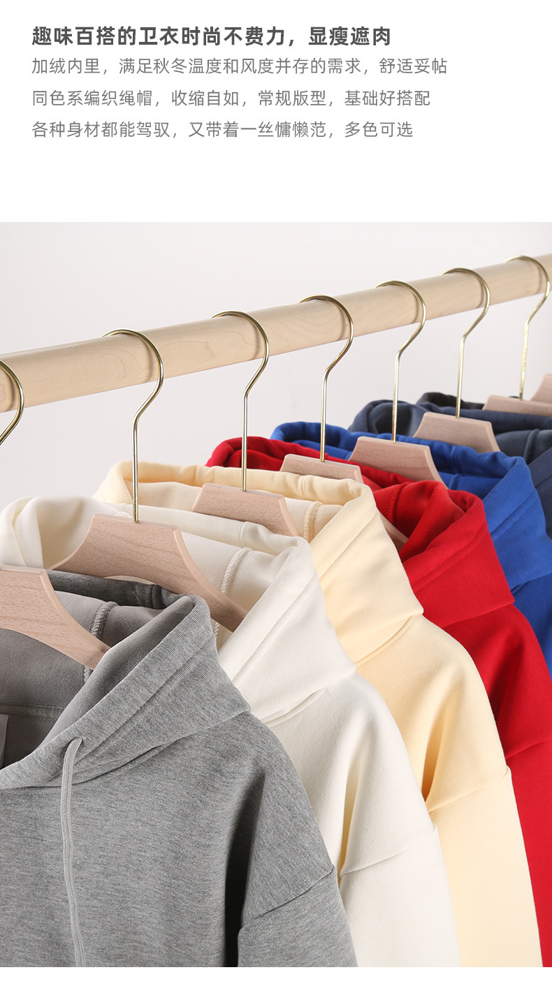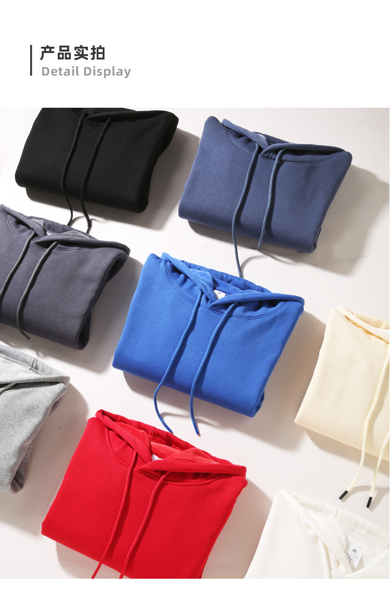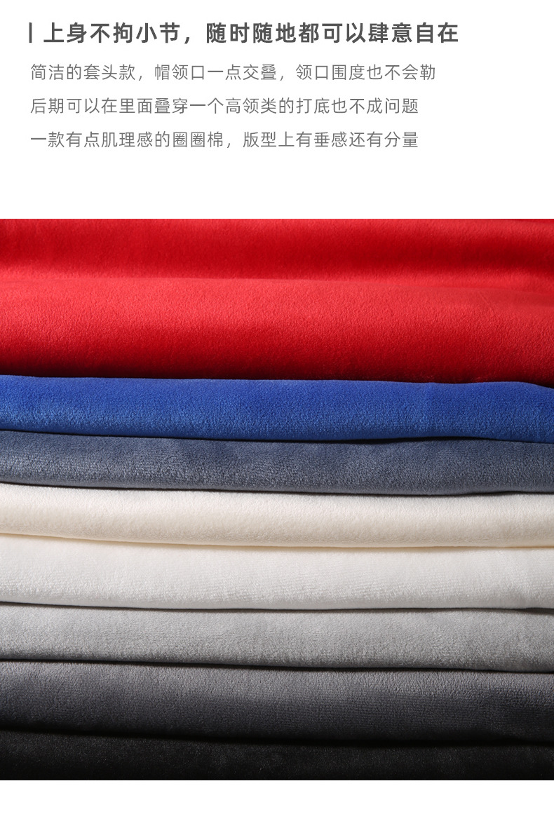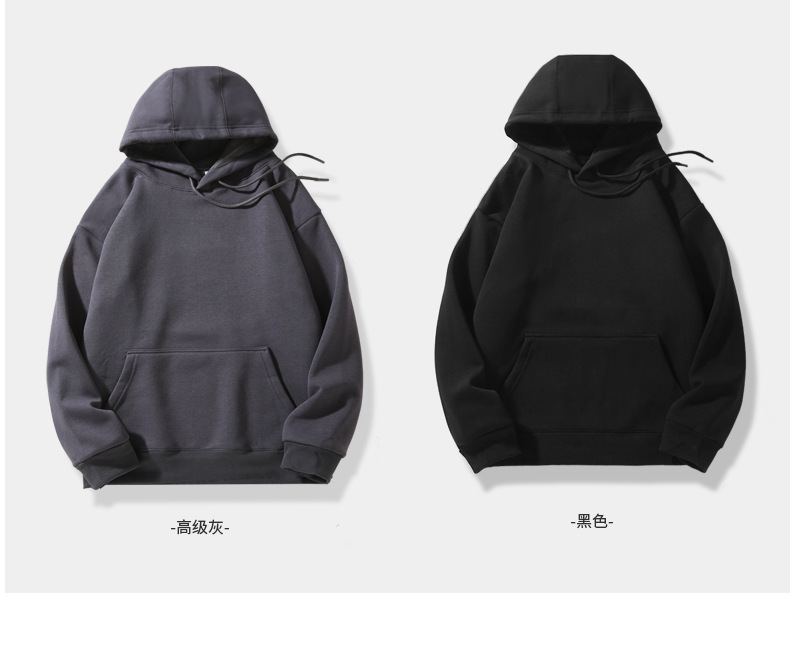 冬季重磅纯棉银狐绒套头卫衣男款加厚加绒宽松纯色连帽衫定制印图