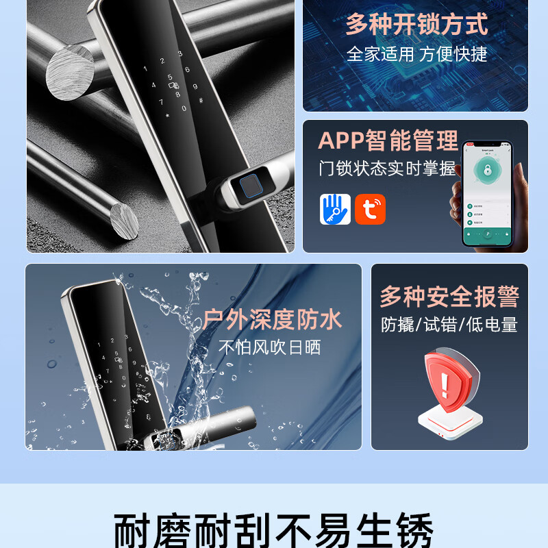 304不锈钢防盗门密码锁指纹IC卡通通锁TTLOCKTUYA智能门锁公寓锁