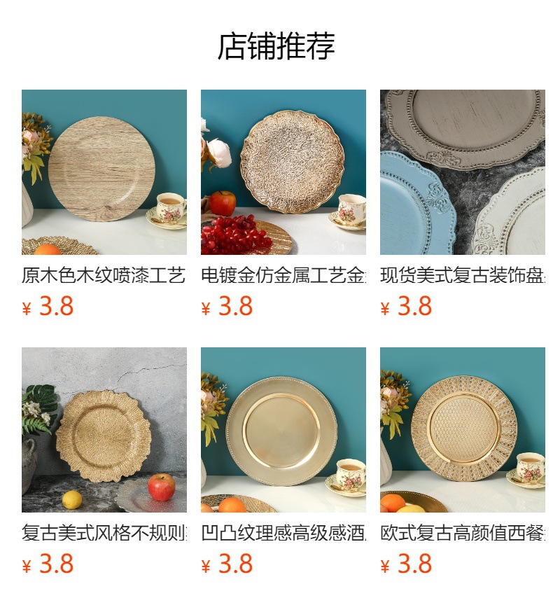 电镀金仿金属工艺pp材质塑料盘装饰婚庆盘欧式charger plate