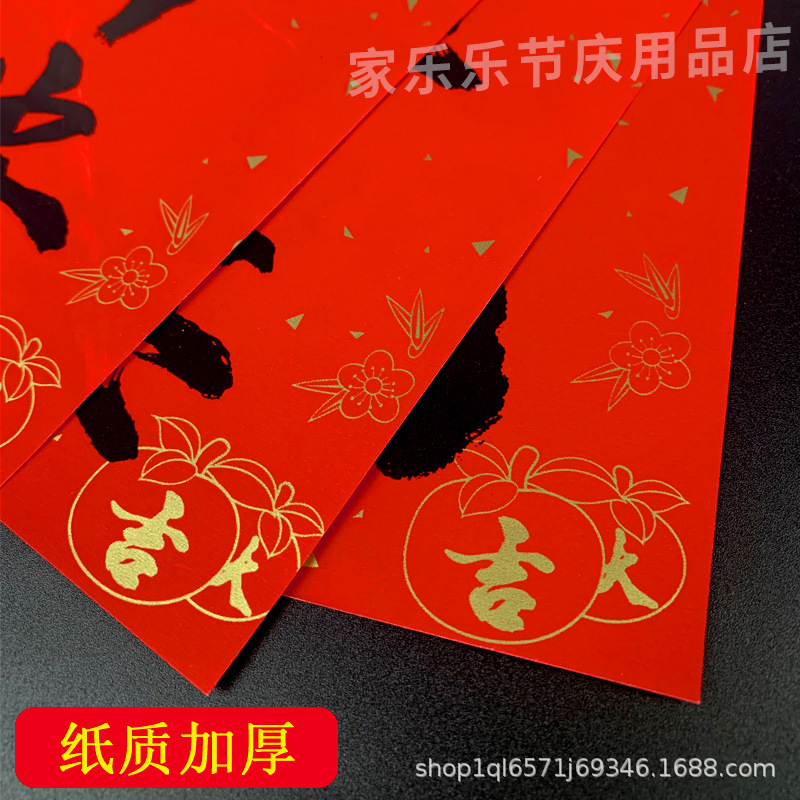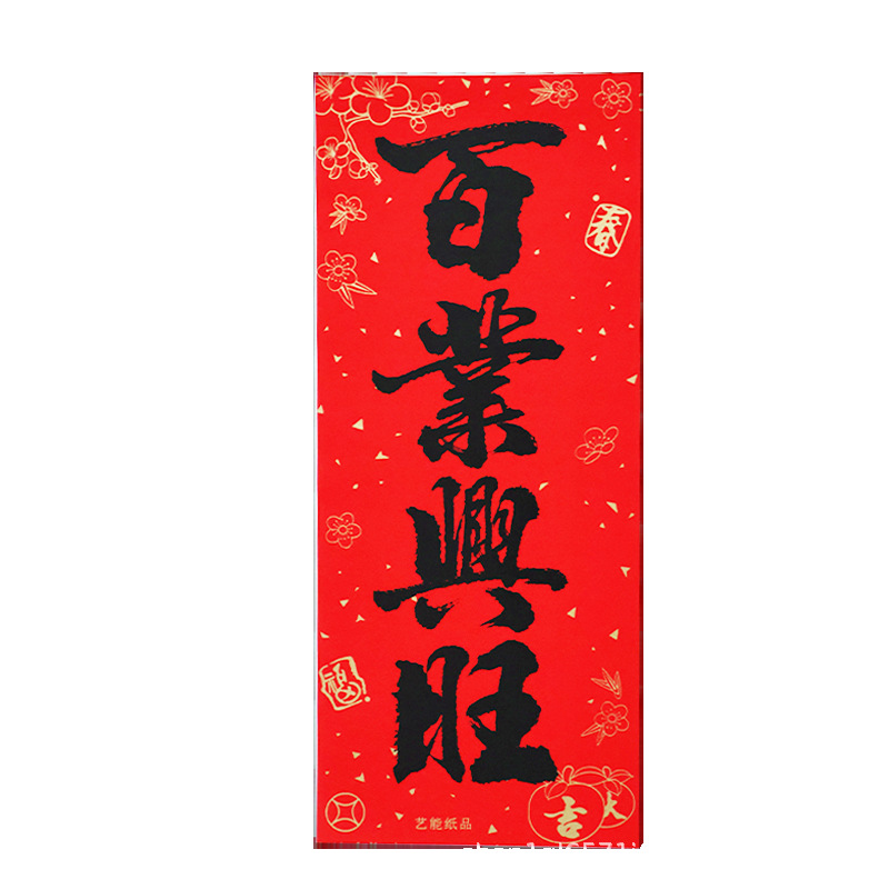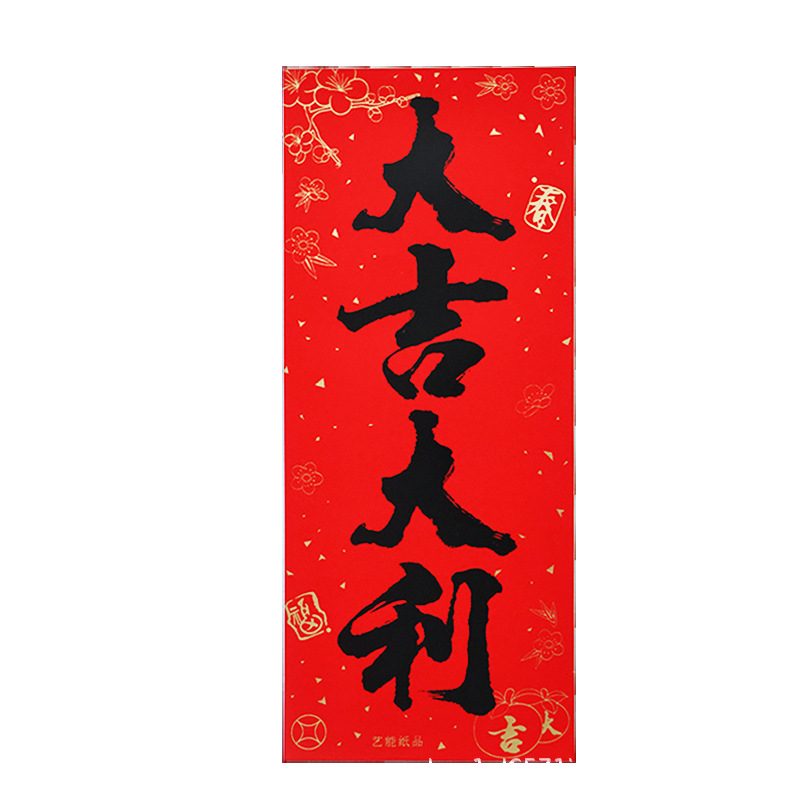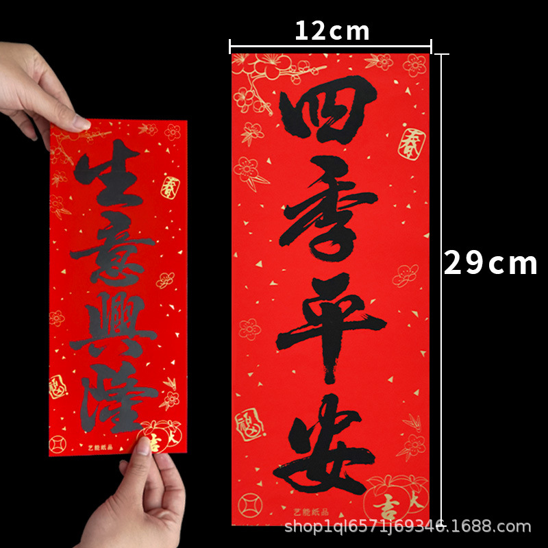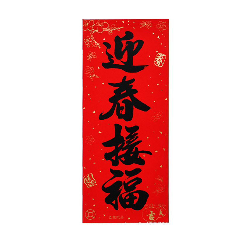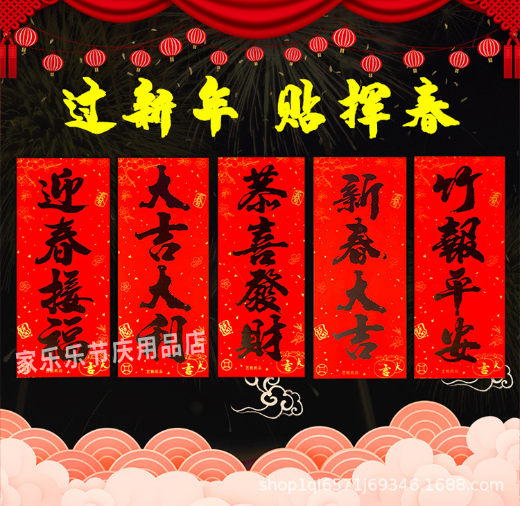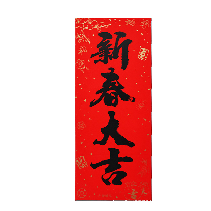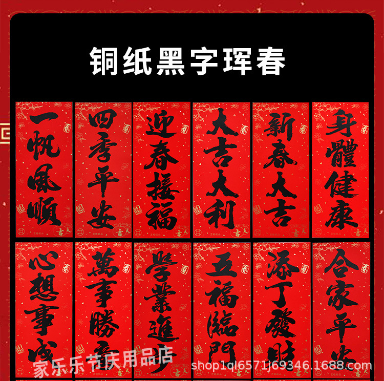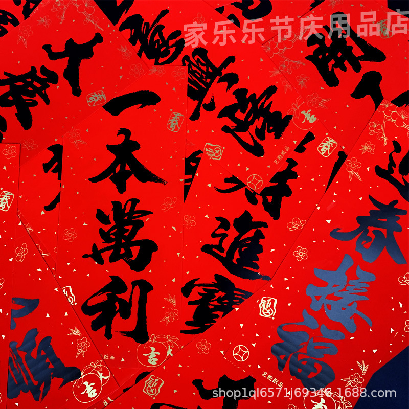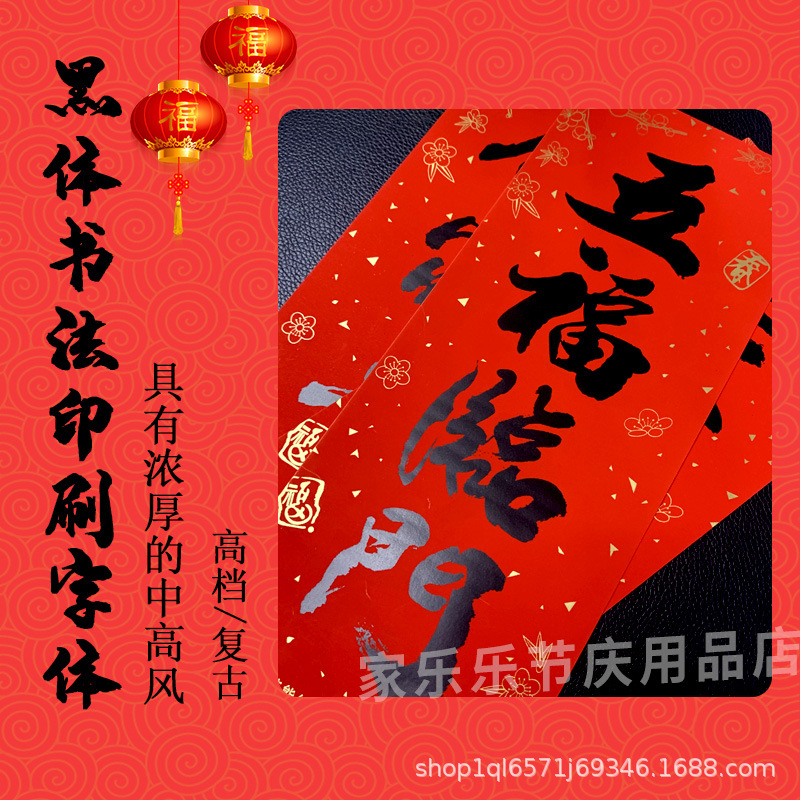 新年新款铜纸珲春门贴黑字书法四字对联短联竖联春节年货挥春批发