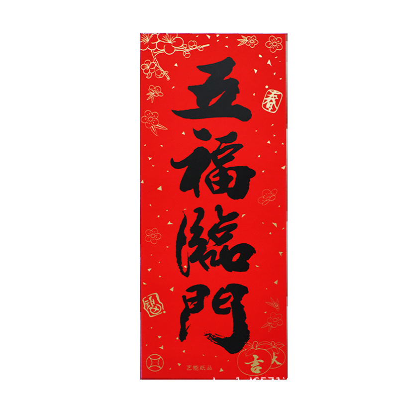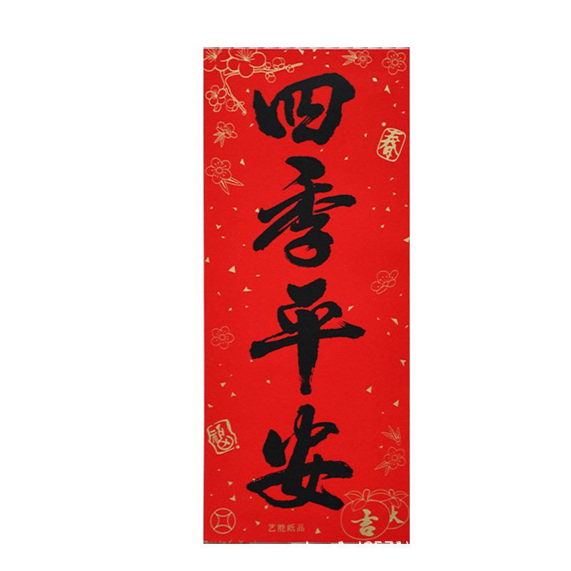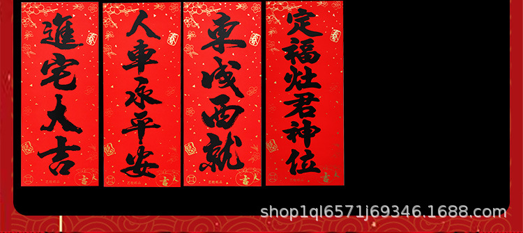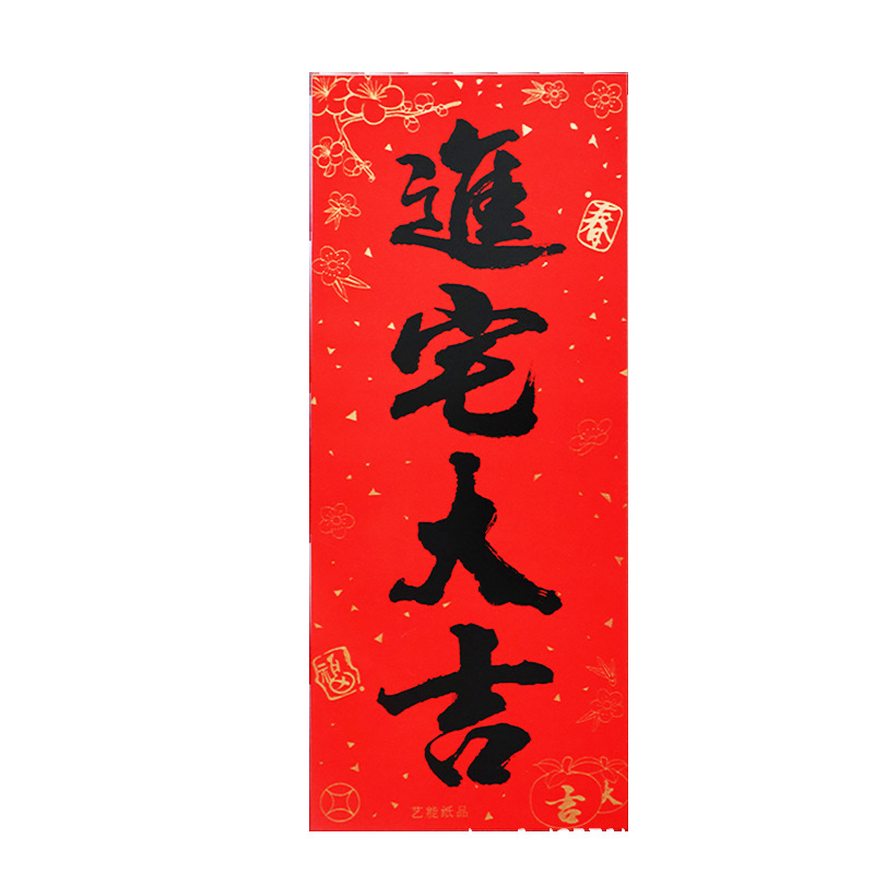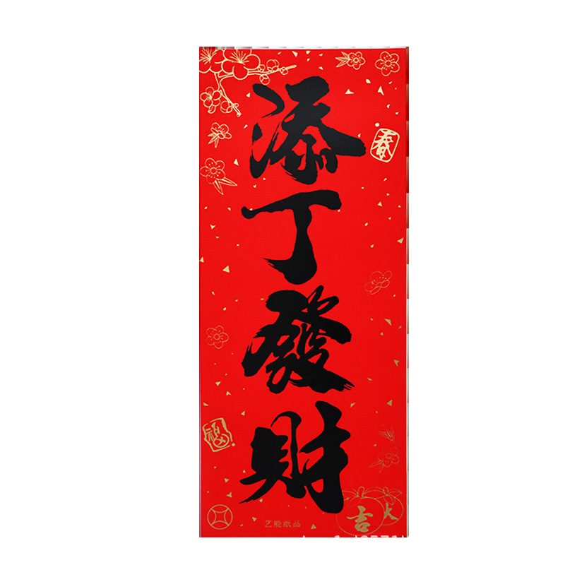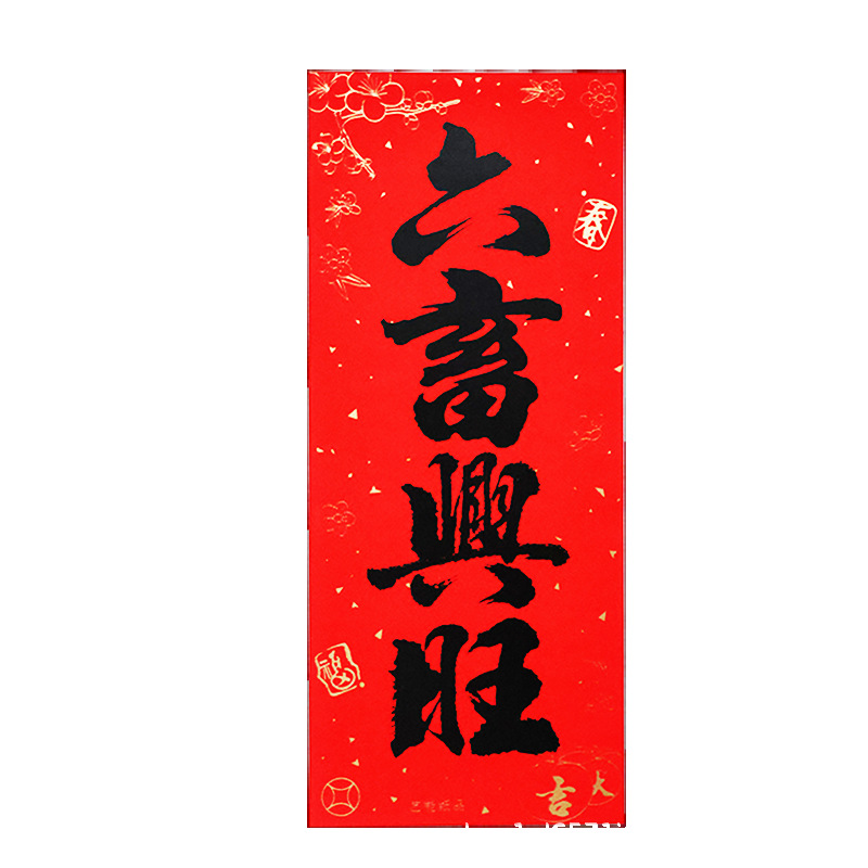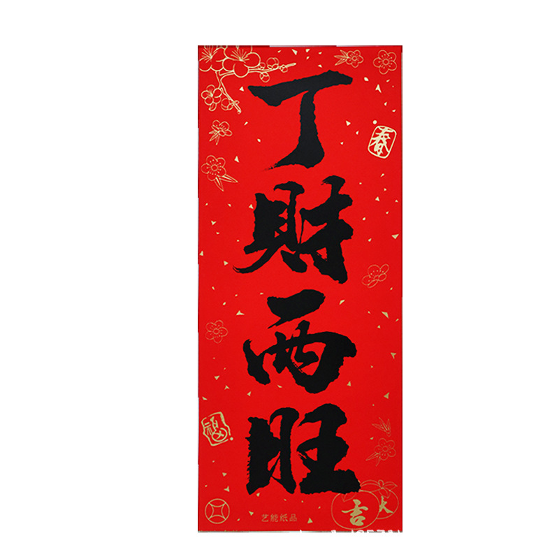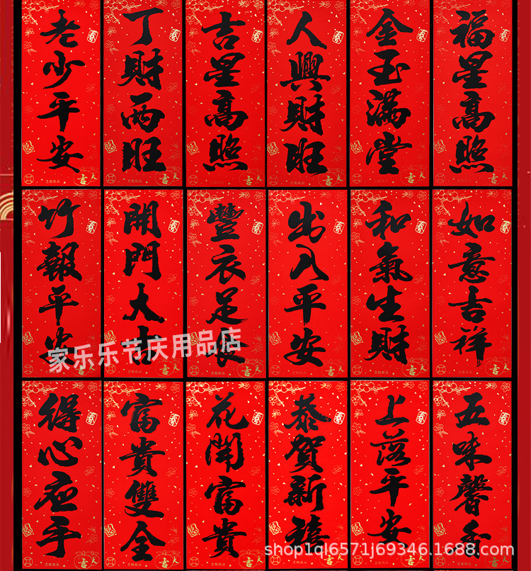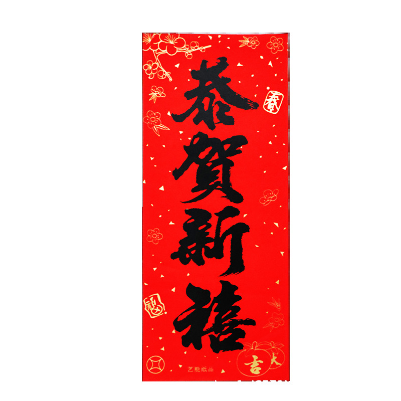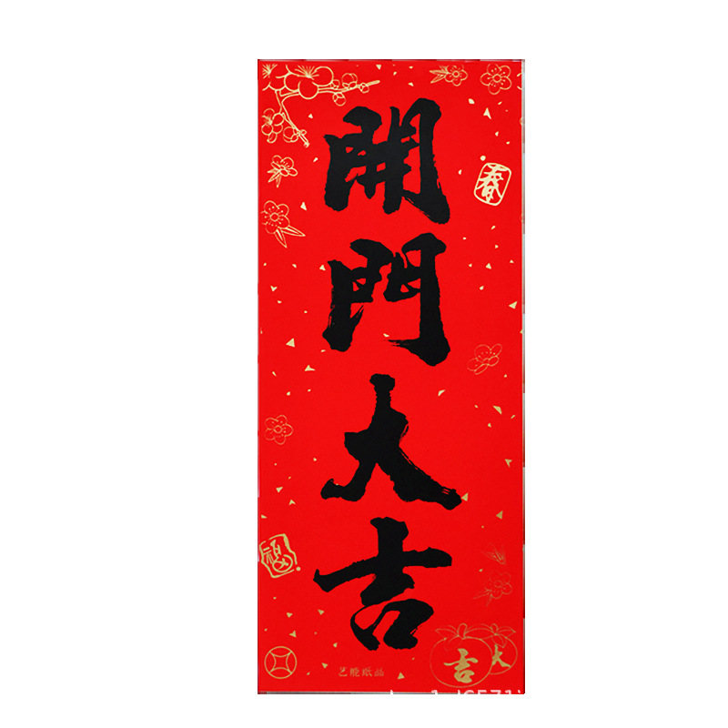 新年新款铜纸珲春门贴黑字书法四字对联短联竖联春节年货挥春批发