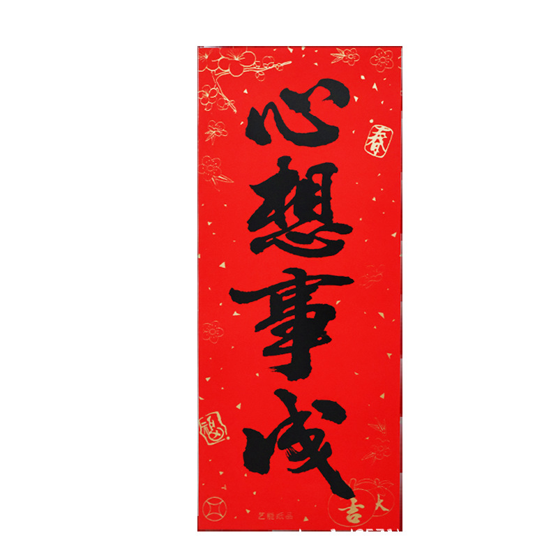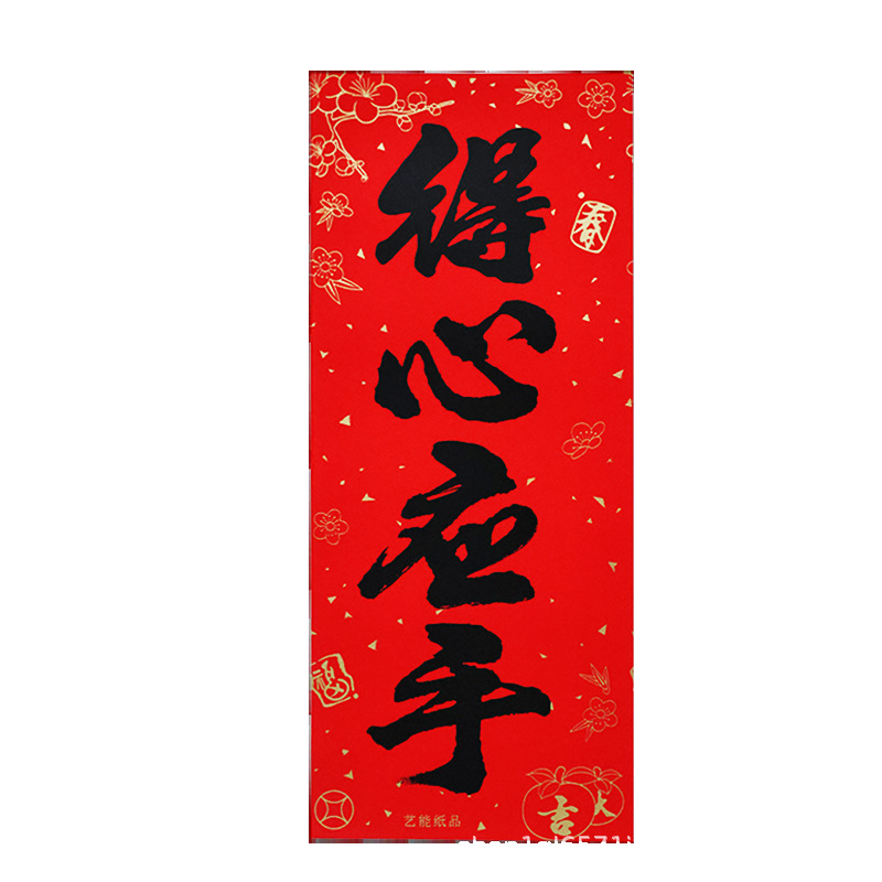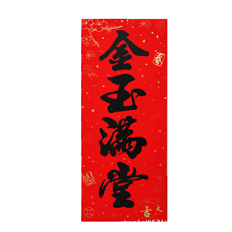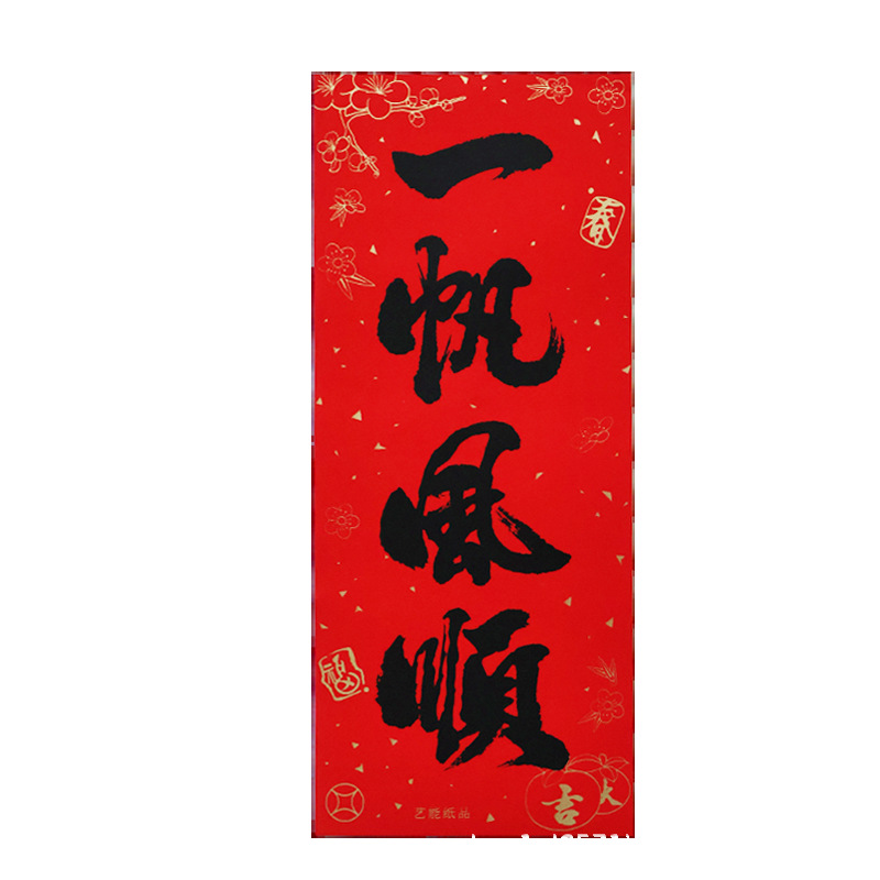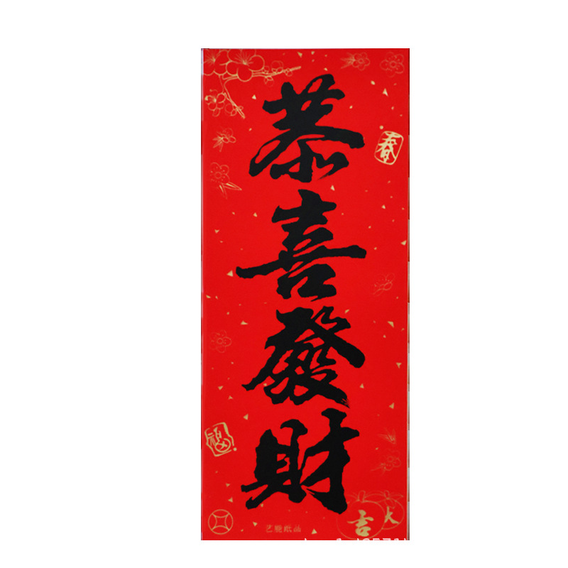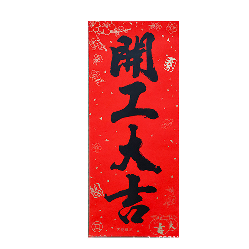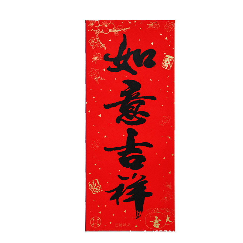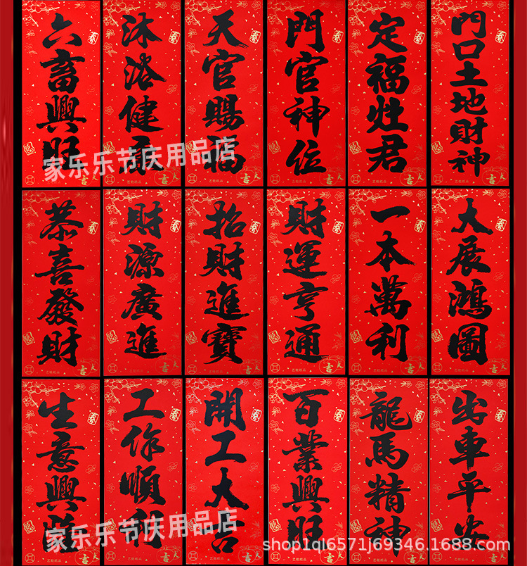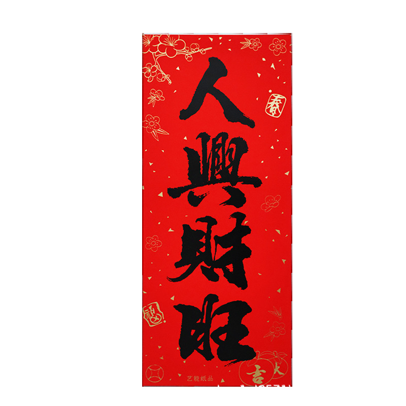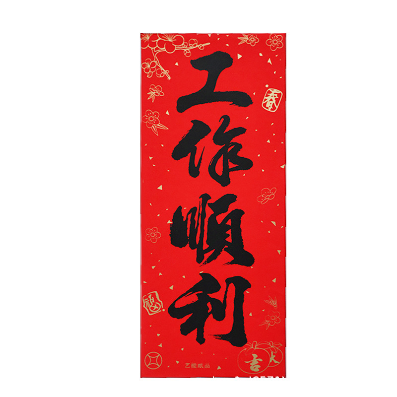 新年新款铜纸珲春门贴黑字书法四字对联短联竖联春节年货挥春批发
