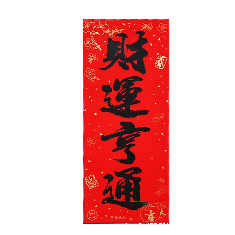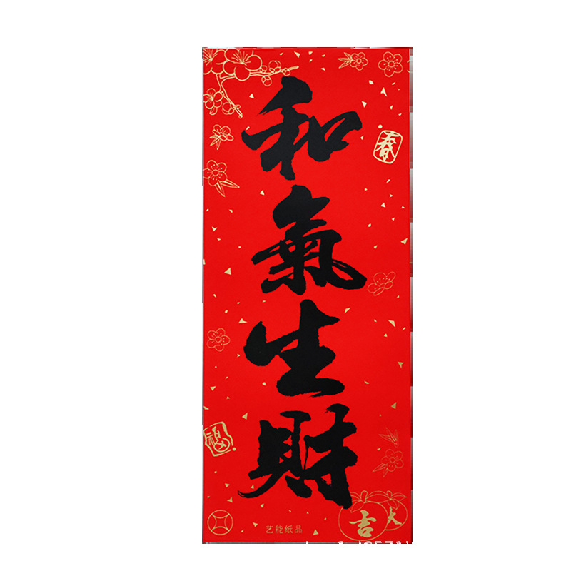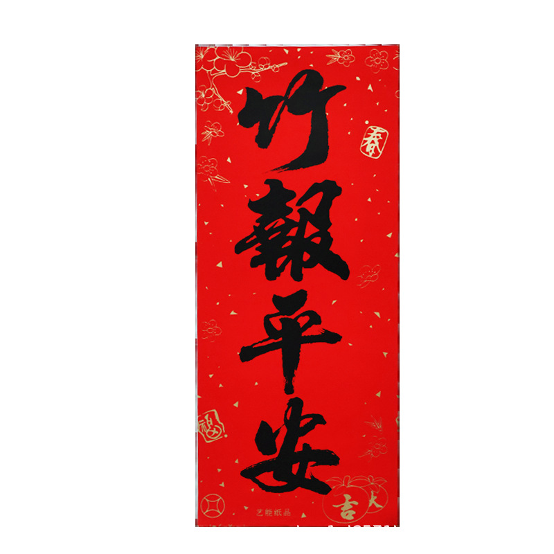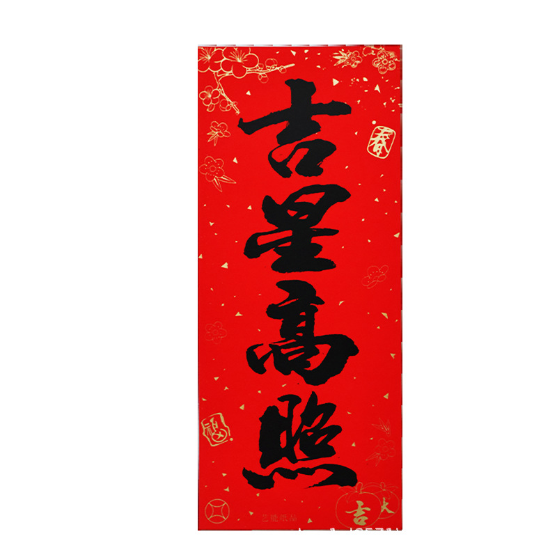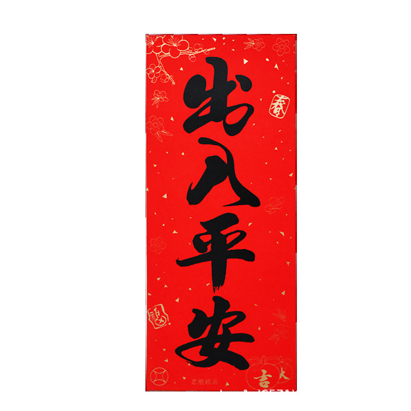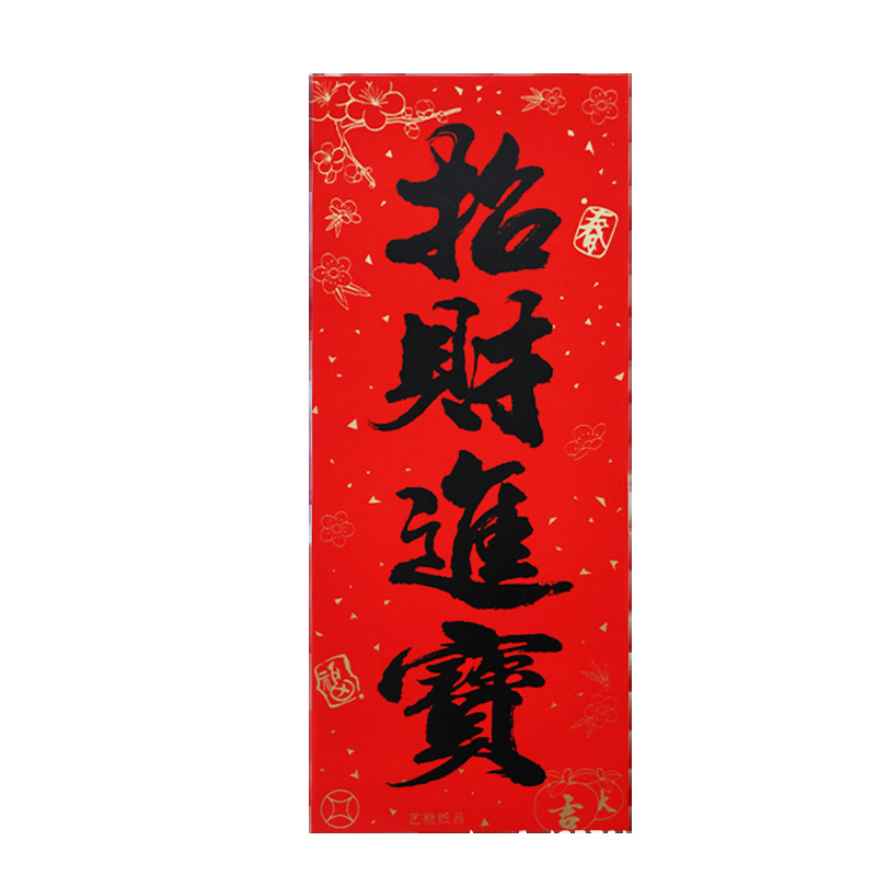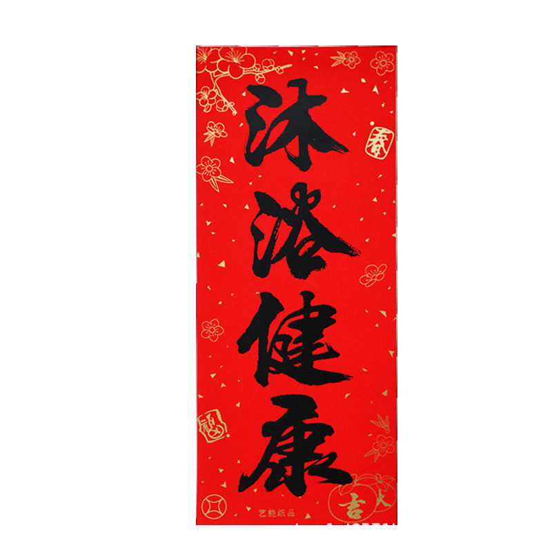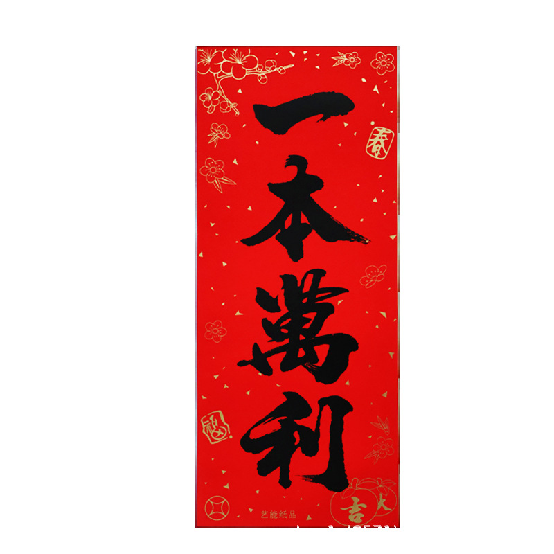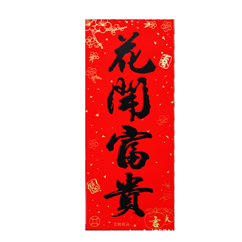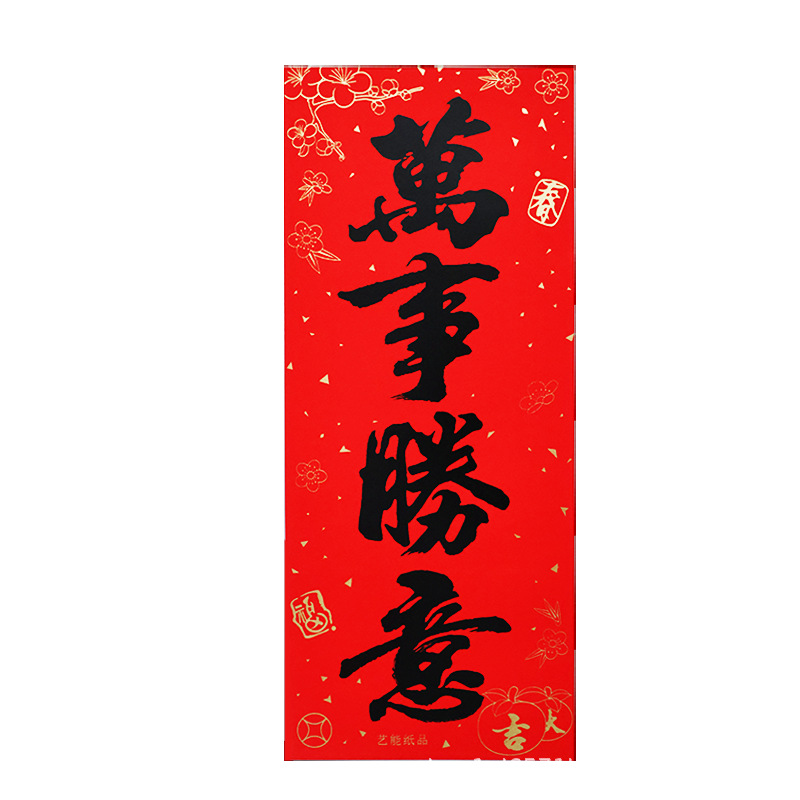 新年新款铜纸珲春门贴黑字书法四字对联短联竖联春节年货挥春批发
