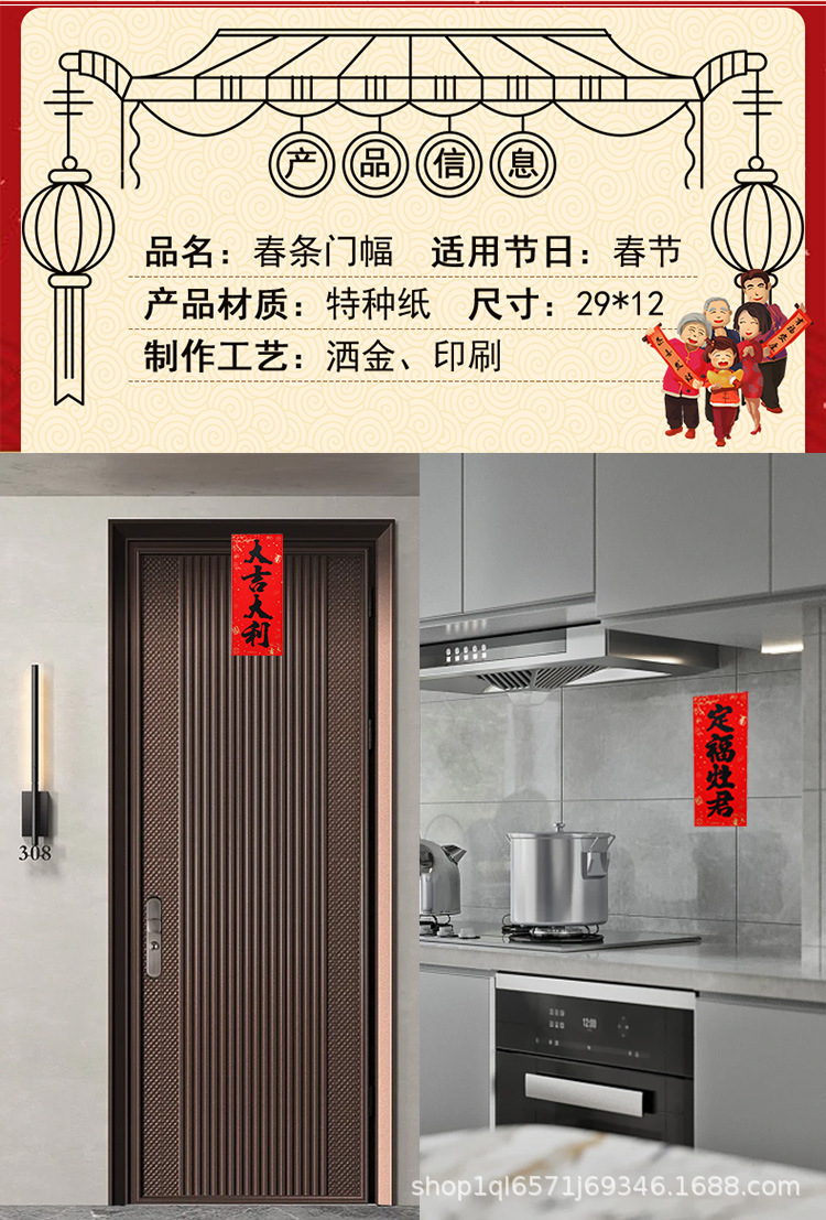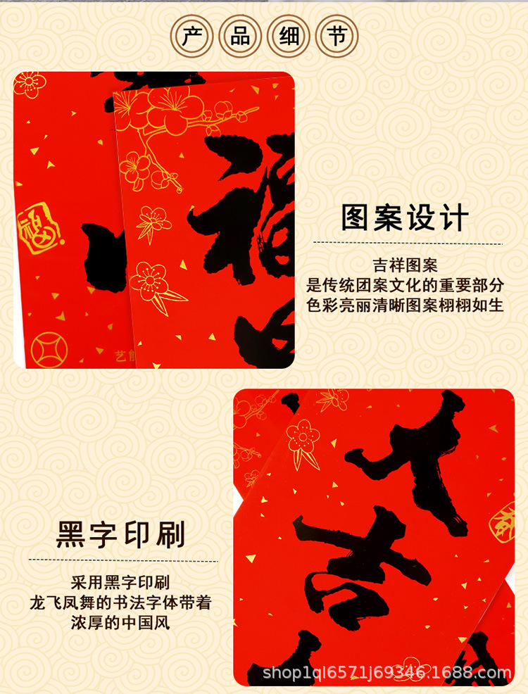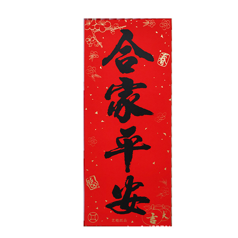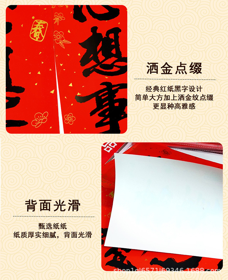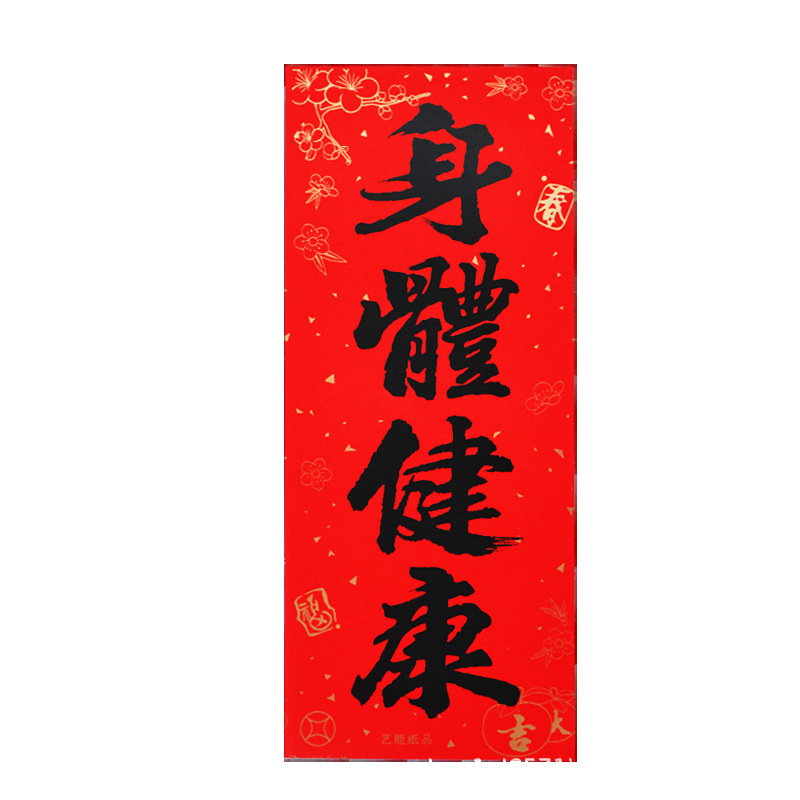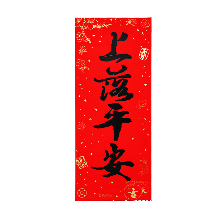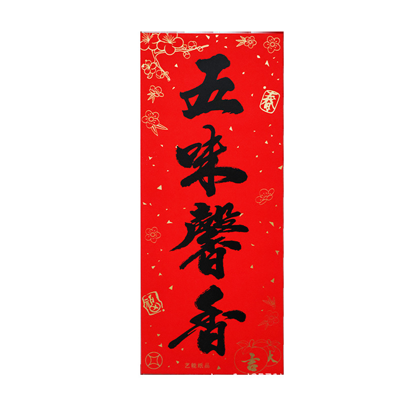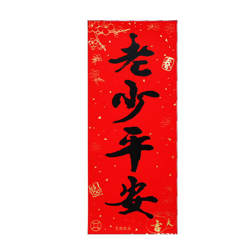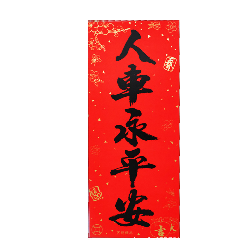 新年新款铜纸珲春门贴黑字书法四字对联短联竖联春节年货挥春批发