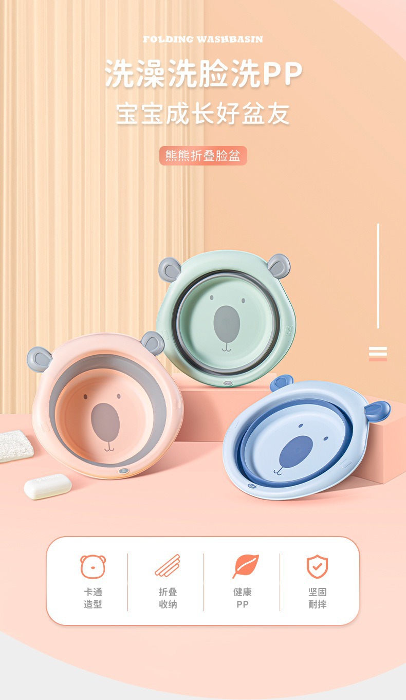 婴儿折叠脸盆初生儿小孩洗脚洗脸洗屁屁家用便携脸盆宝宝可爱脸盆