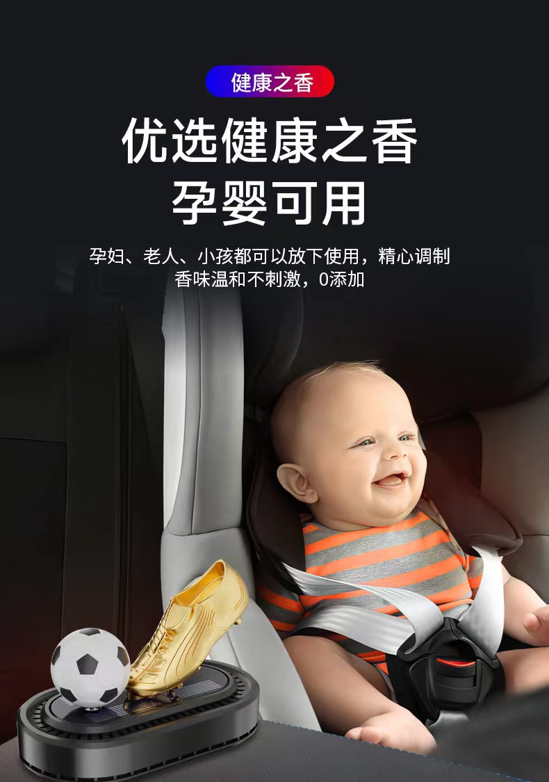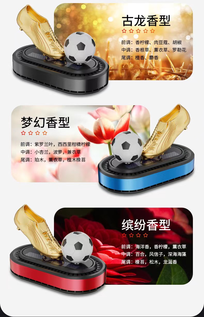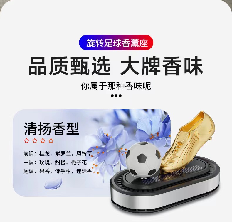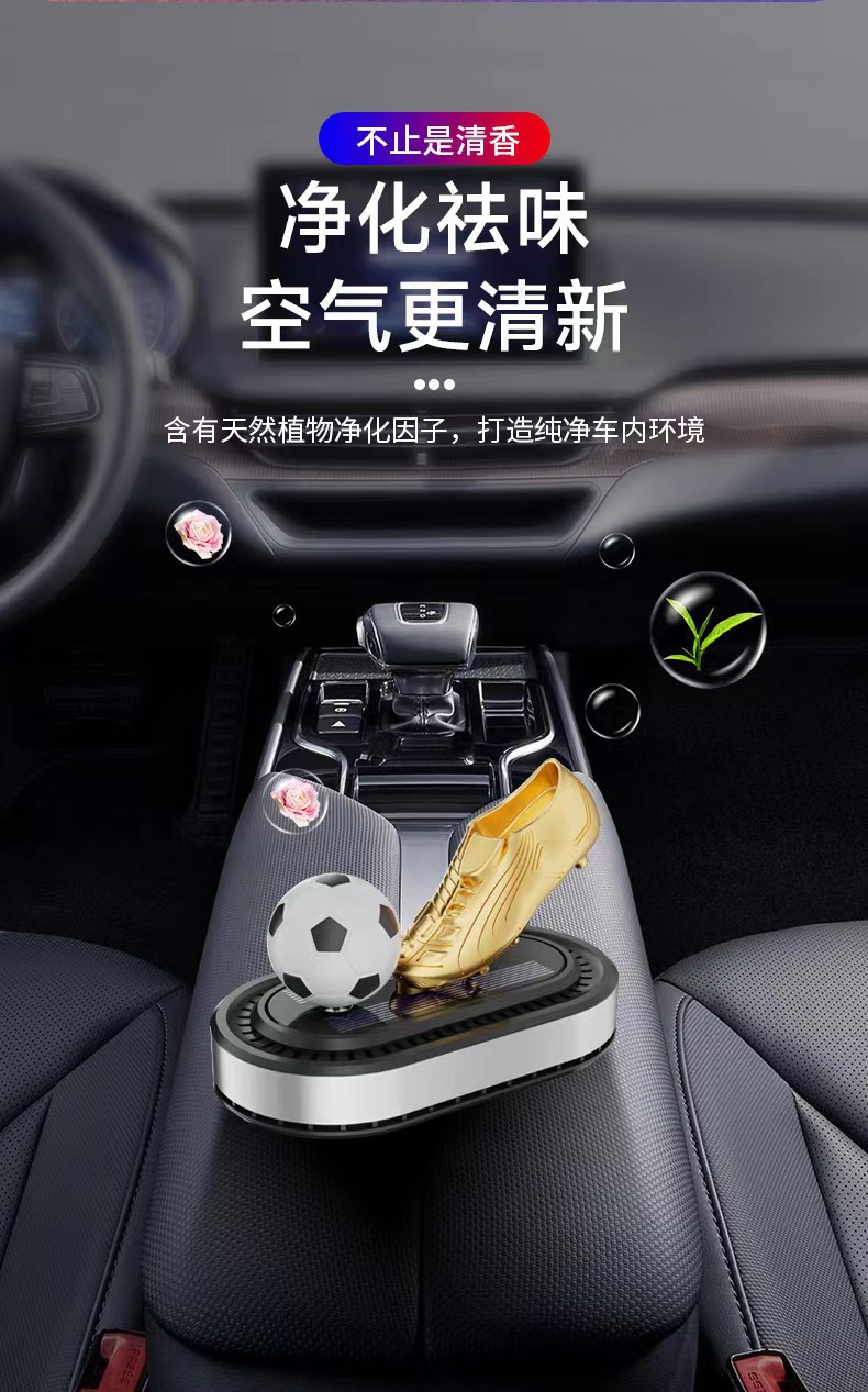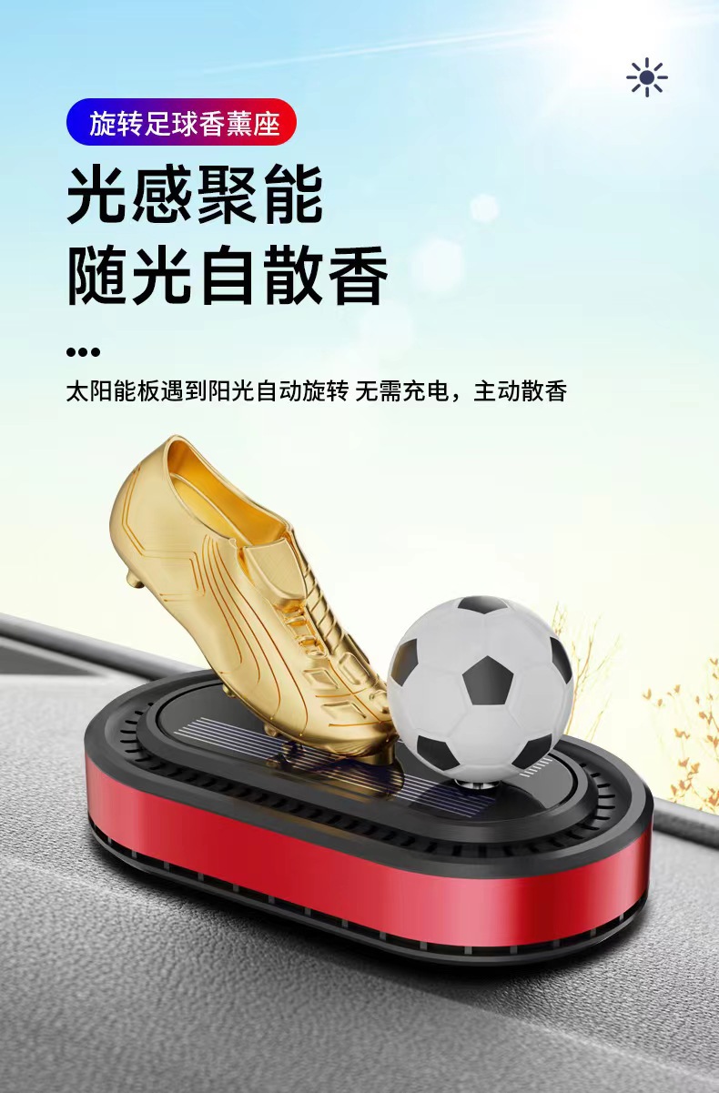 太阳能旋转足球金靴饰品摆件跨境汽车香水座新款车载香薰持久淡香