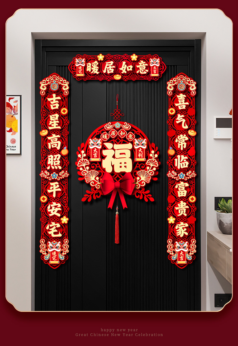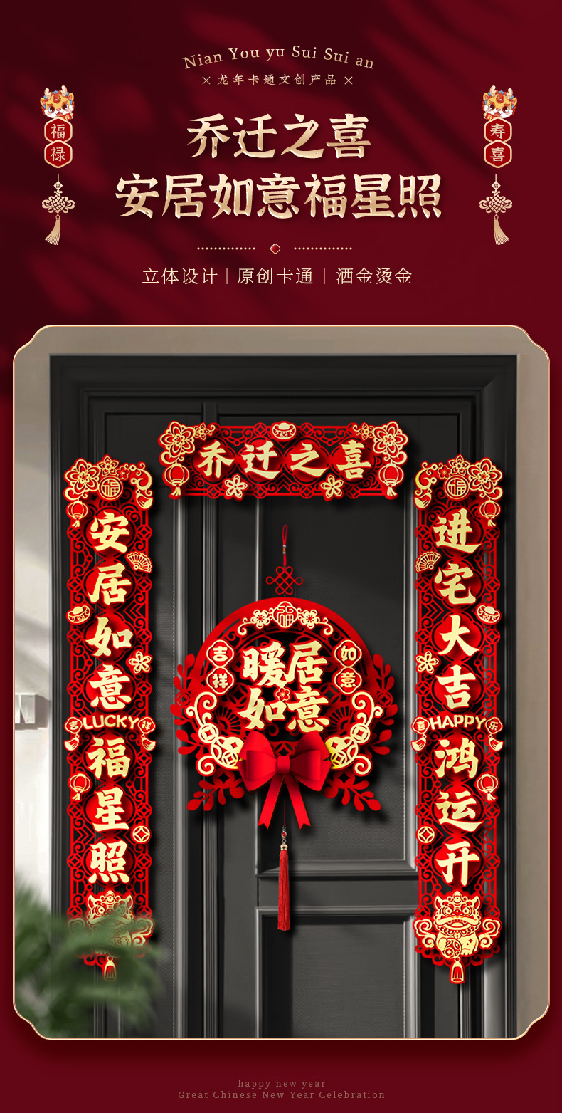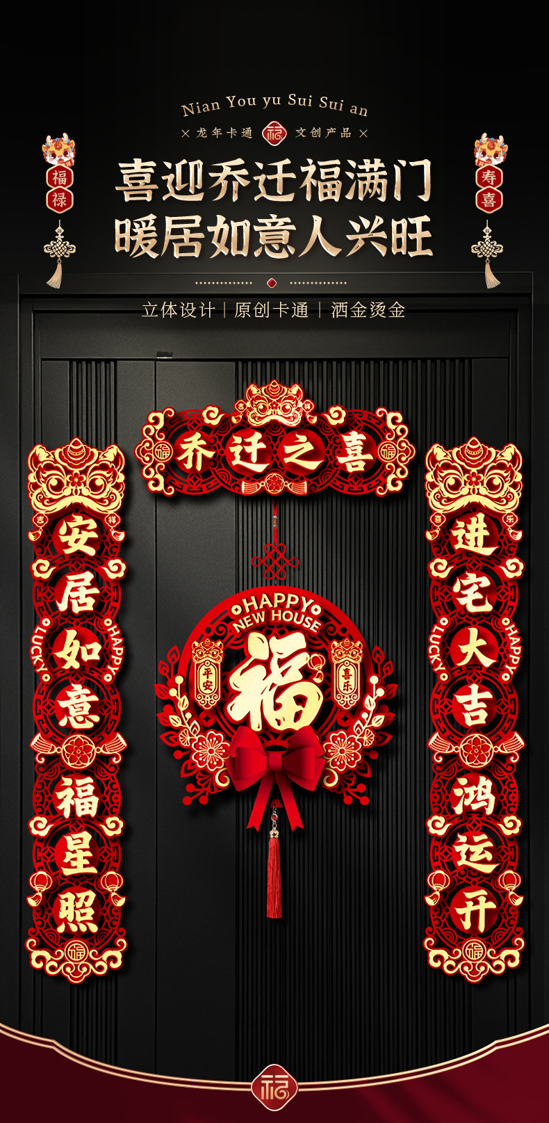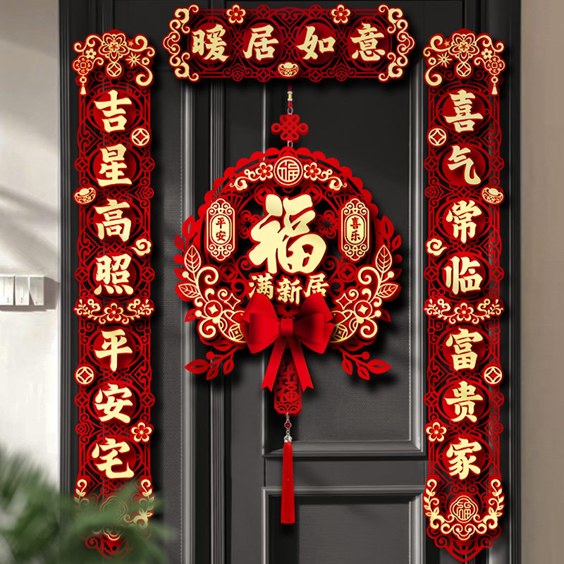 乔迁对联2024新款过年春节绒布春联新年装饰福字入户门贴过年布置