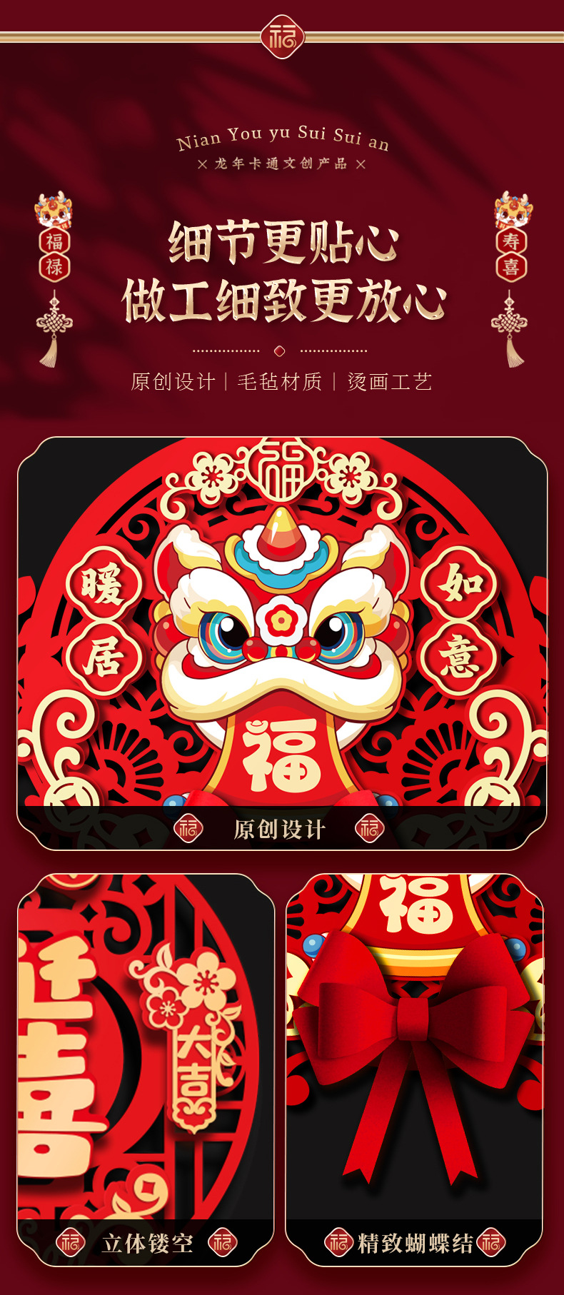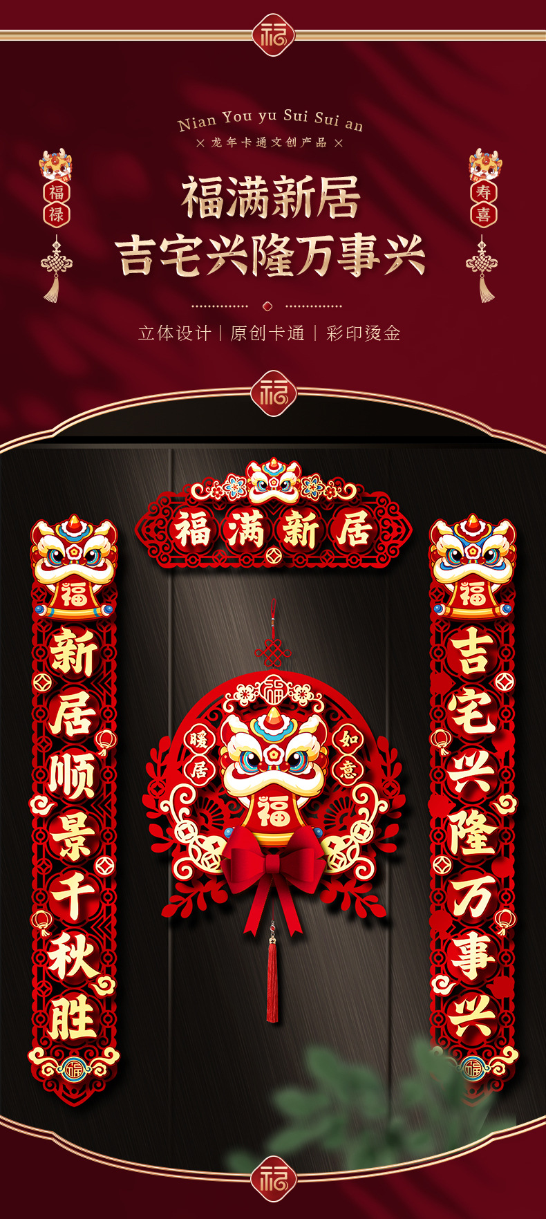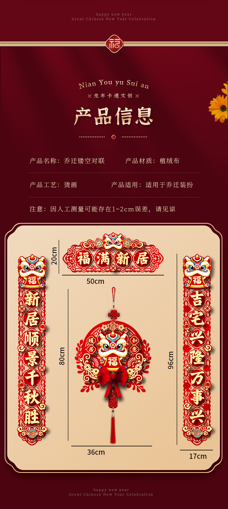 乔迁对联2024新款过年春节绒布春联新年装饰福字入户门贴过年布置