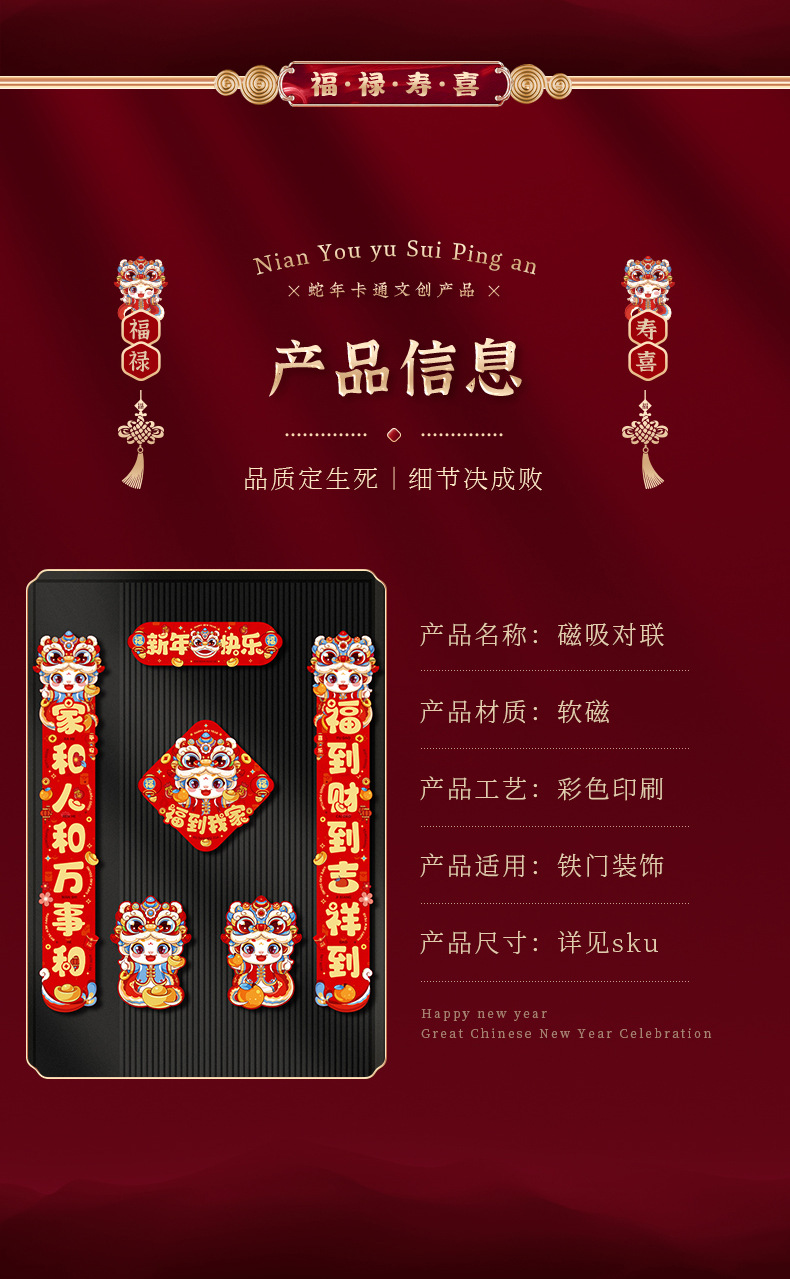 蛇年新款新春磁吸对联春联春节福字过年氛围布置新年门贴装饰年货