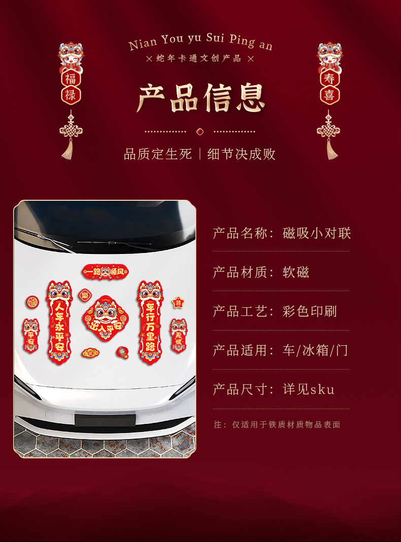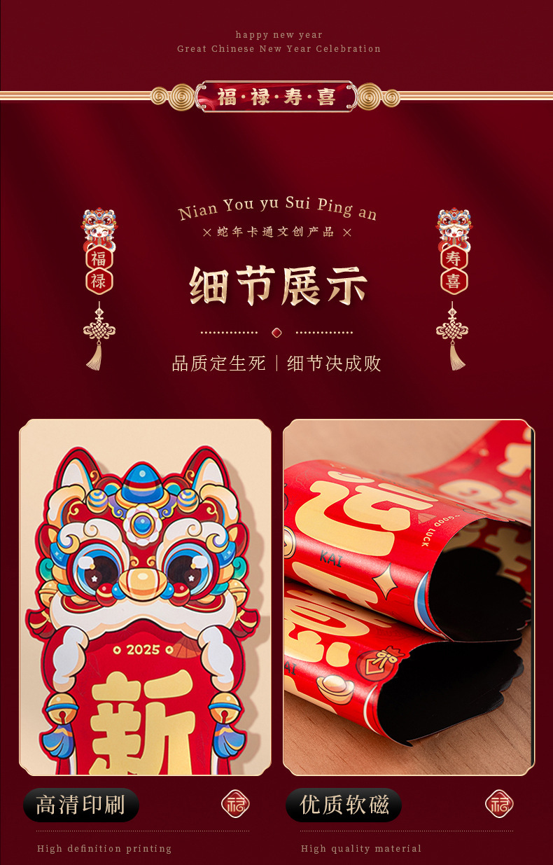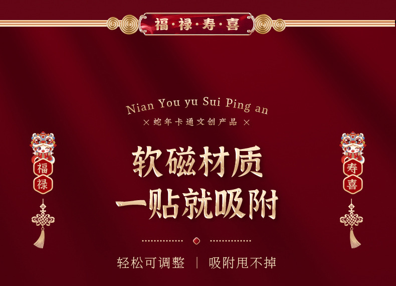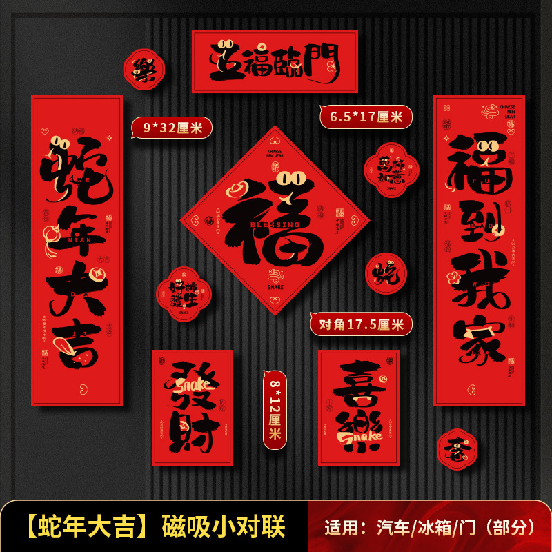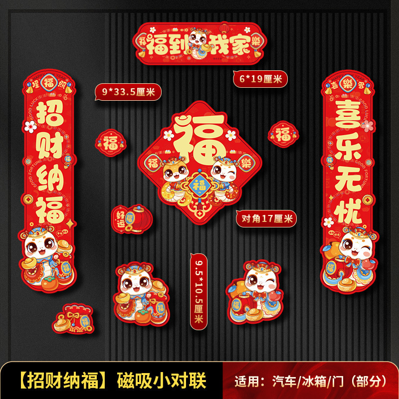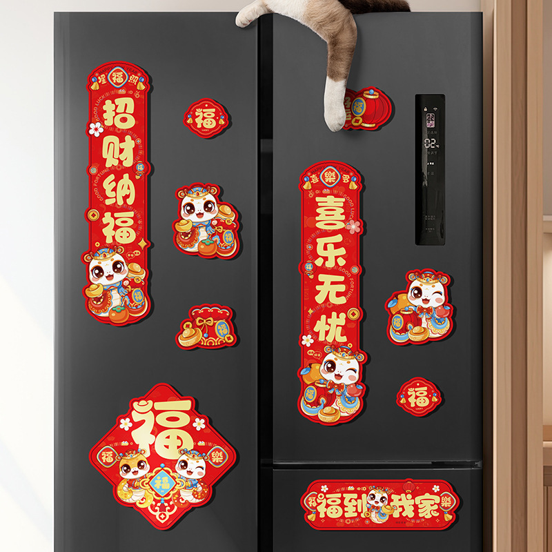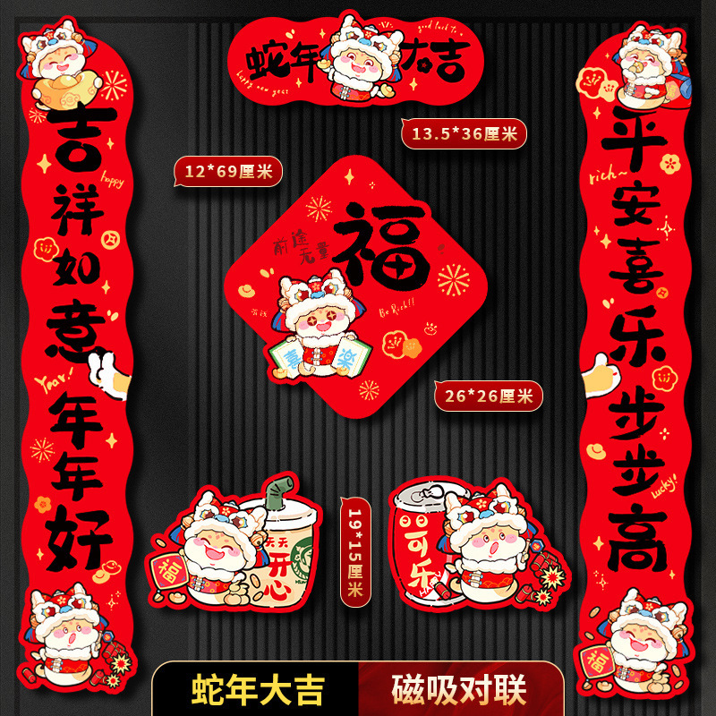 2025年新款春节蛇年对联卡通立体磁吸冰箱贴对联防盗门汽车小对联