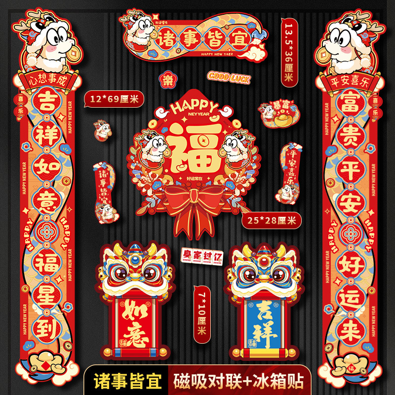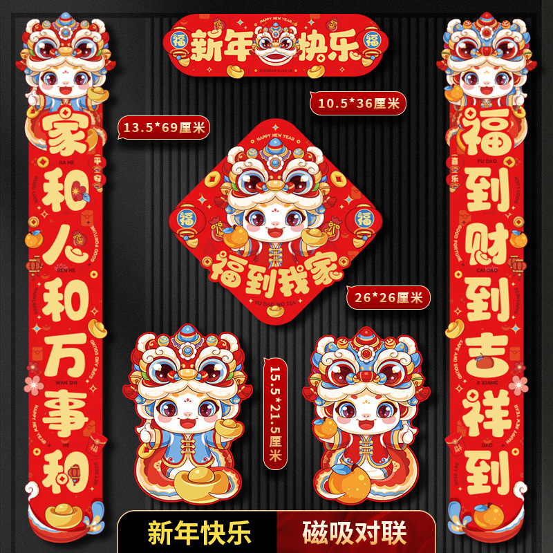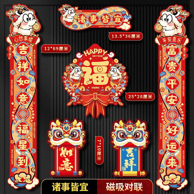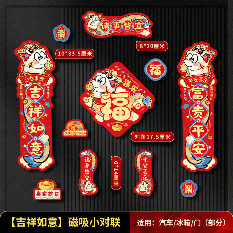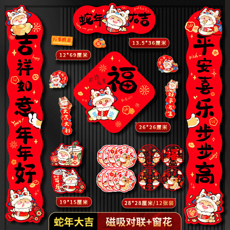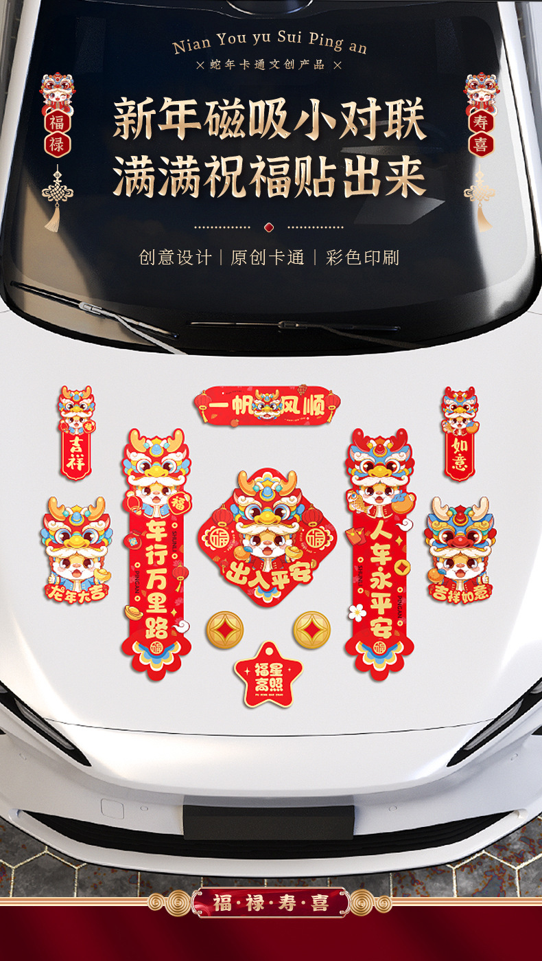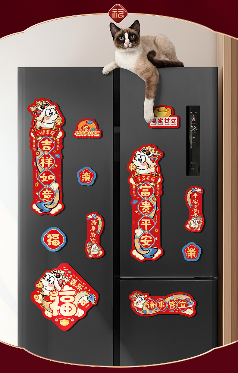 2025年新款春节蛇年对联卡通立体磁吸冰箱贴对联防盗门汽车小对联