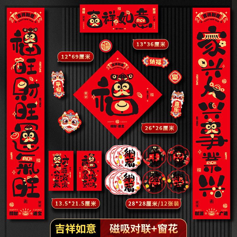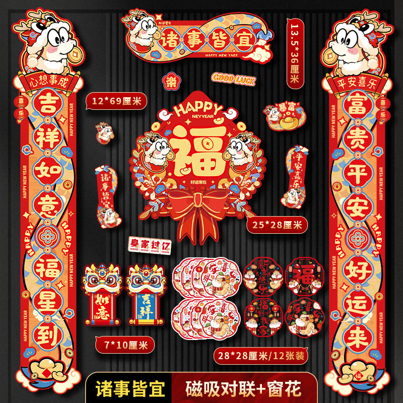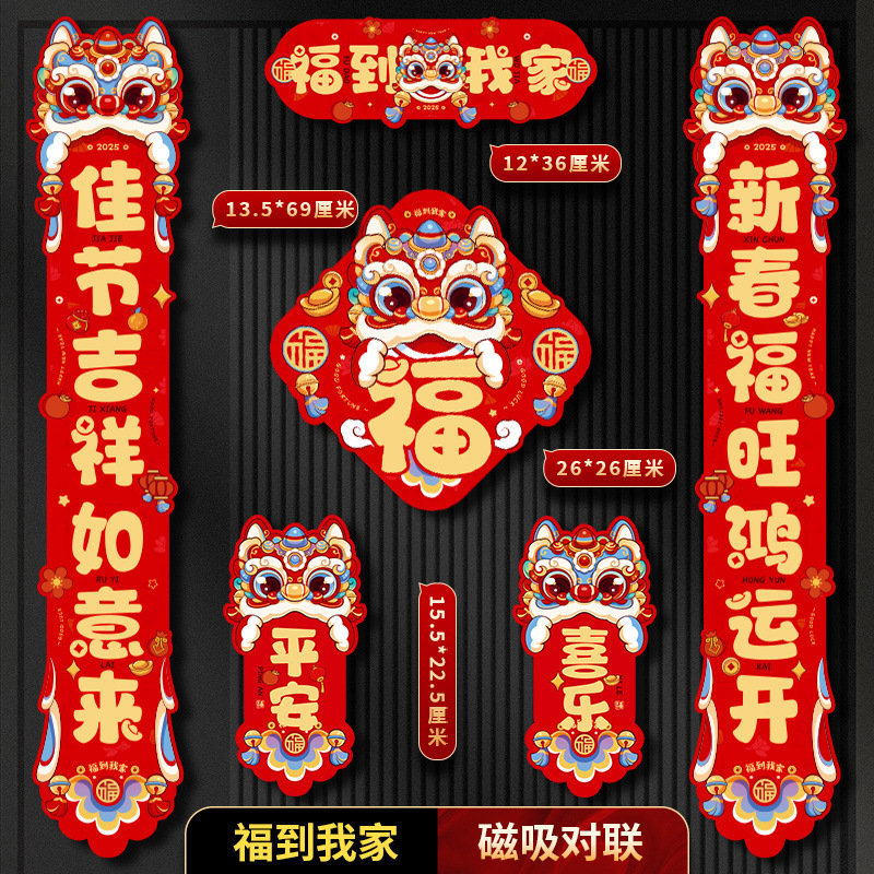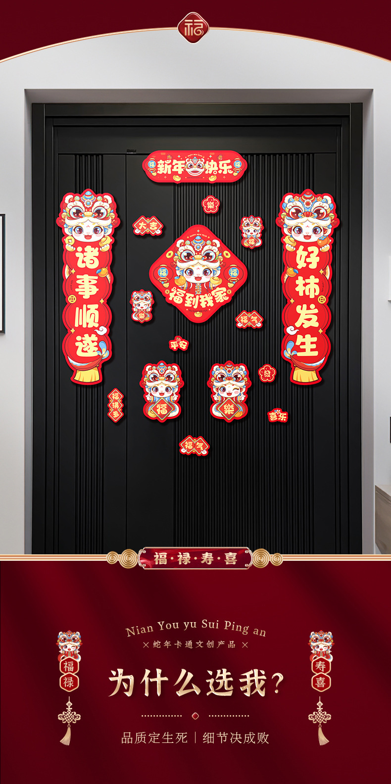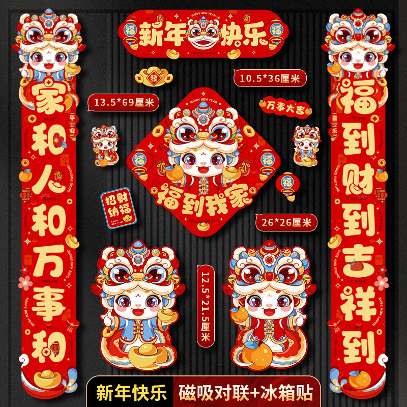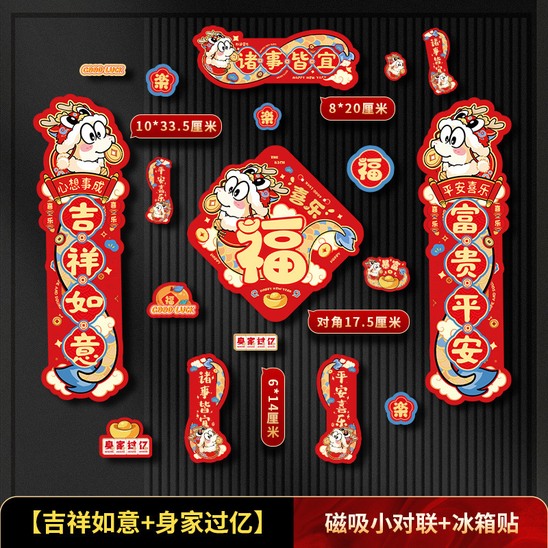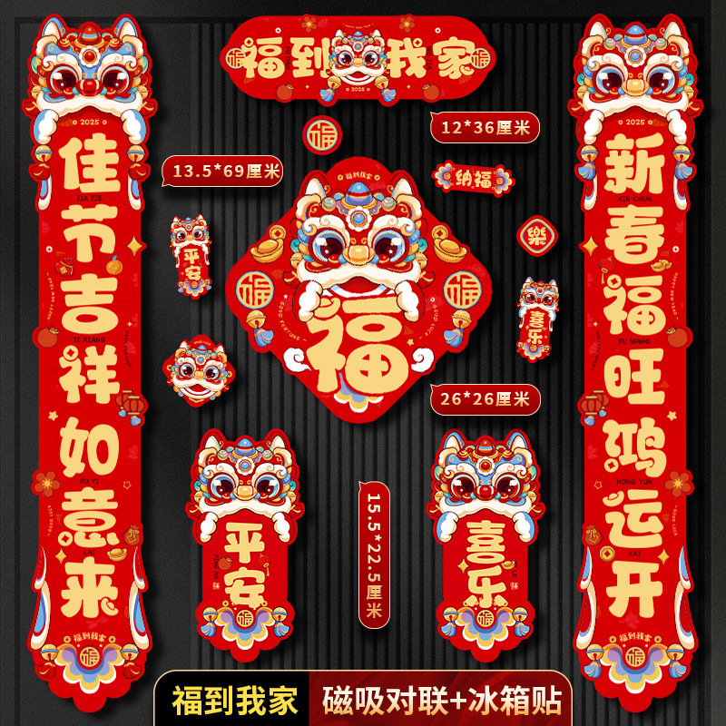 2025年新款春节蛇年对联卡通立体磁吸冰箱贴对联防盗门汽车小对联