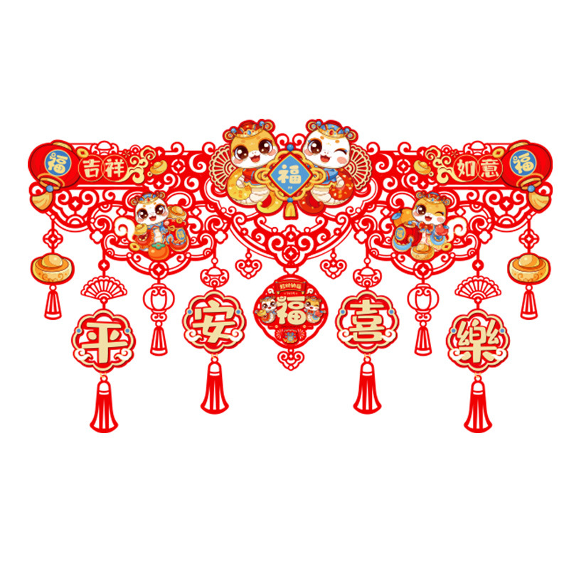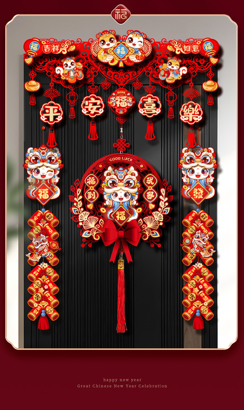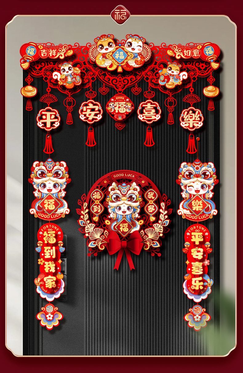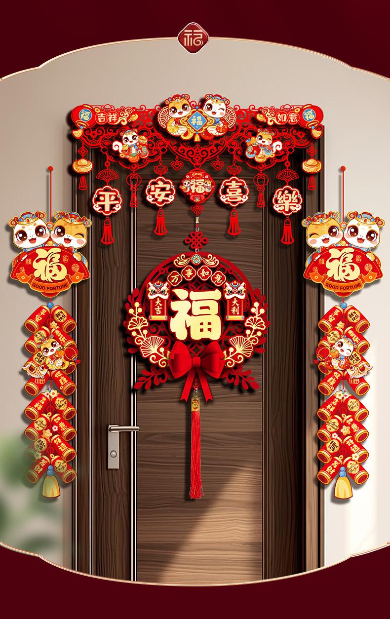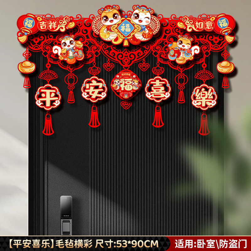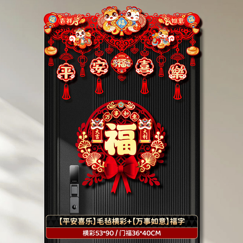 2025新款春节新年卡通毛毡布横彩福字挂饰客厅背景墙房门装饰布置