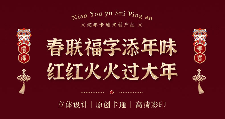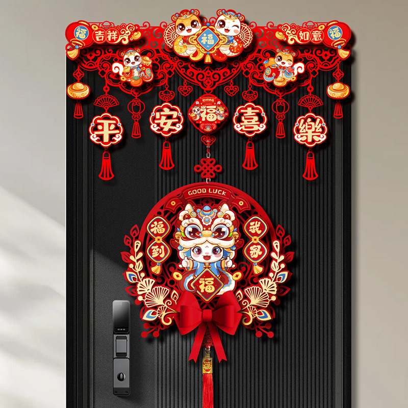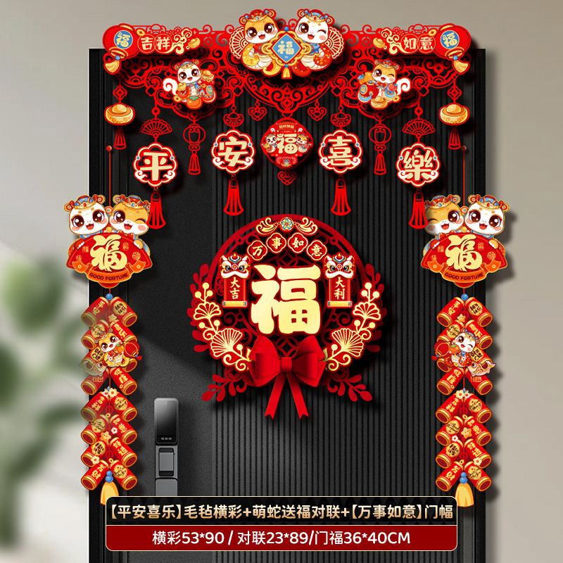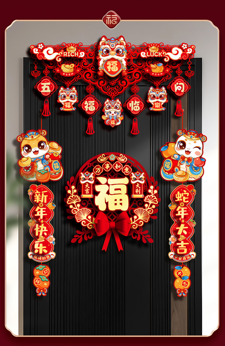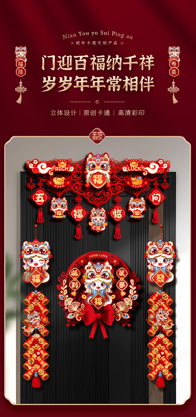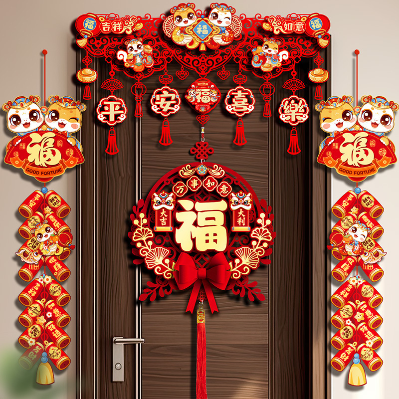2025新款春节新年卡通毛毡布横彩福字挂饰客厅背景墙房门装饰布置